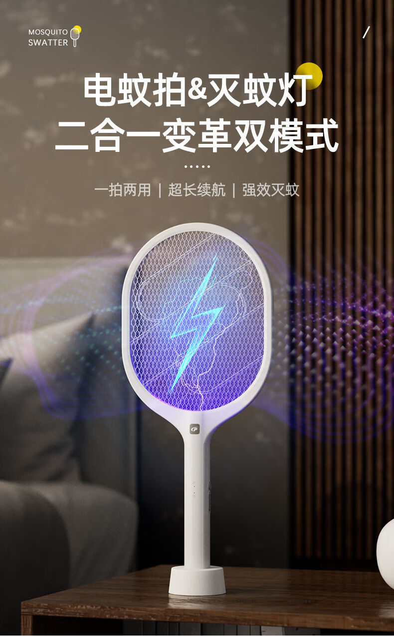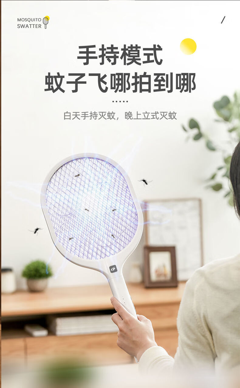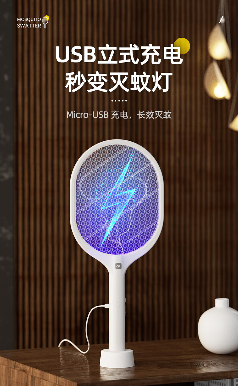 Joyoung Beauty Electric Mosquito Swatter Rechargeable Durable Mosquito Killing Lamp Magic Device Repellent Mosquito Lithium Battery Mosquito Fly Swatter Electric Mosquito Swatter Main Picture 8 Mosquito Lamps Storage Base+