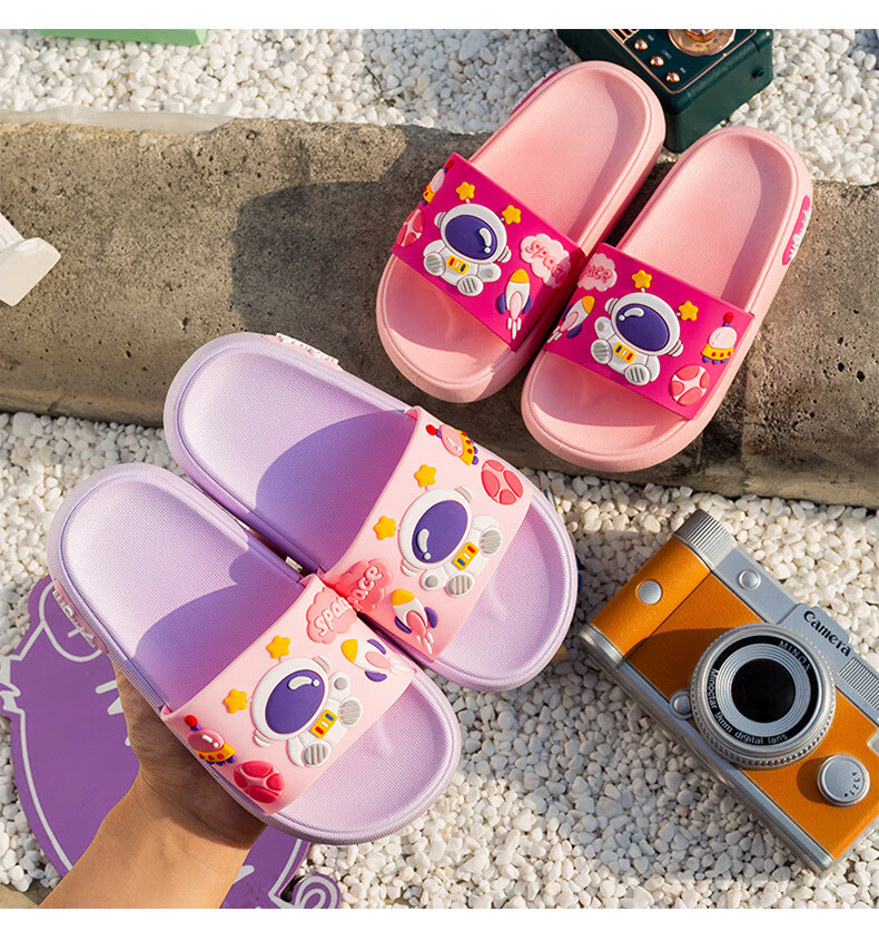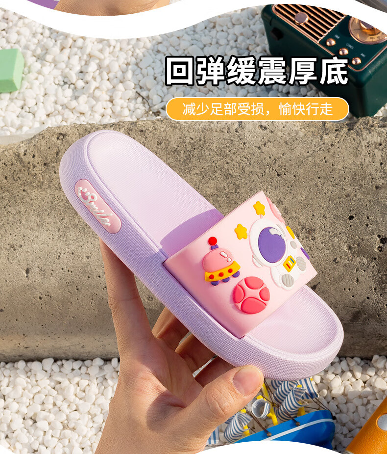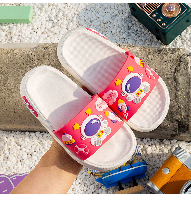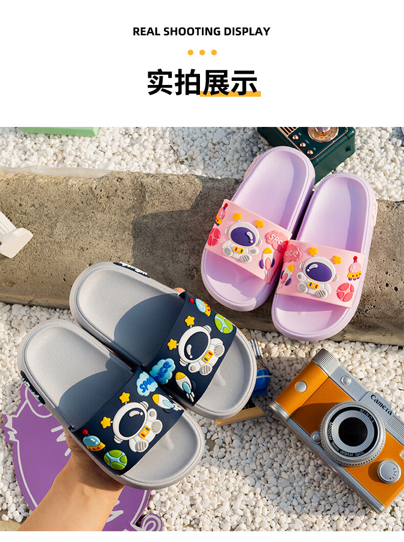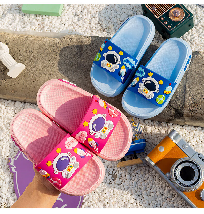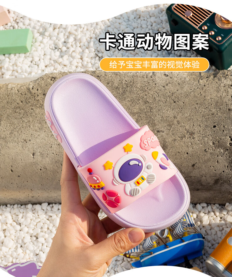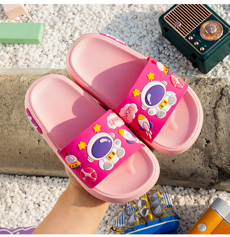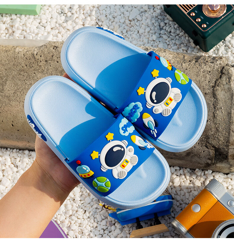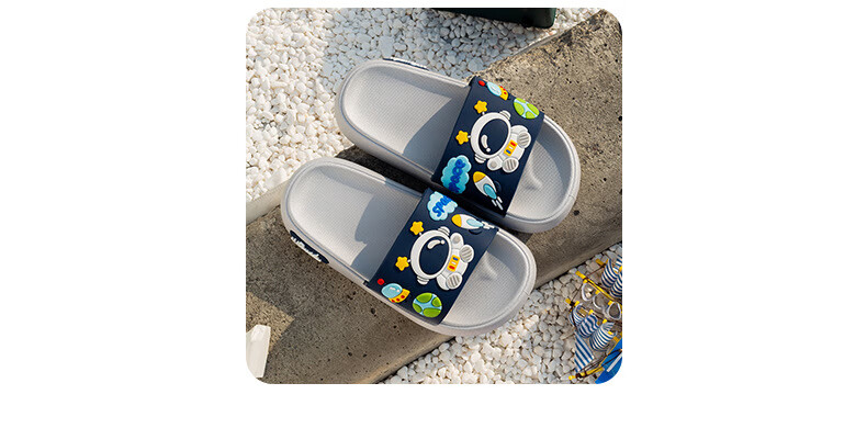 Summer new style cartoon astronaut children's slippers for boys and girls, home comfort slippers, cute slippers that can be worn outside, gray 34-35