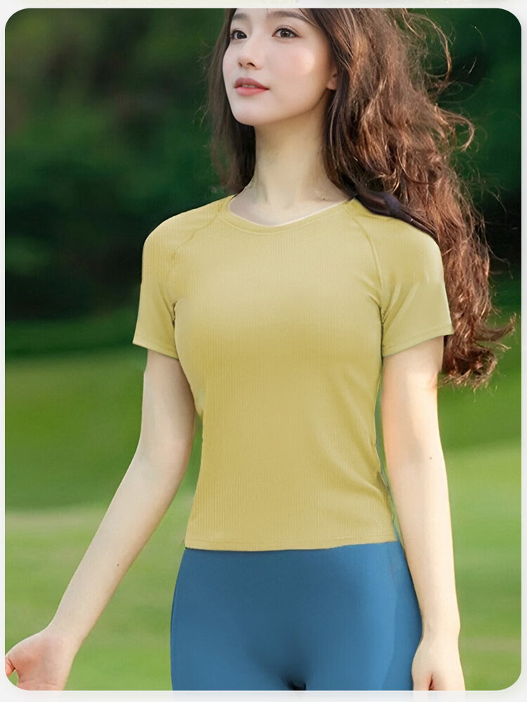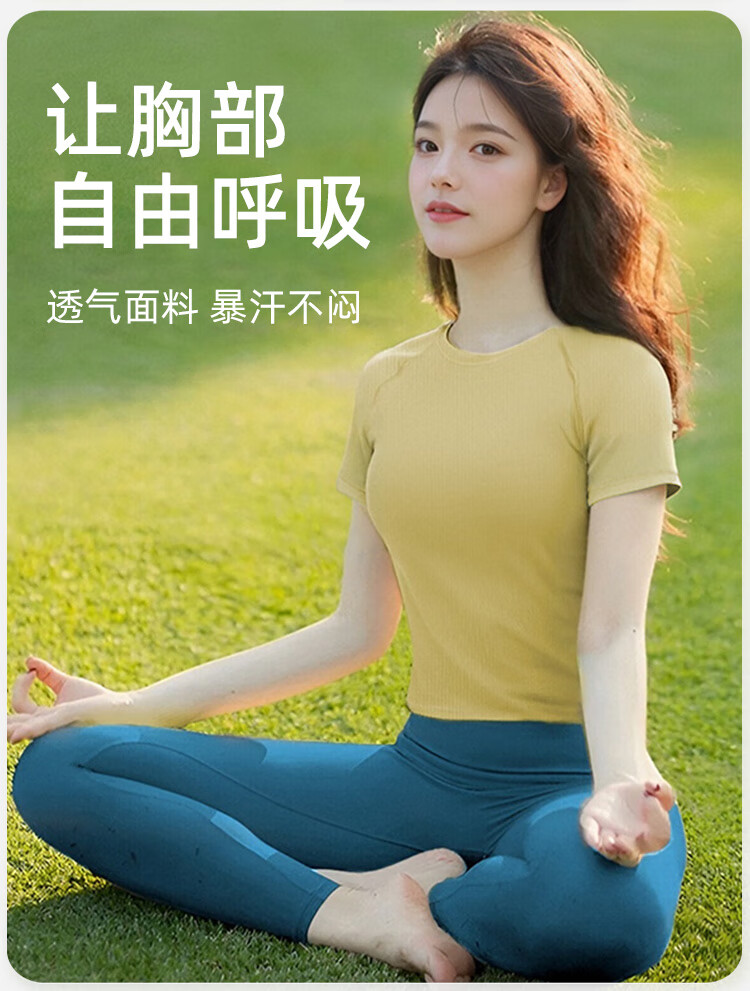 Shuangxiu high-looking yoga clothes for women 2025 new slimming and high-end sports short-sleeved fitness Pilates training clothes Ankora red short-sleeved + mocha pants L 110-120Jin Jin equals 0.5 kg