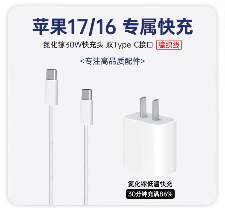 Solid quality product, direct sales genuine Apple 17/16/15 charger head 30W/40W genuine fast charging set iiPhone17/16/15proMax/pro power adapter cable original genuine 30W Apple fast charging head + 1 meter braided fast charging cable