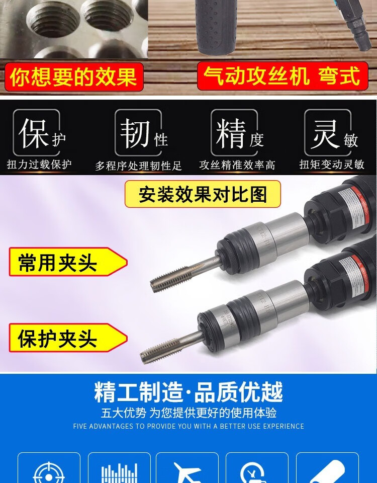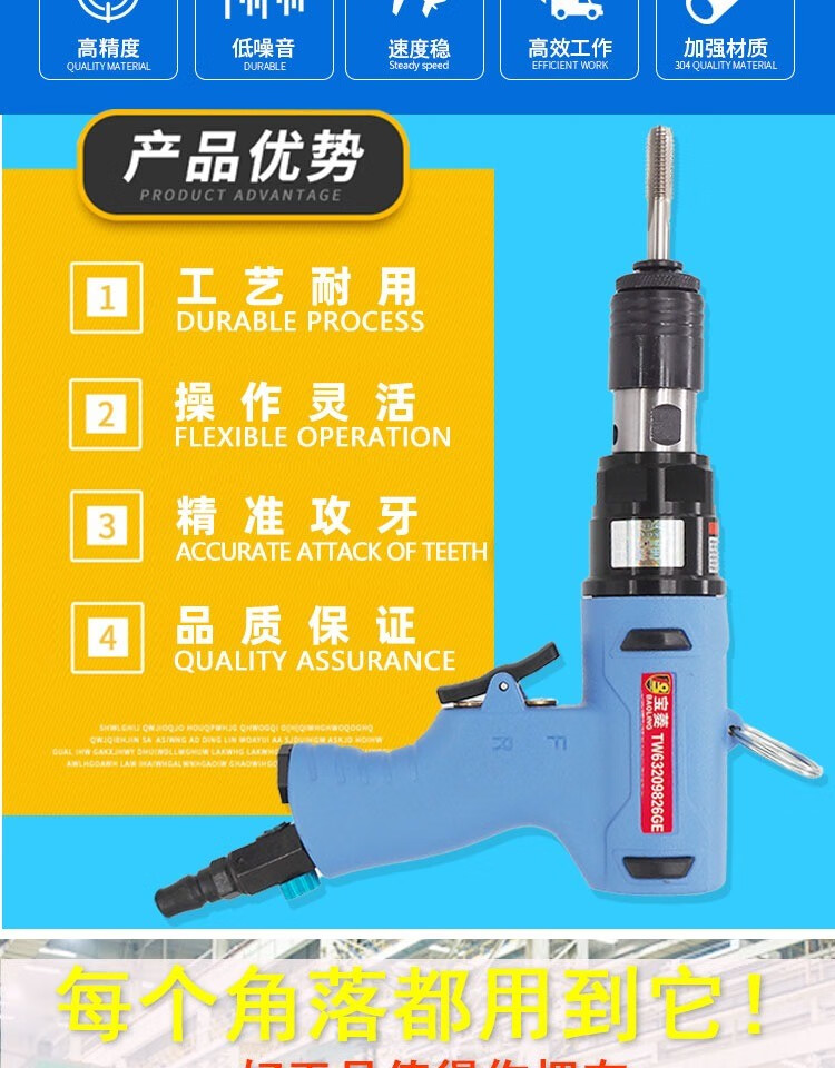 Huili's pneumatic tapping machine hand-held stainless steel iron plate tap drill thread pneumatic tapping machine M3M12 blue fourth generation tapping machine host + protective cover + (