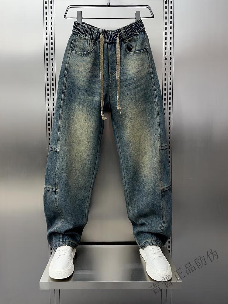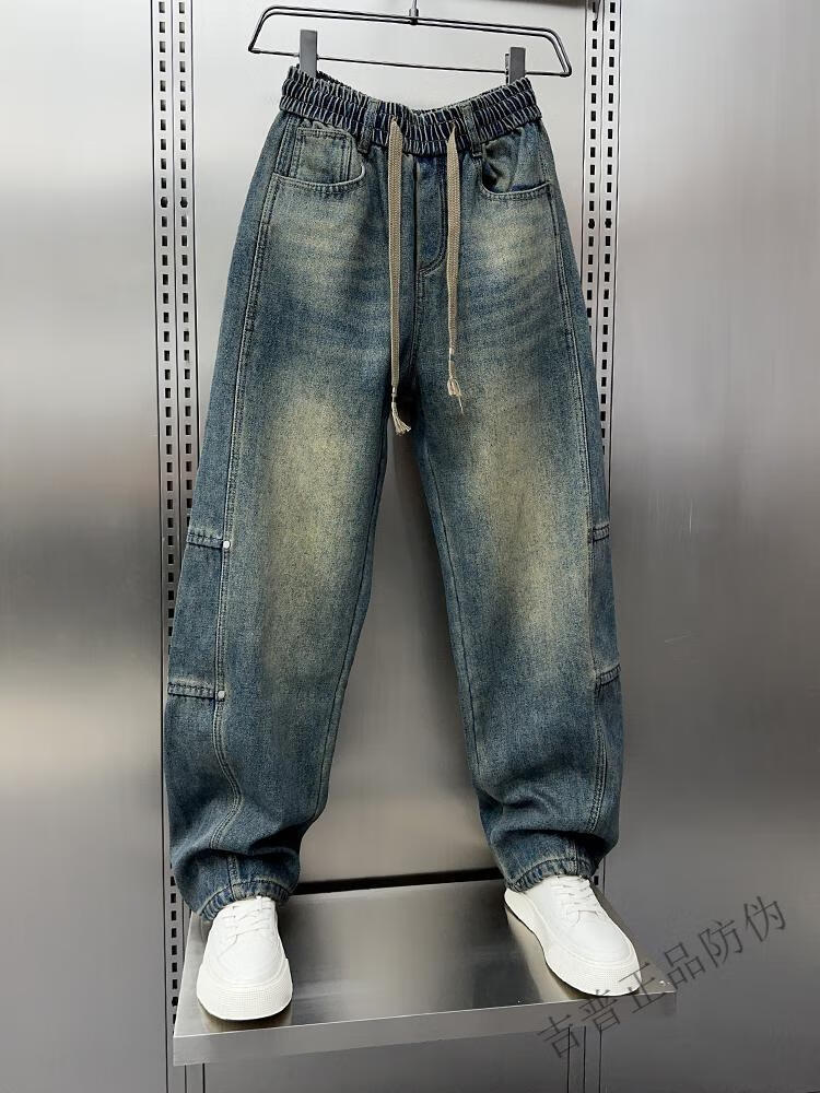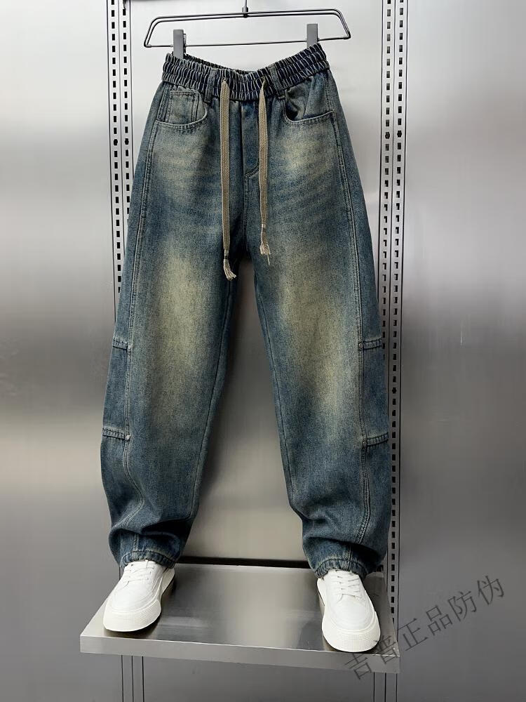 JEEP SPIRIT Nostalgic Blue Straight Jeans Men's 2025 Spring New Loose Leg Scimitar Pants Handsome Harem Pants Blue S