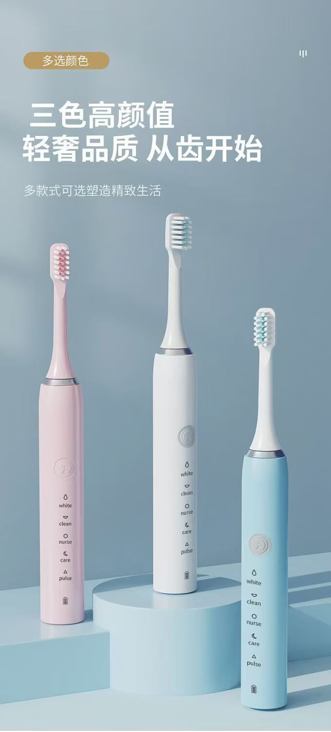 Electric toothbrush for adults, sonic charging, fully automatic soft-bristle waterproof, home whitening toothbrush for couples, male and female students, 2 packs of glacier pattern mouthwash cups, random colors