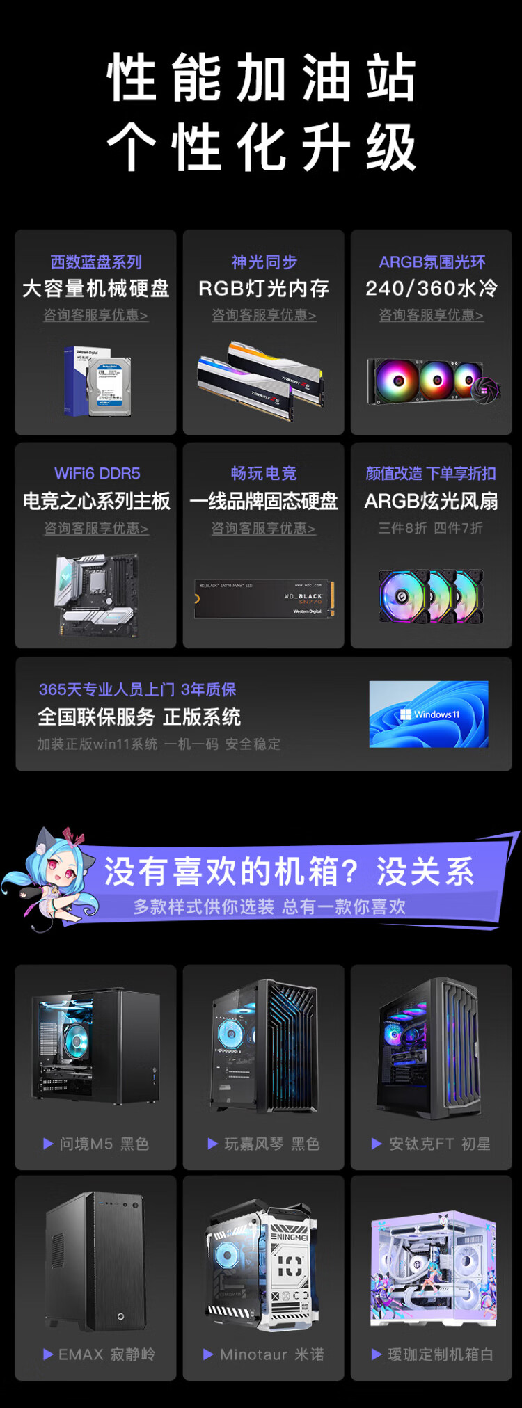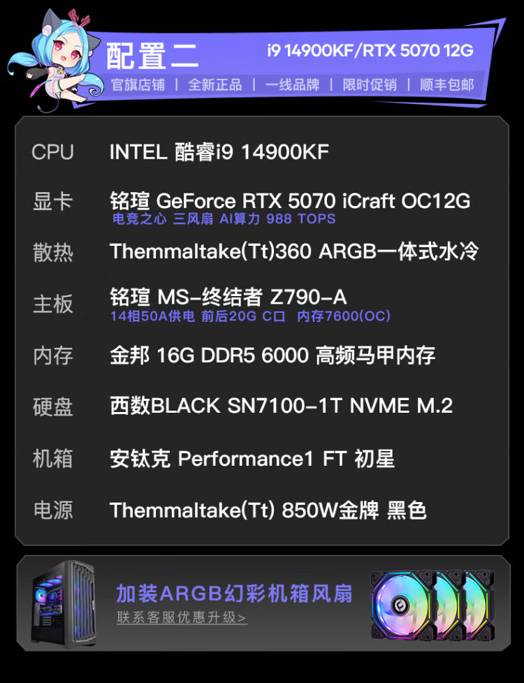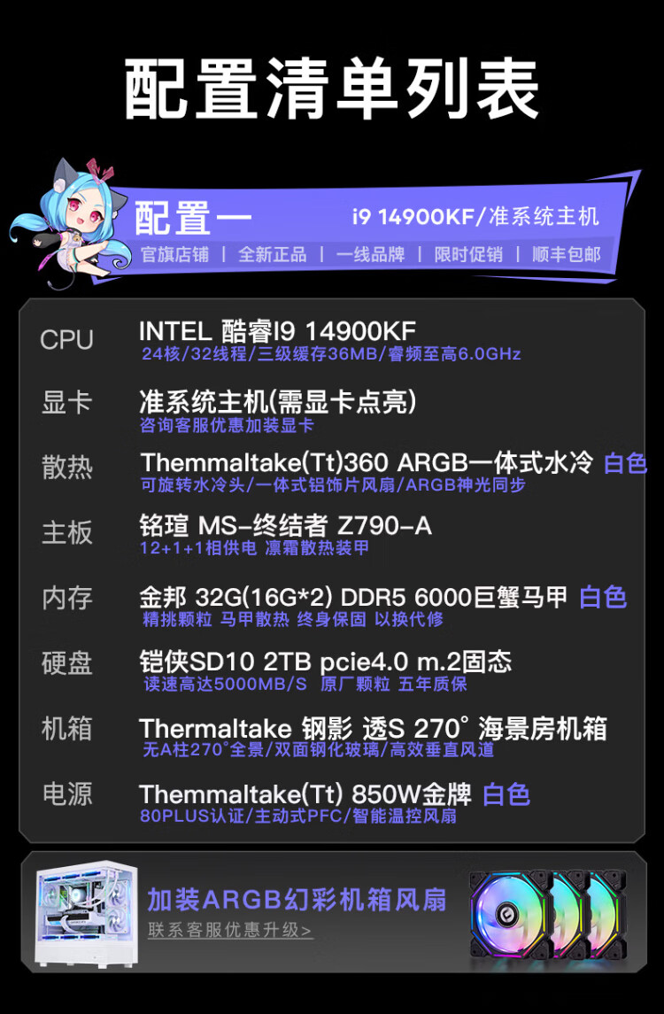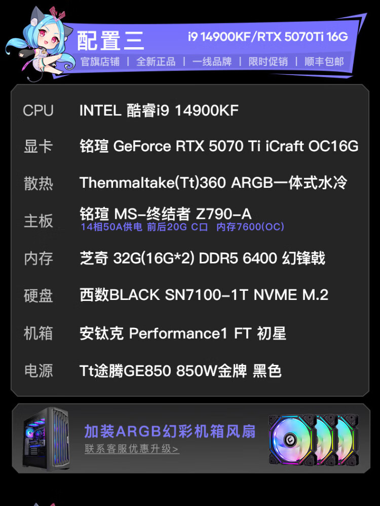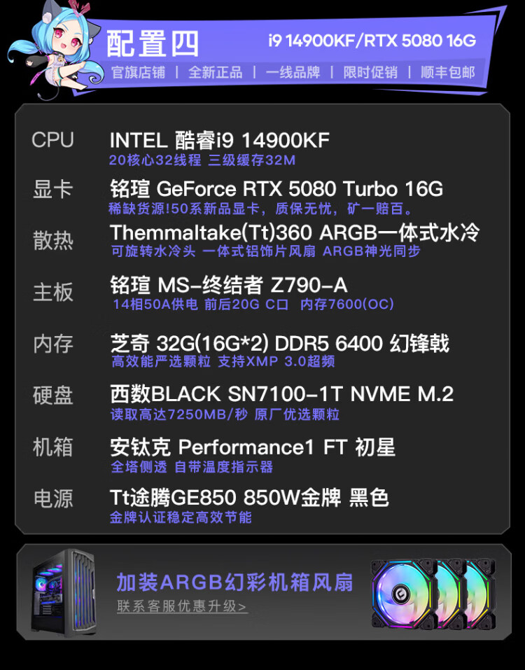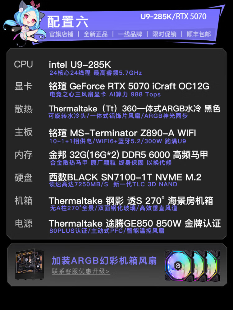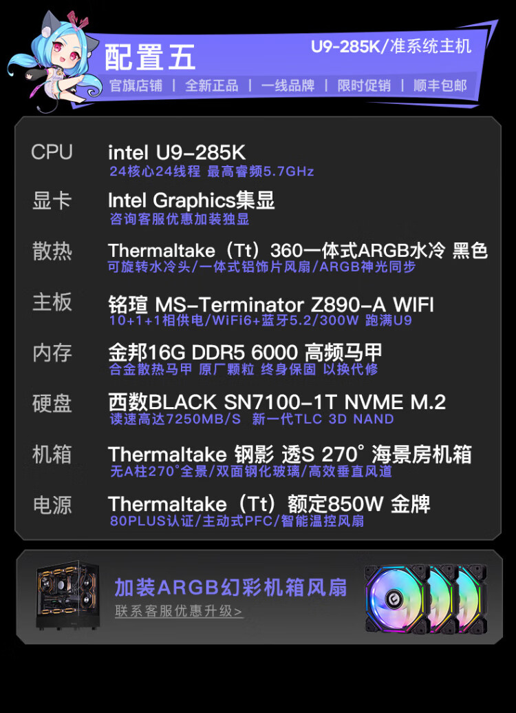 Maxxuan i9 14900KF/Ultra9 285K/5080/5070 graphics card assembly computer game water-cooled desktop host assembly machine diy desktop complete set design with five U9-285K/barebone system/16G/1T