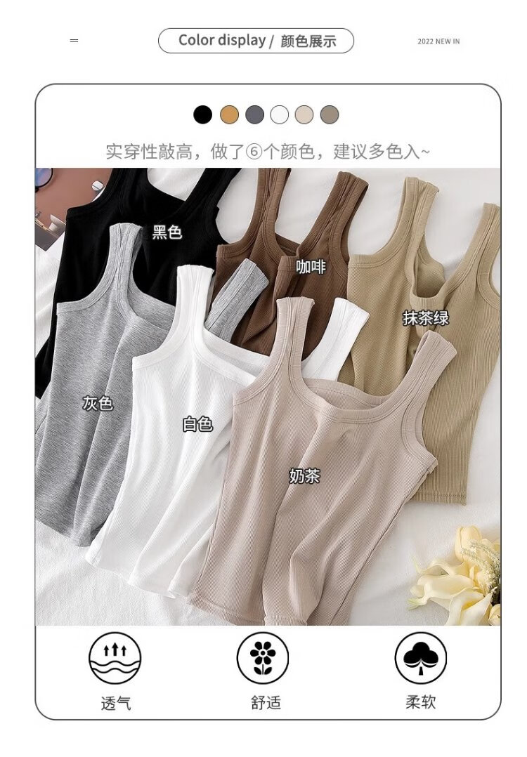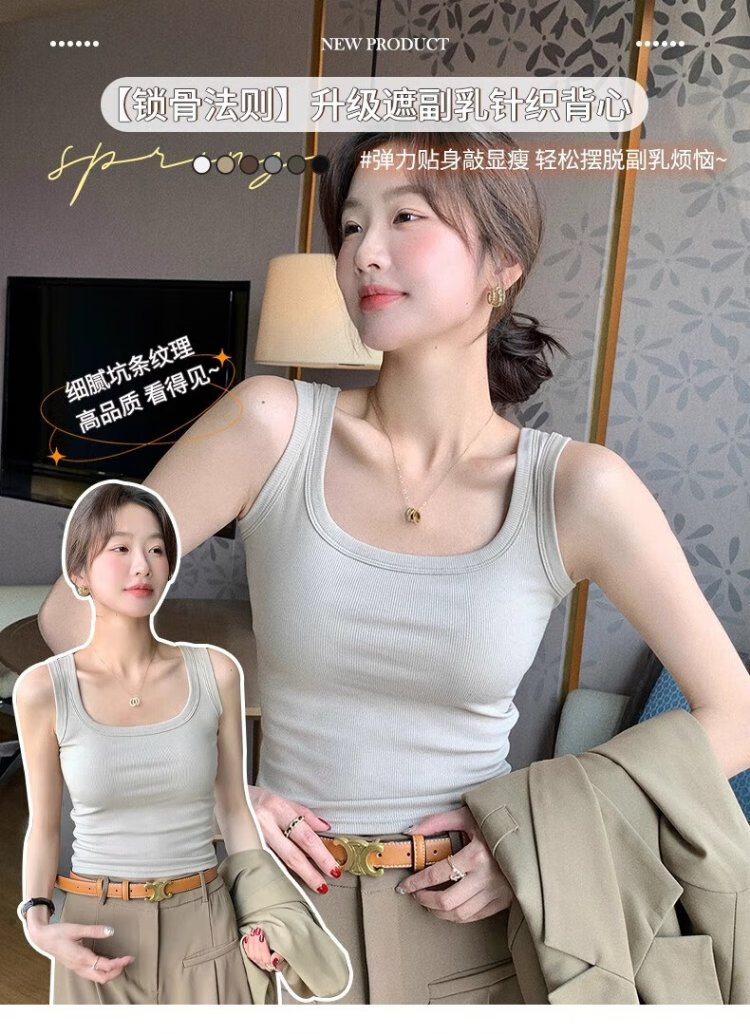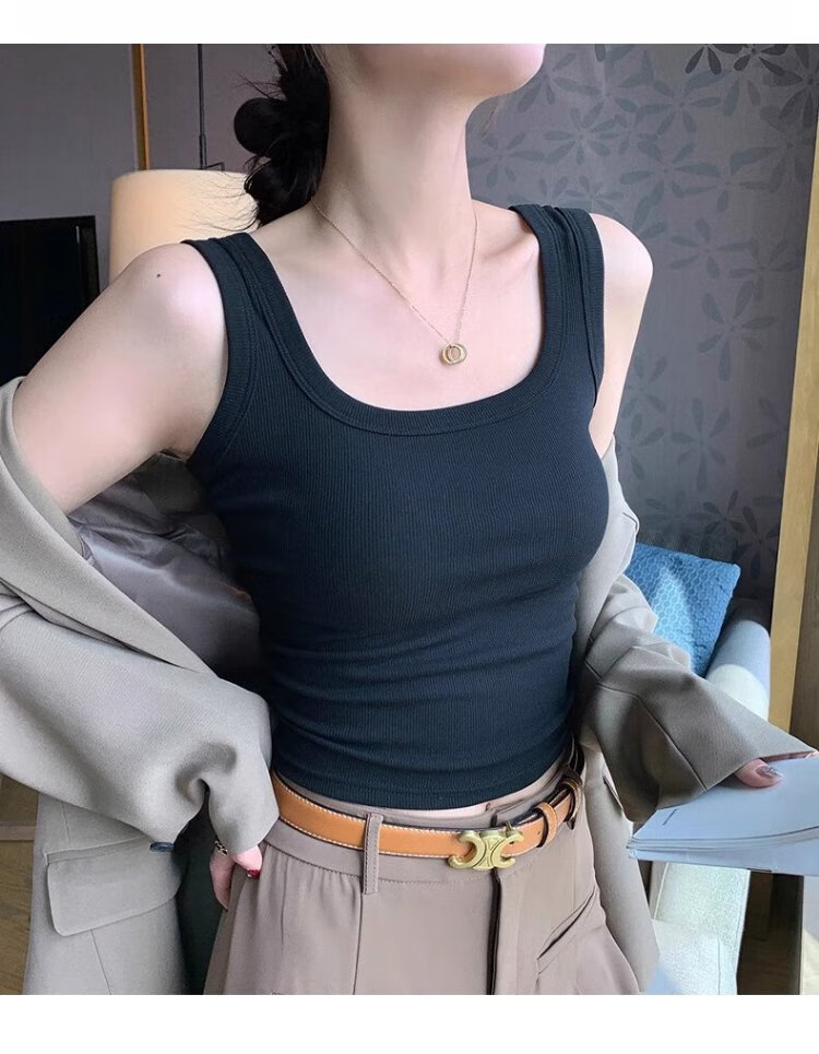 American-style broad-shouldered breast-covering camisole for women, summer thin, slim, simple, western style, versatile bottoming top, white L Recommended 110-135 Jin Jin equals 0.5 kg