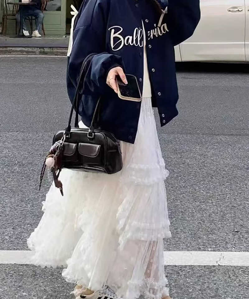 Ershanji Lace Skirt Cake Skirt Women's Spring and Autumn A-line Mesh Skirt Sweet Puff Skirt Fungus Trim Mid-Length Skirt Little White Skirt White L (111-125Jin Jin equals 0.5kg)