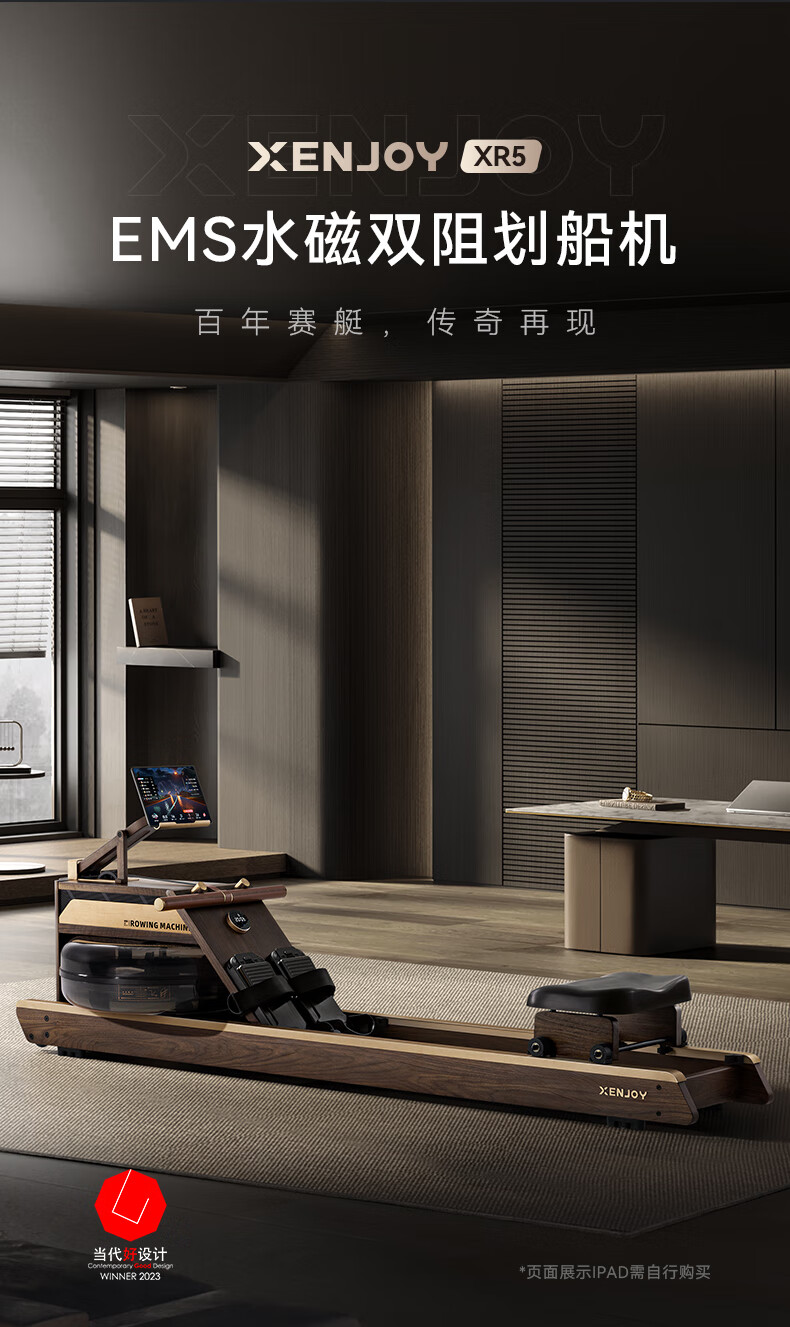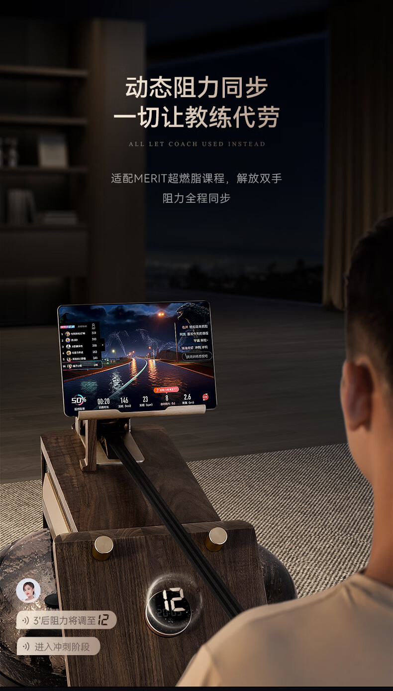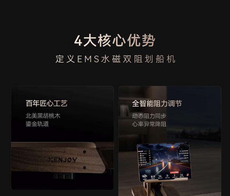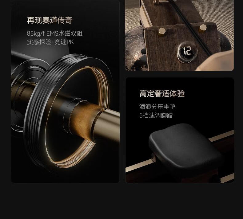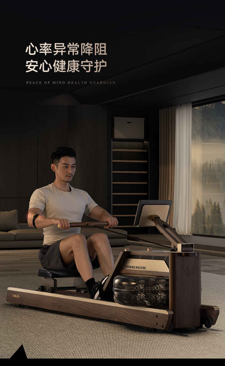 Zhenniang German imported high-quality Jueying high-end hydromagnetic double resistance rowing machine household light commercial gym equipment aerobic without North American cherry wood - EMS hydromagnetic double resistance