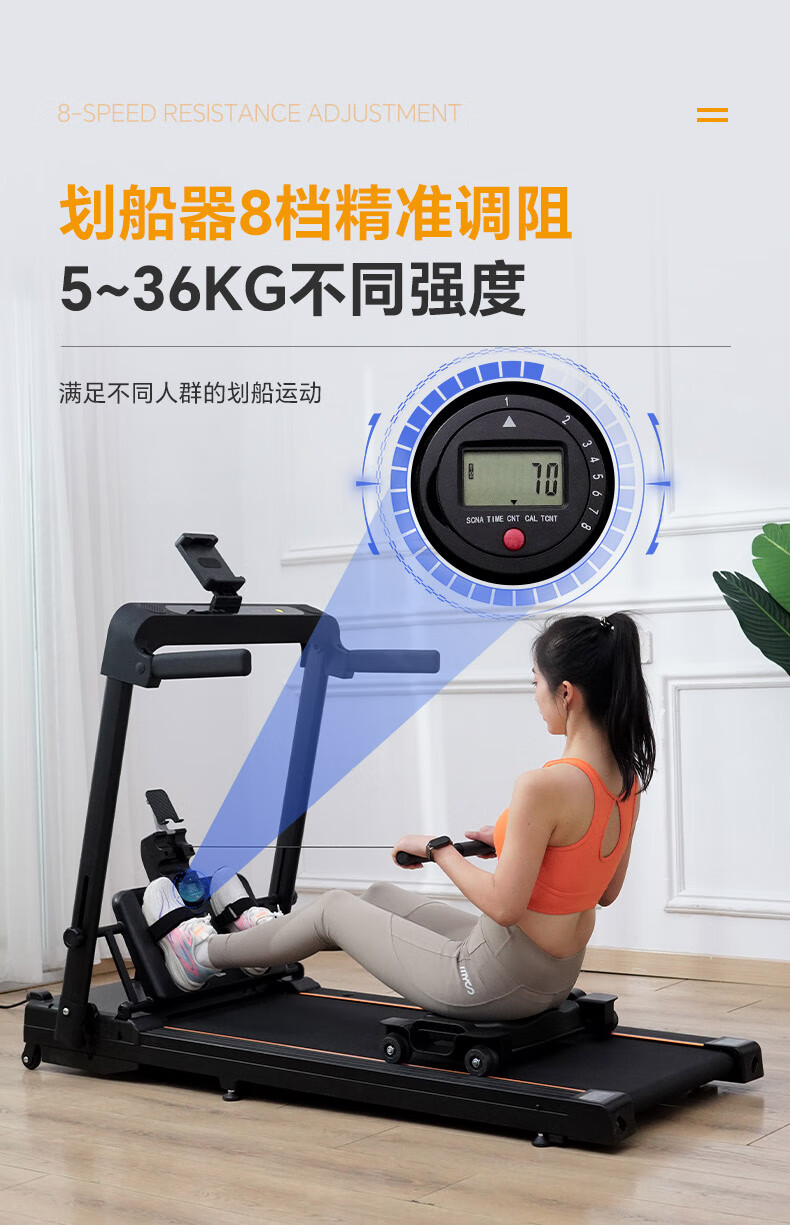 Zhenniang Germany imported high-quality running and rowing four-in-one machine for home use small silent multi-functional sports aerobic fitness X5 black/triathlon rowing and running all-in-one machine