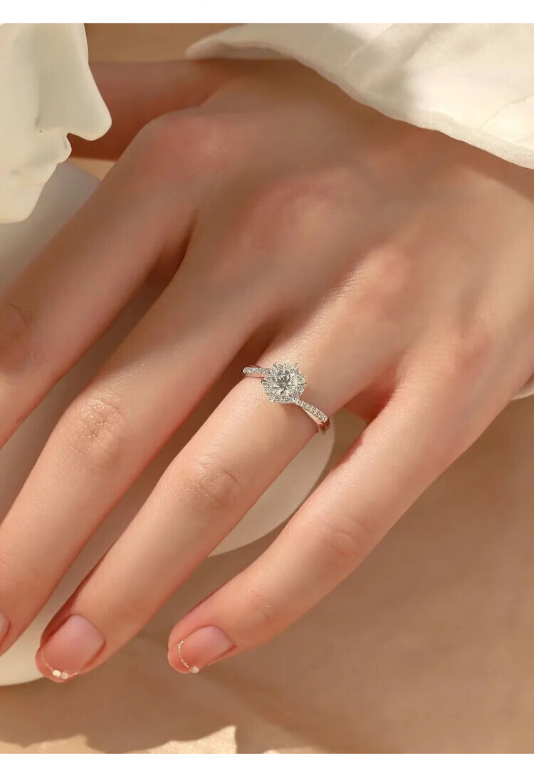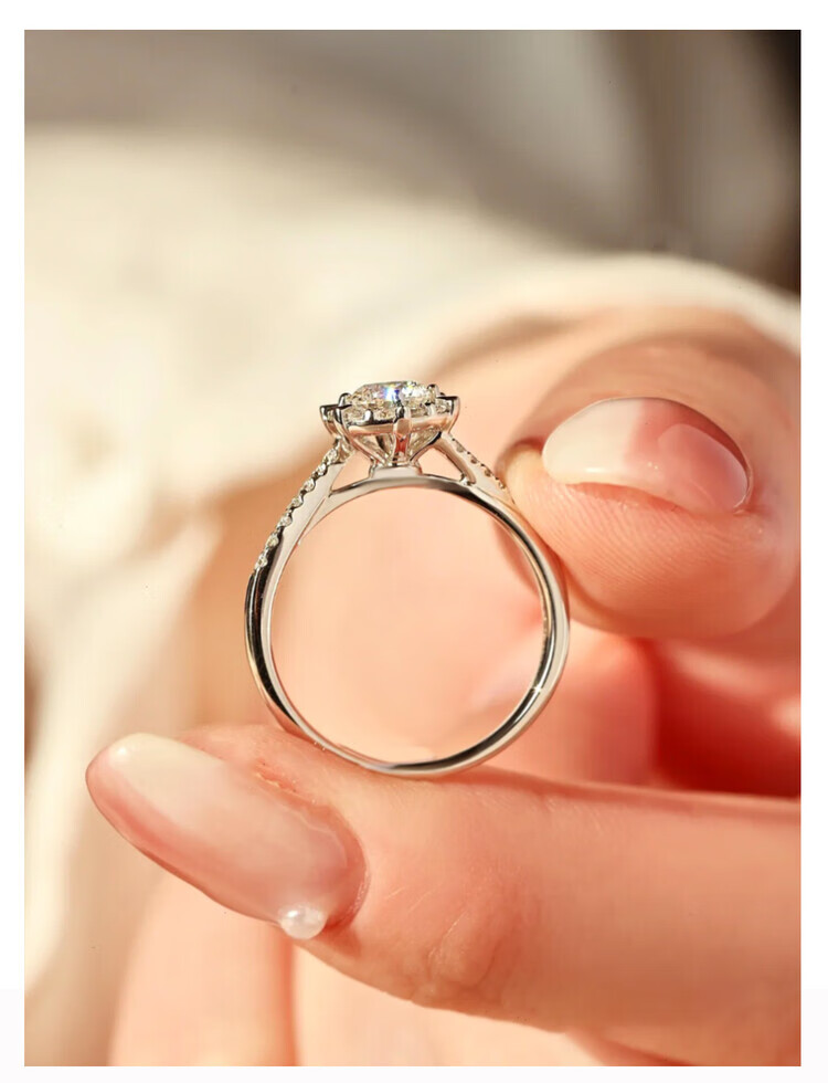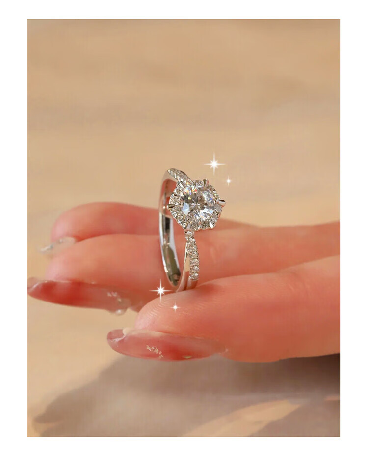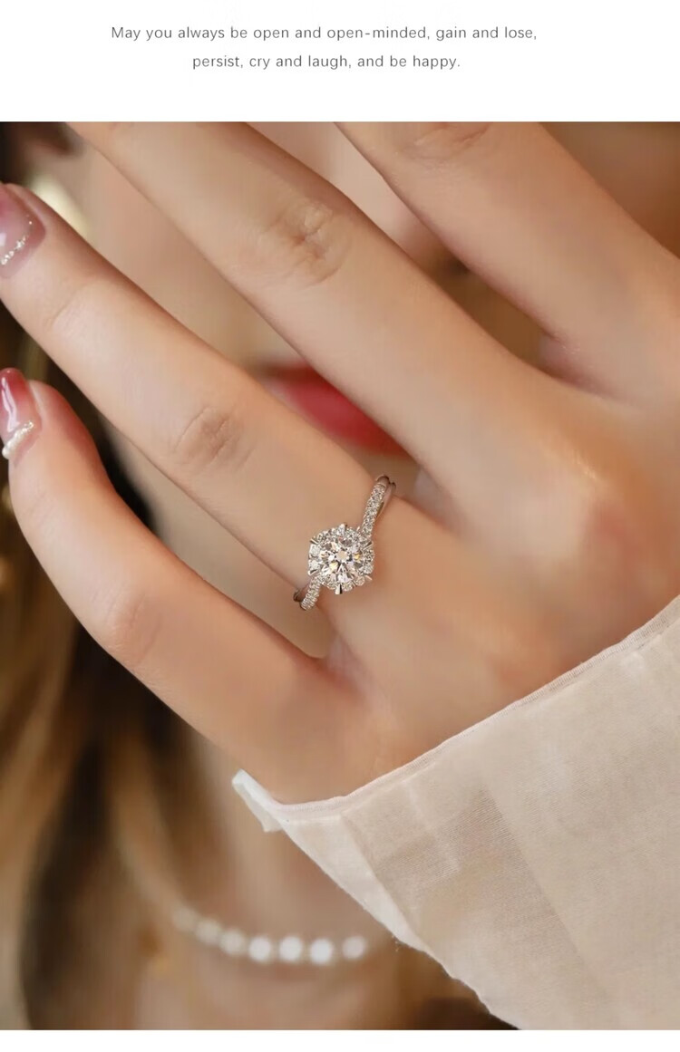 Pt950 platinum moissanite ring for women platinum niche design six prongs 50 points diamond seeking engagement wedding diamond ring light luxury model twisted arm group set main diamond 50 points live mouth