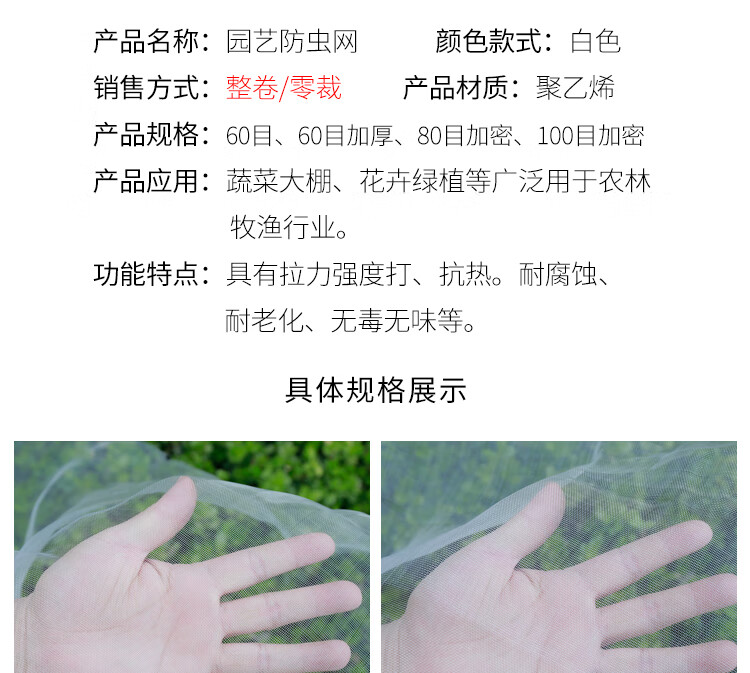 农用防虫网蔬菜大棚果园加厚防虫纱网耐晒养殖场专用防果蝇粉虱 100目【加密厚款】 2x10m