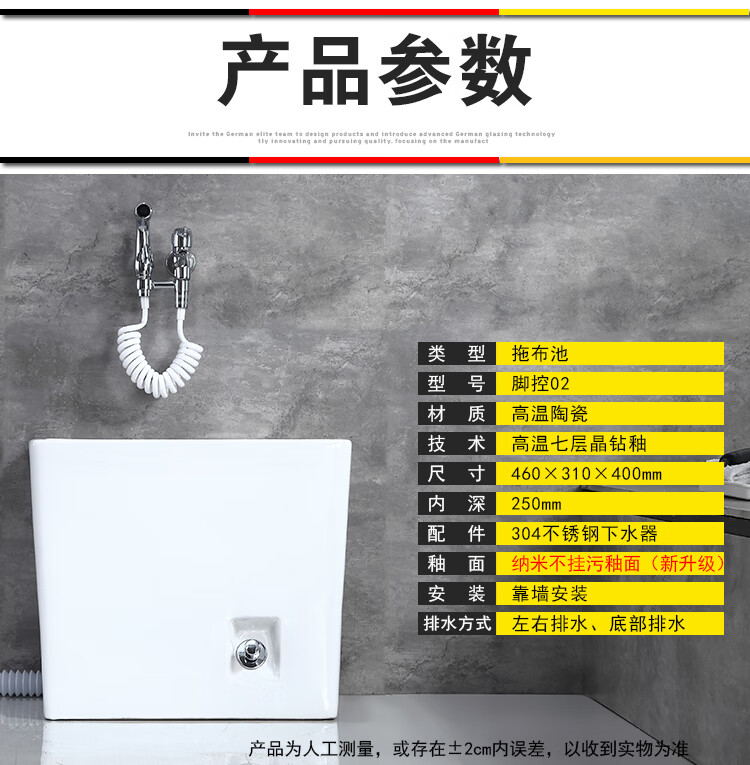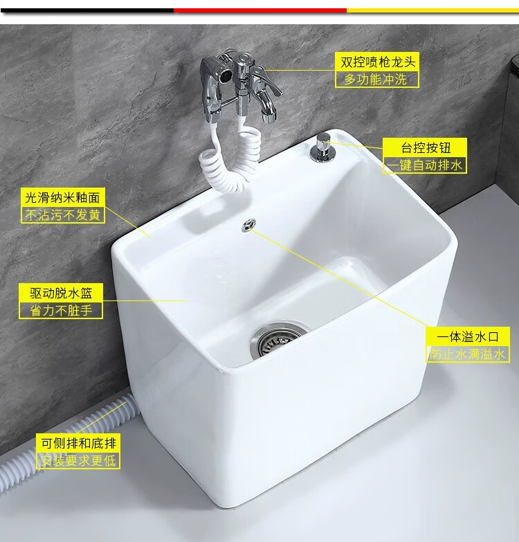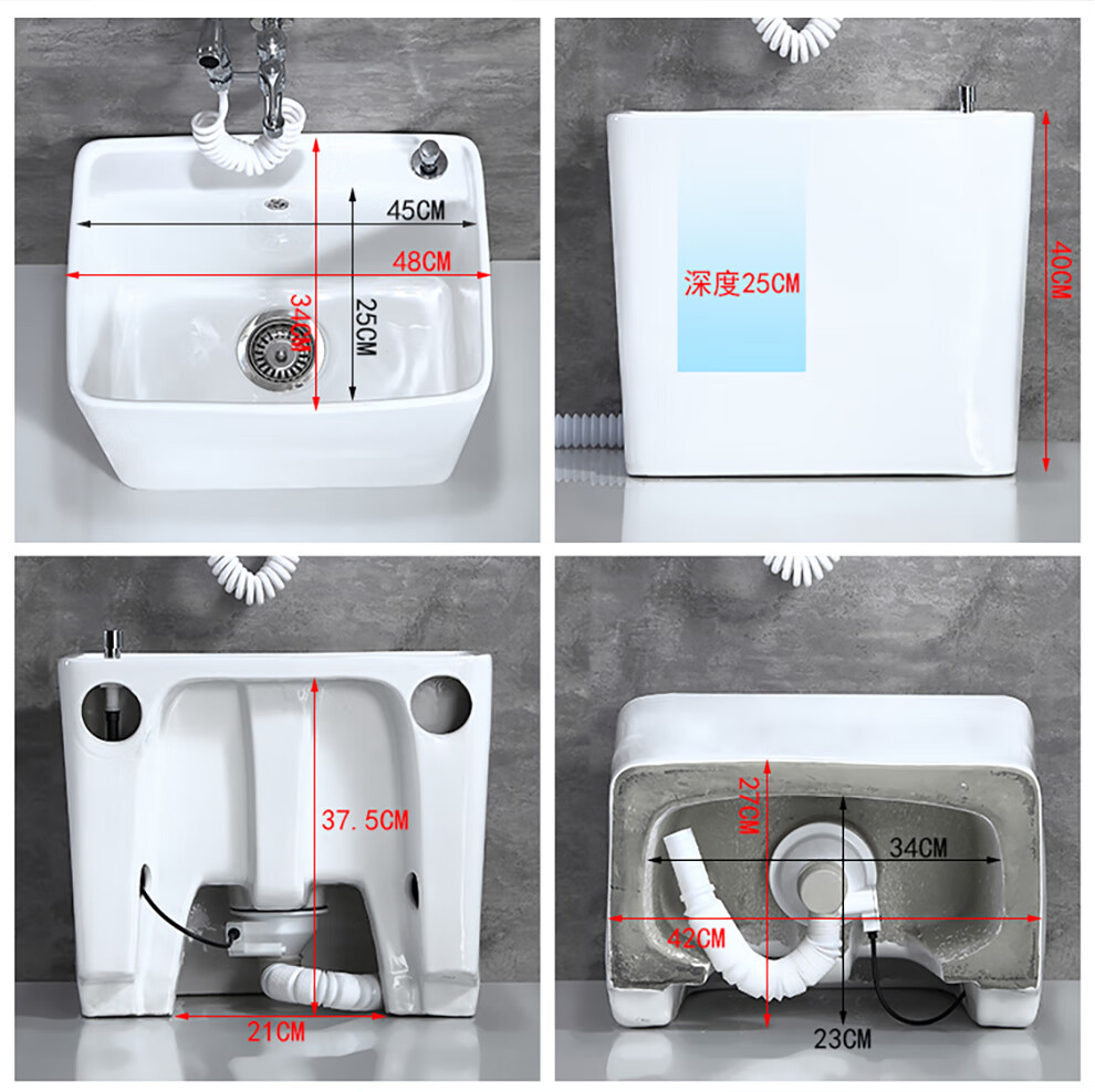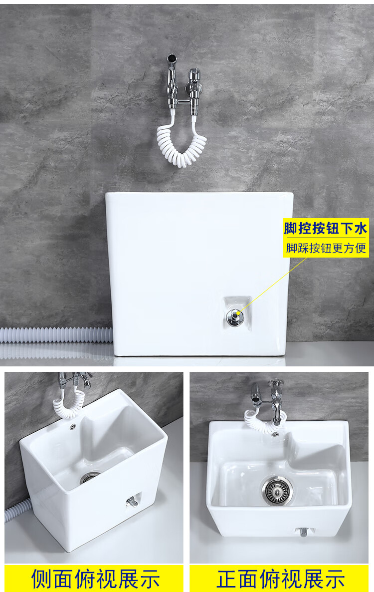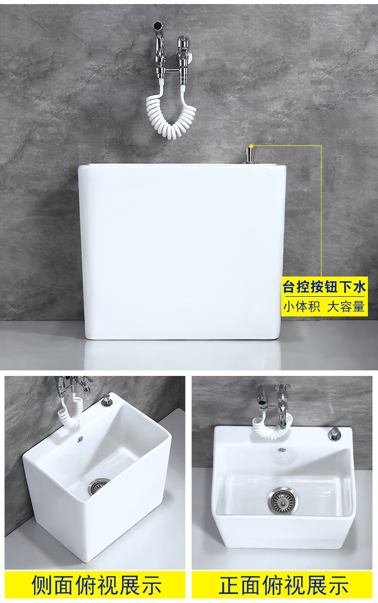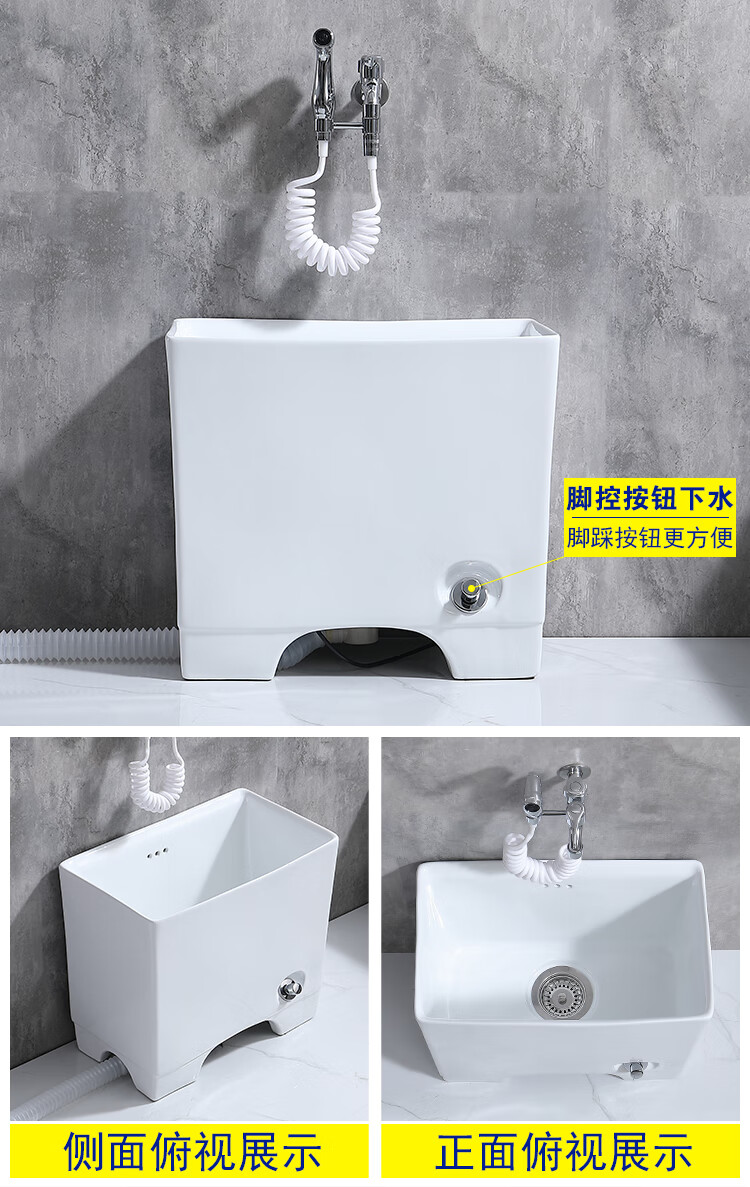 Jiumu household mop pool household balcony washing mop pool bathroom mobile mop pool underground pool basin outdoor B010 hand-press one-button drainage - faucet not included