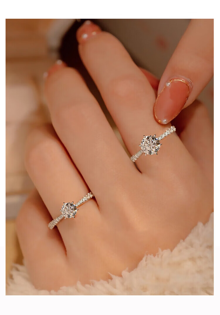 Pt950 platinum six-prong row of diamonds 1 carat moissanite white gold diamond ring female proposal wedding ring gift for girlfriend light luxury model micro-set six prongs main diamond 50 points closed size 12