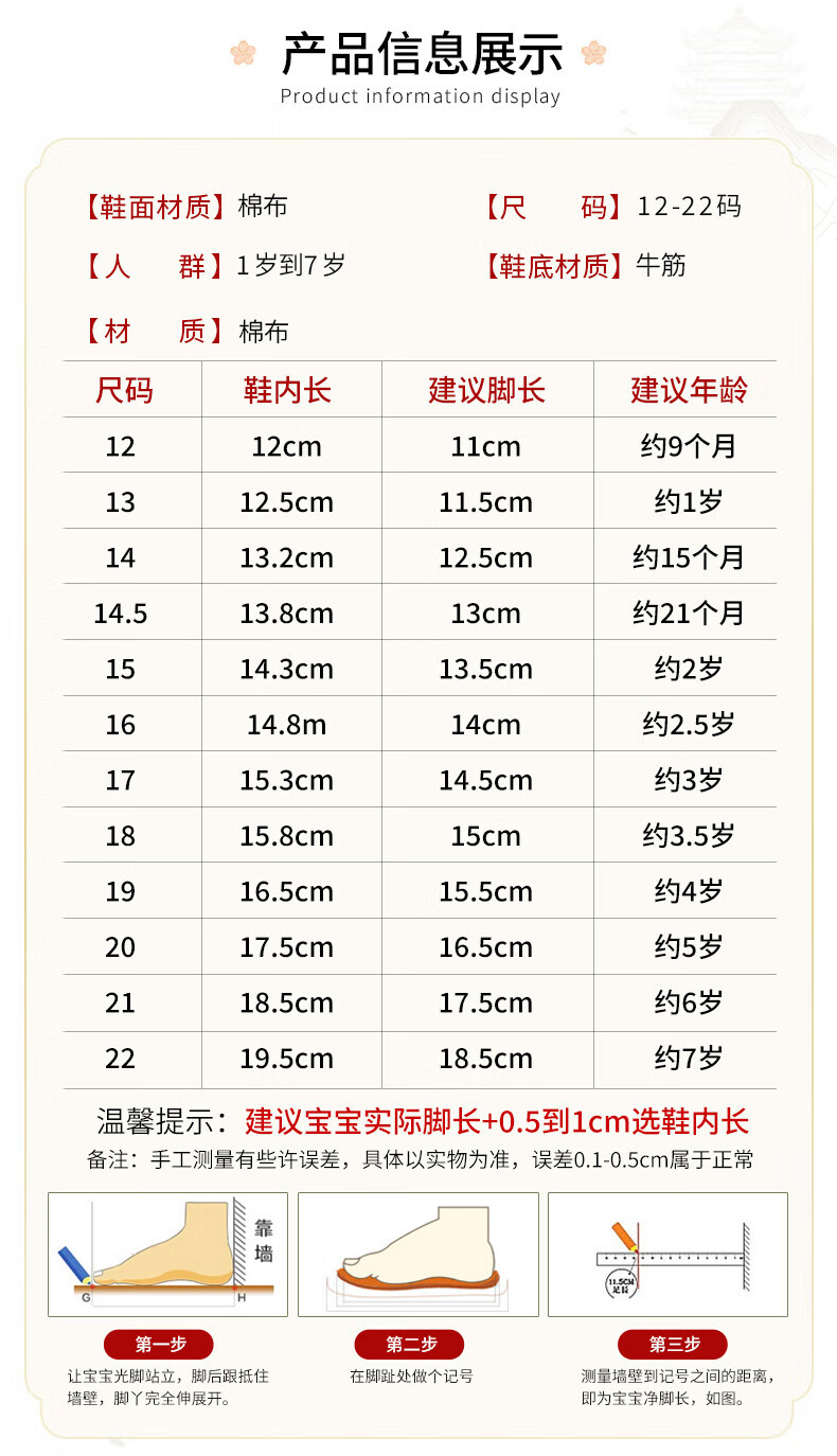 Ruiyang parent-child old Beijing children's handmade cloth shoes thousand-layer sole baby shoes toddlers spring and autumn fashion 1086 10.5 inner length 14.8cm, standard size 16, about 2.5 years old