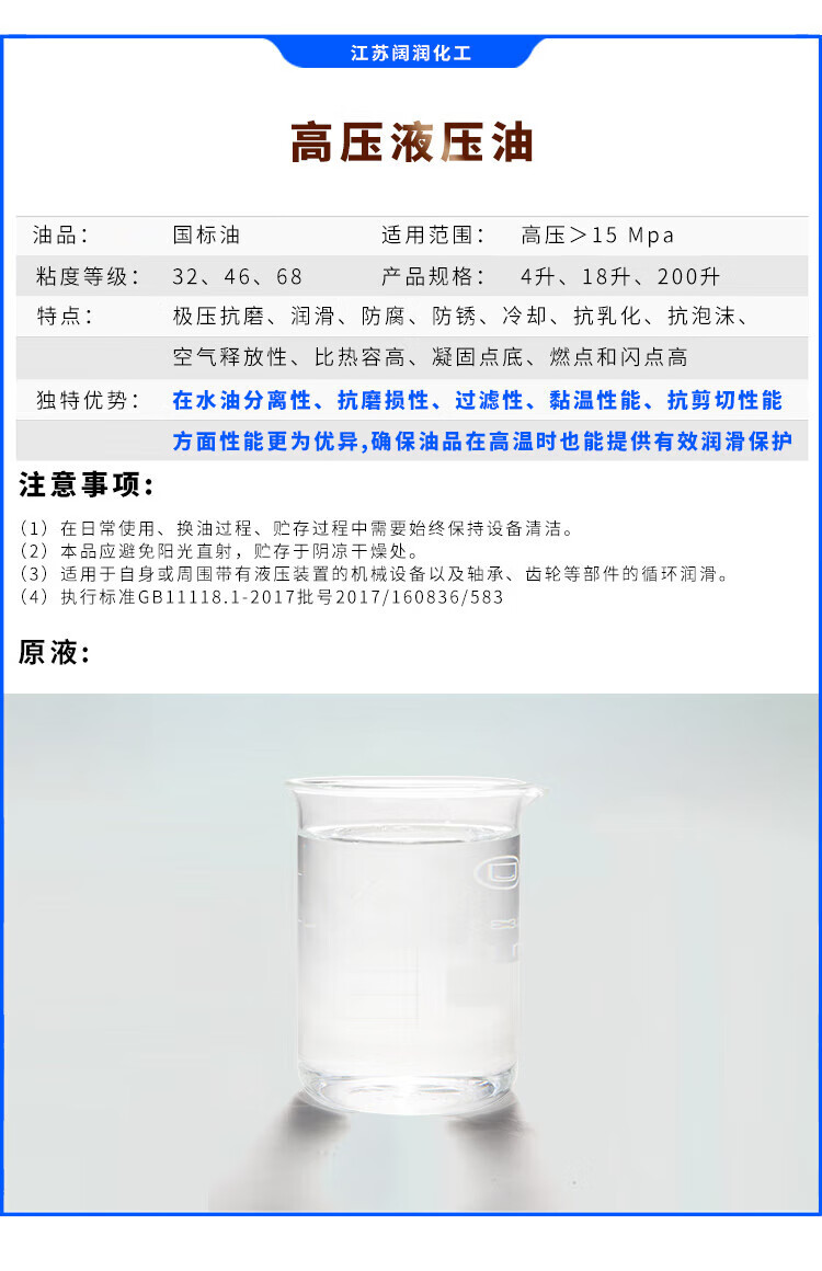 L-HM anti-wear hydraulic oil guide rail oil mechanical oil No. 32 No. 46 68# forklift injection molding machine special 18L 200 liters 4 liters No. 46 anti-wear hydraulic oil