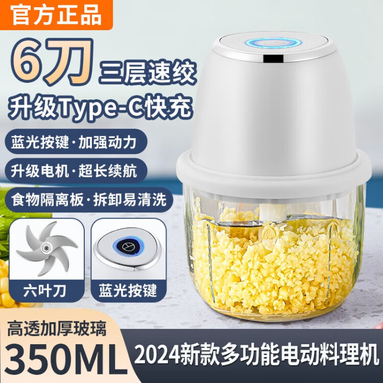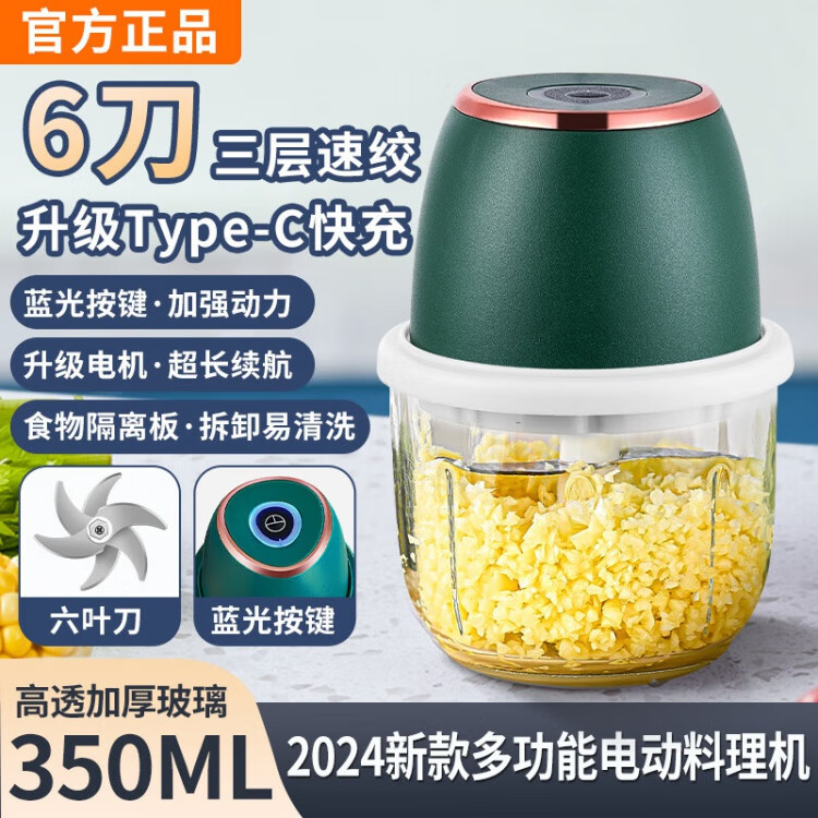 Garlic electric garlic pounder household small garlic stirrer garlic grinder minced garlic mince machine garlic beater glass 350ML dark blue/six-leaf knife minced onion and ginger