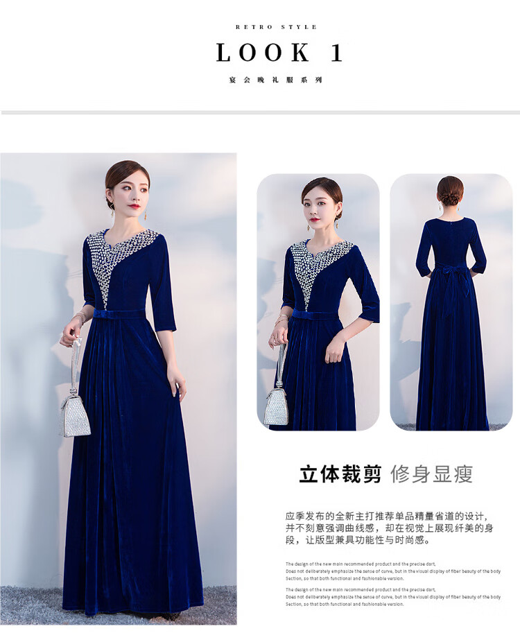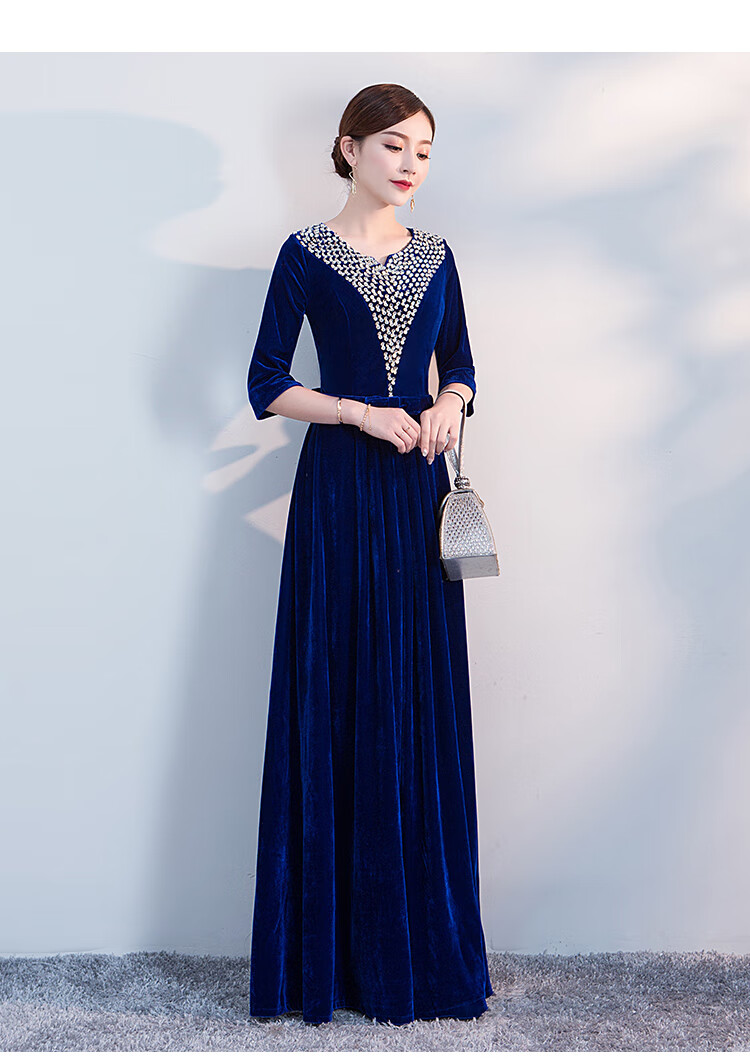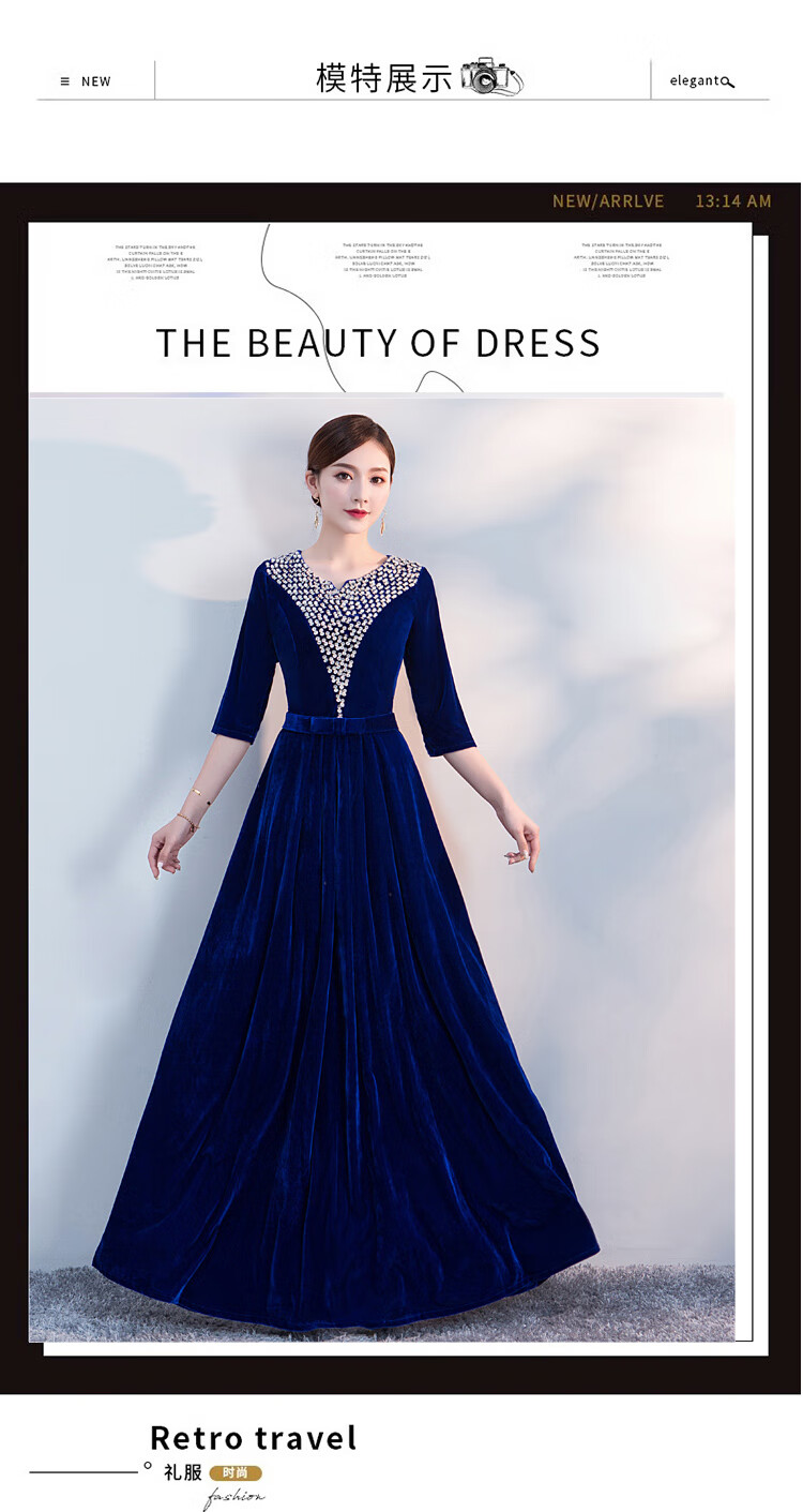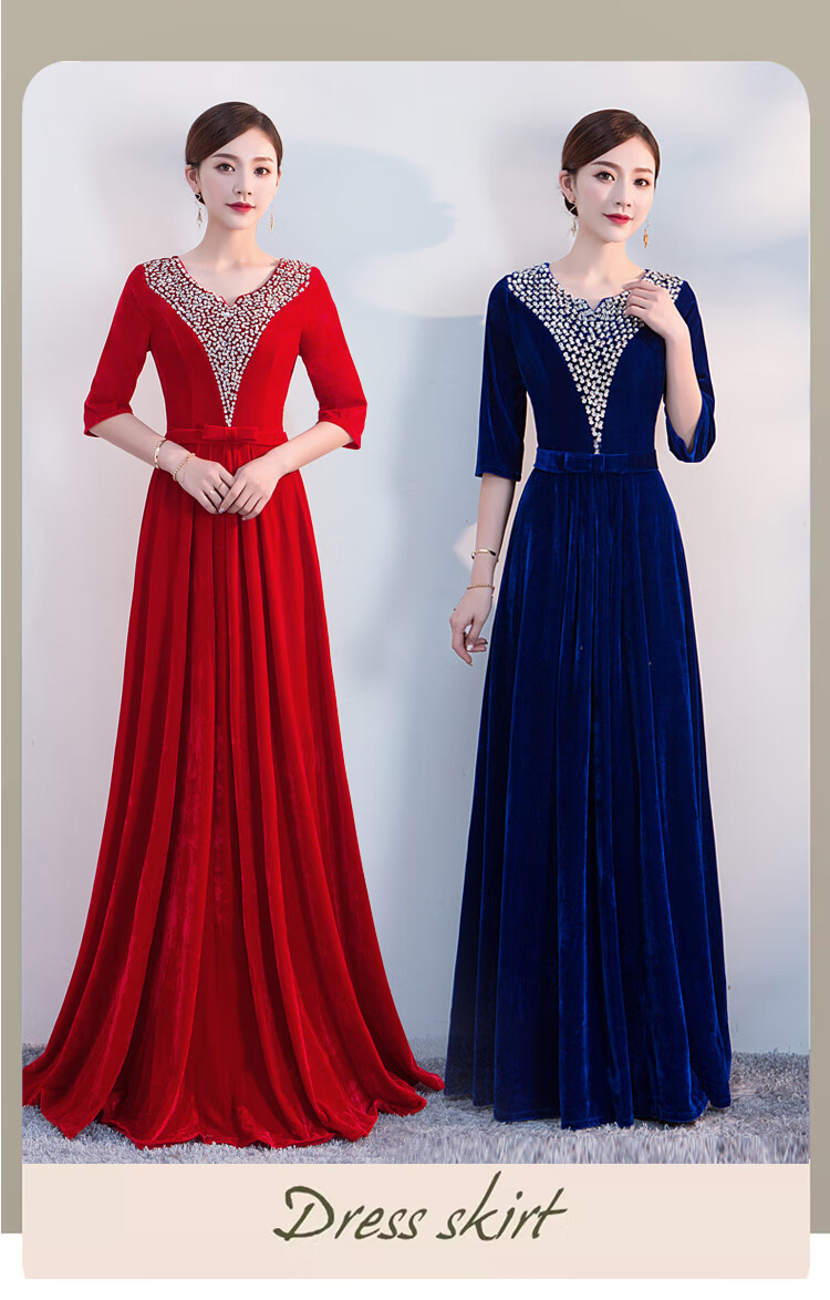 Pierre Cardin Cantata Performance Clothing Women's Long Skirt Conductor Host Competition Performance Clothing High-end Student Temperament Evening Dress Sky Blue Gradient S