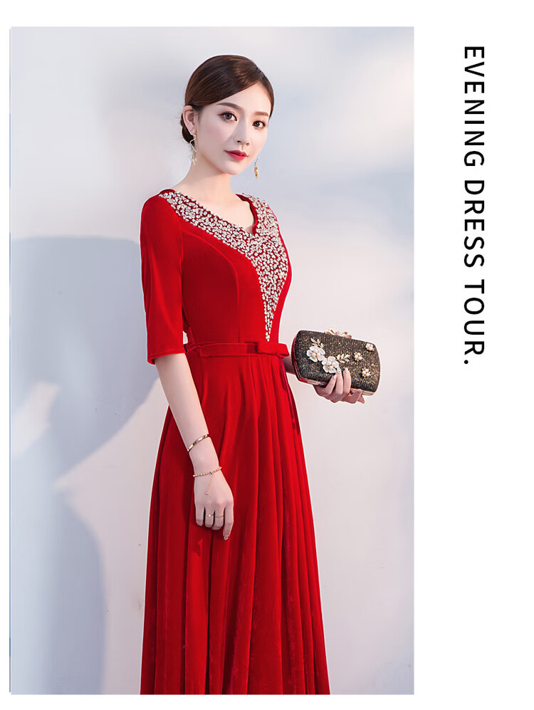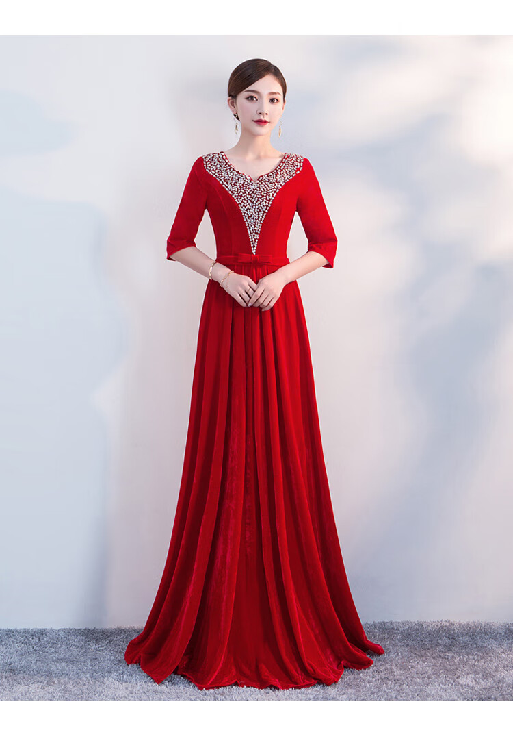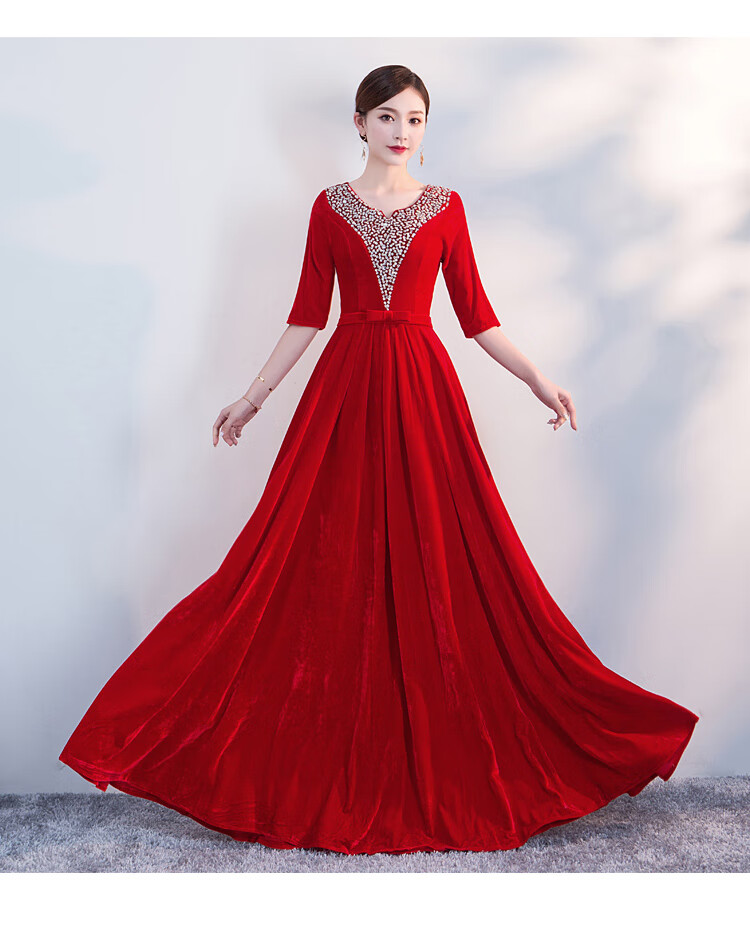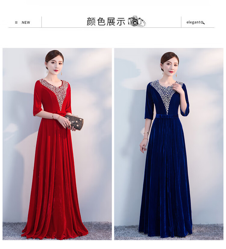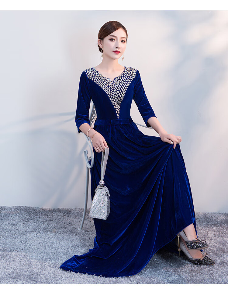 Pierre Cardin Cantata Performance Clothing Women's Long Skirt Conductor Host Competition Performance Clothing High-end Student Temperament Evening Dress Sky Blue Gradient S