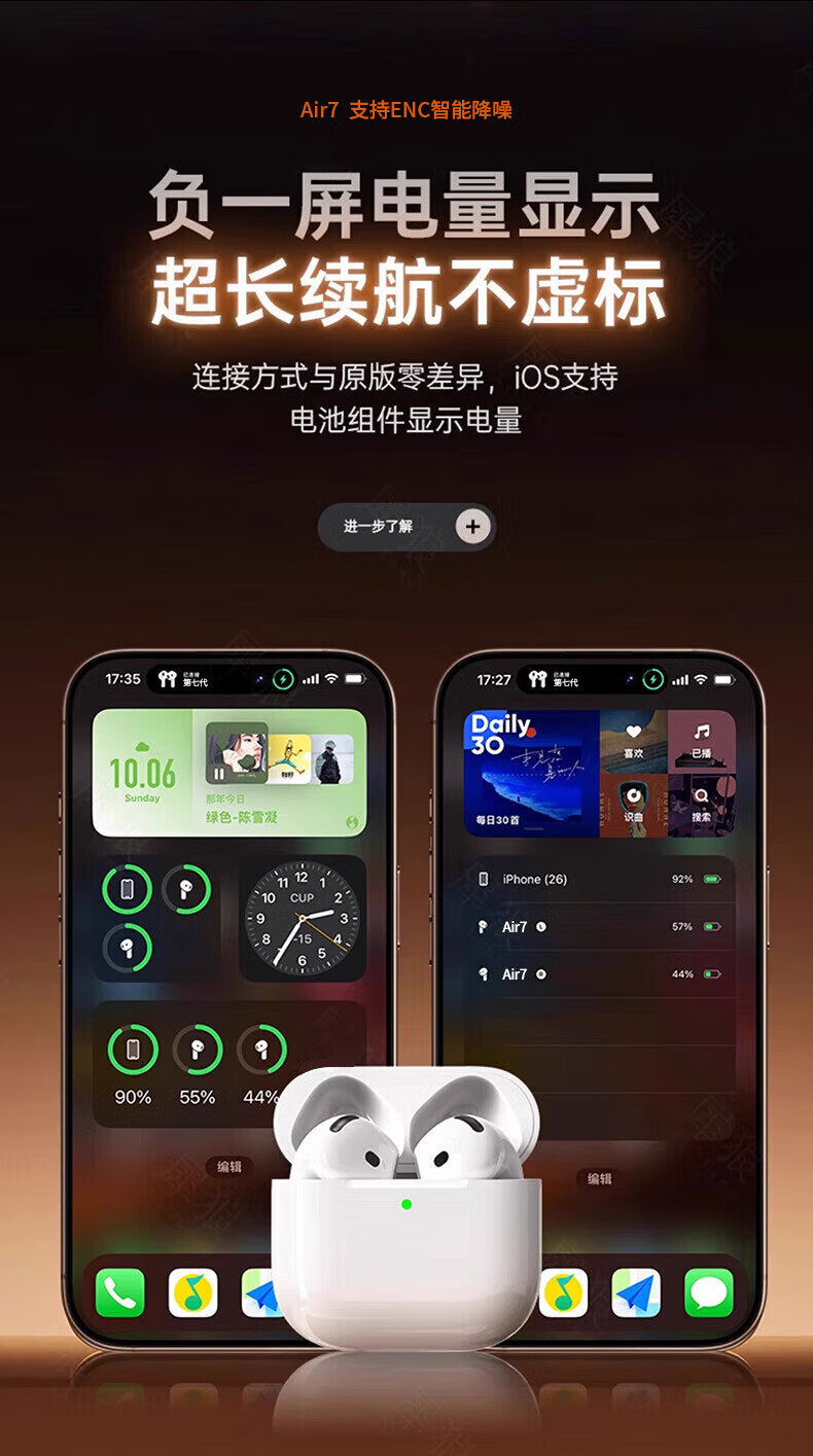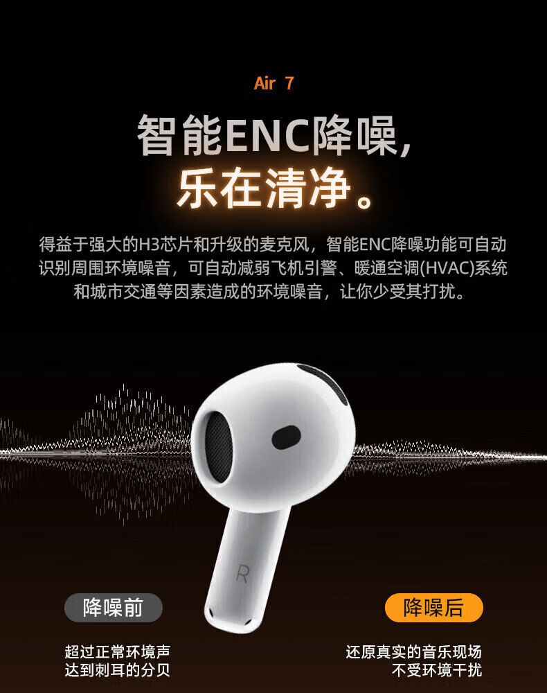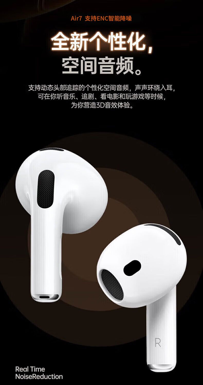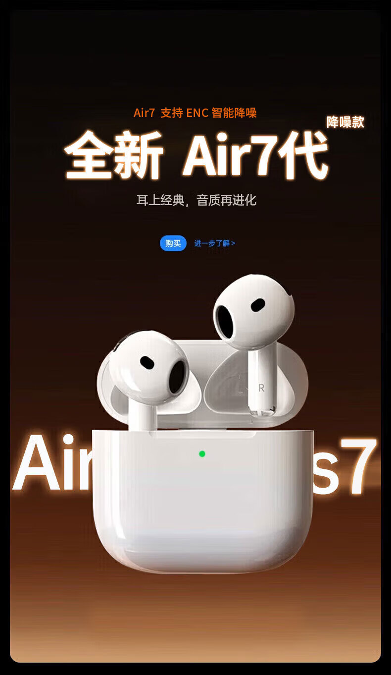 Huaqiangbei's new direct-operated authentic products丨Noise-cancelling Air7 generation Bluetooth headset true wireless adaptation Apple active noise-cancelling semi-in-ear state-subsidized iPhone17/16/15Pods noise-cancelling full-featured pods top version active noise reduction + spatial audio + three true power