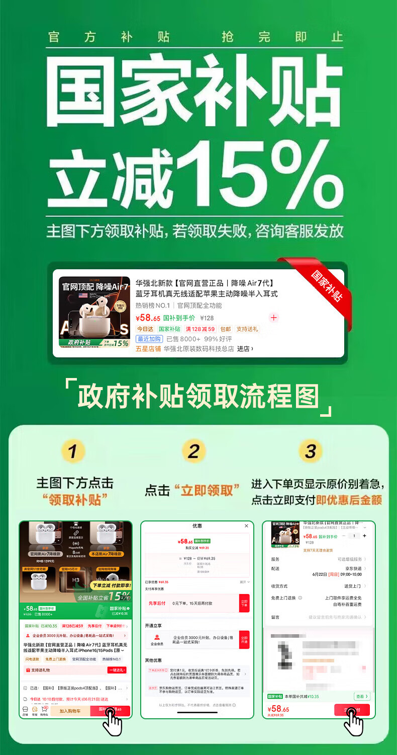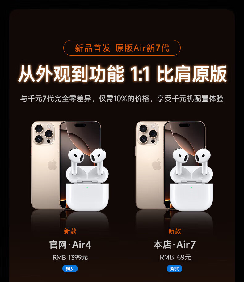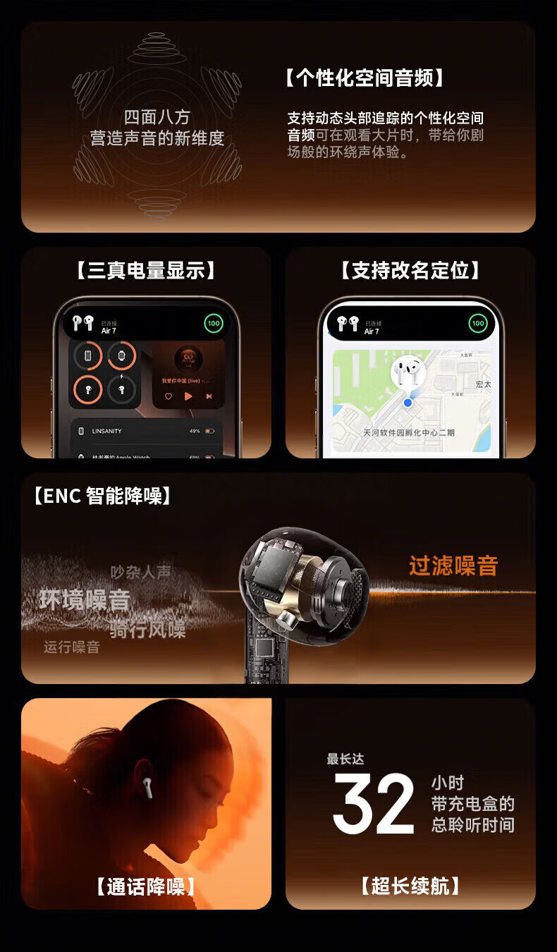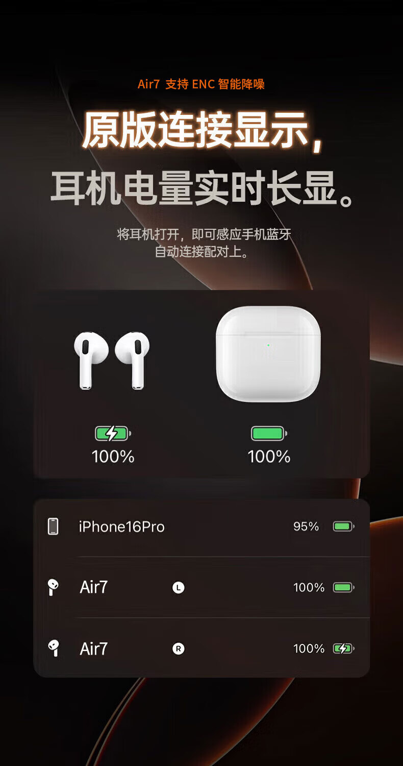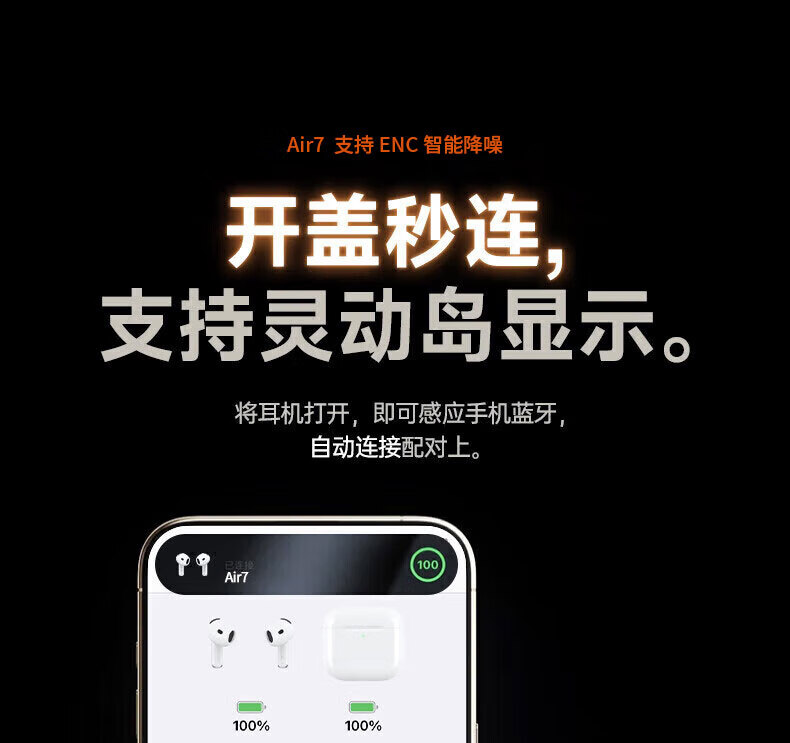 Huaqiangbei's new direct-operated authentic products丨Noise-cancelling Air7 generation Bluetooth headset true wireless adaptation Apple active noise-cancelling semi-in-ear state-subsidized iPhone17/16/15Pods noise-cancelling full-featured pods top version active noise reduction + spatial audio + three true power