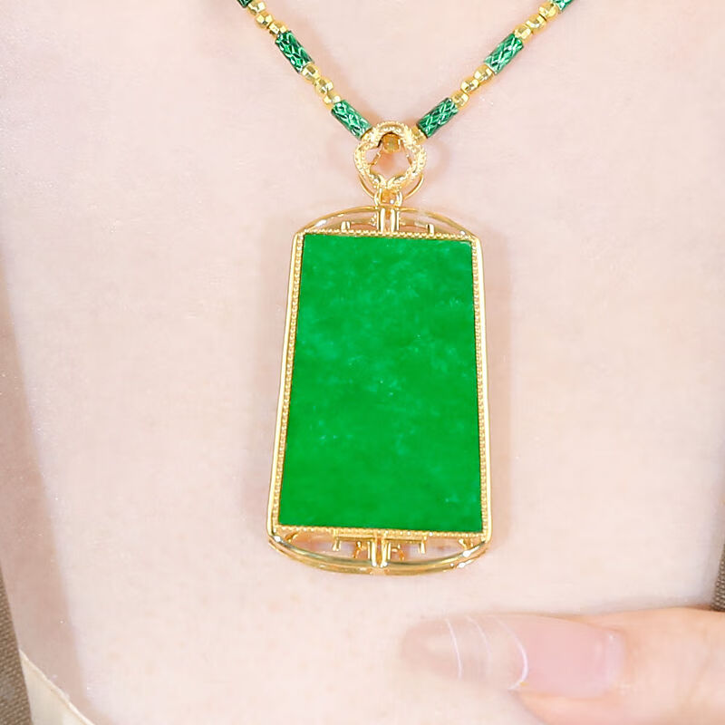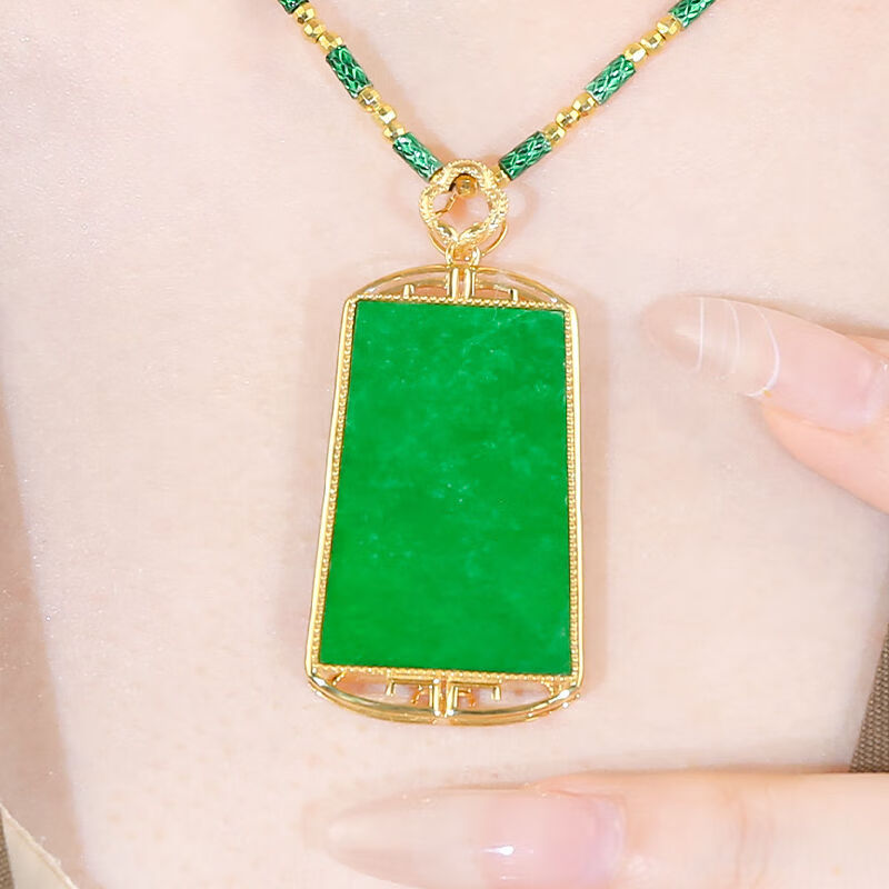 Puli Chinese Valentine's Day gift 18K gold inlaid - high-end design Yang green A goods Wushi brand pendant