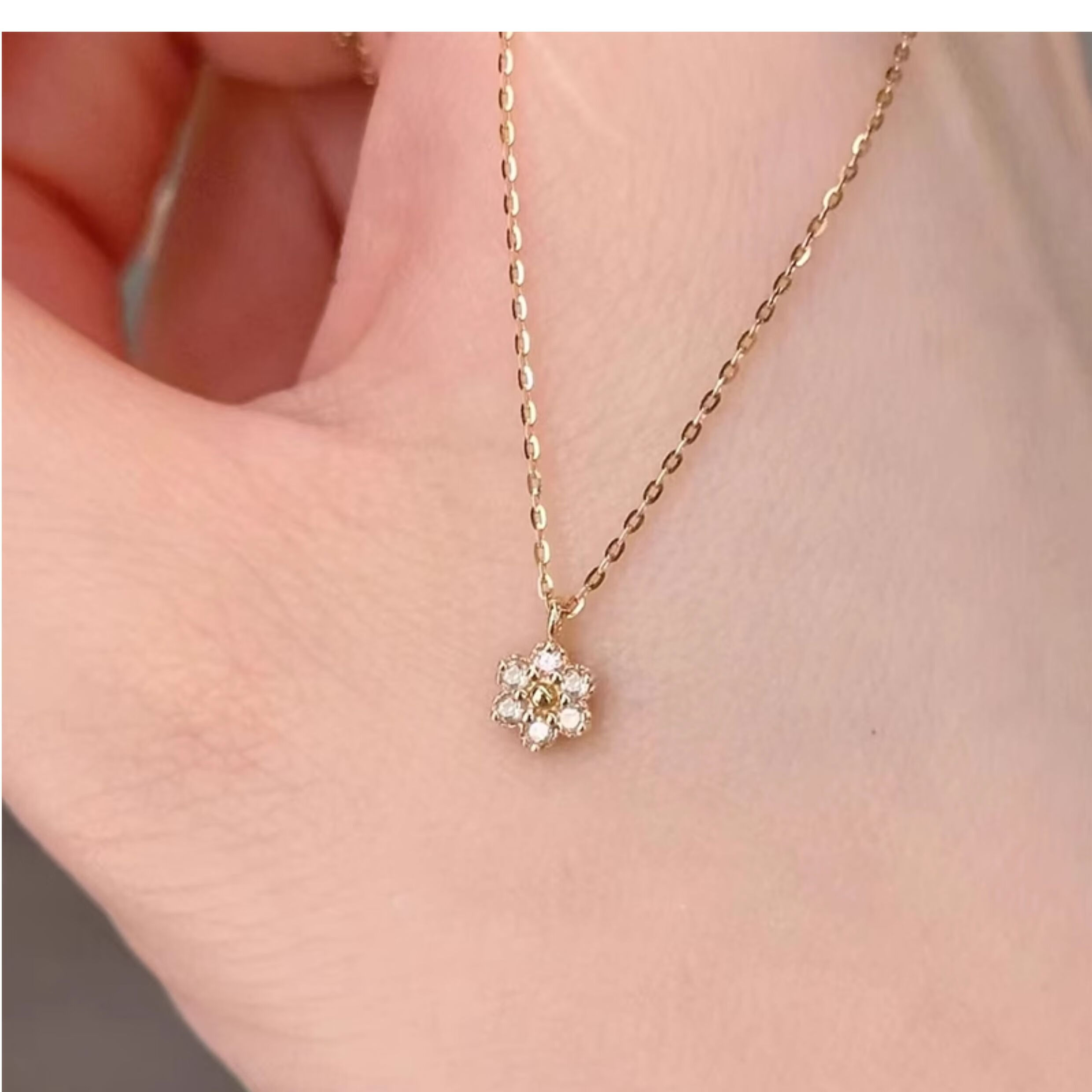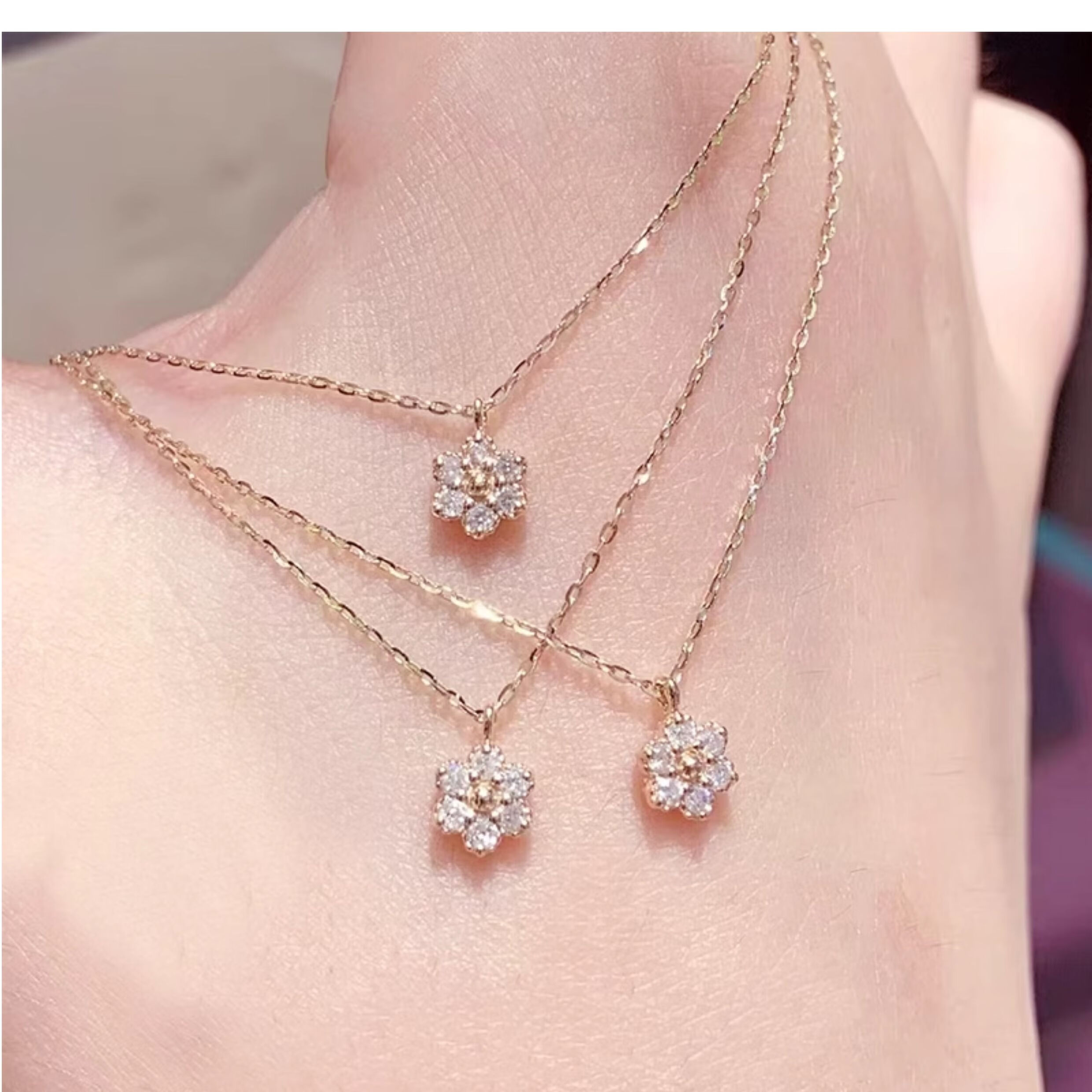 Puli 18K gold natural diamond small flower pendant daisy necklace women's clavicle chain women's high-end simple AU750 neck jewelry 20 points or less, not graded 18K gold custom F-G/excellent white 1 point