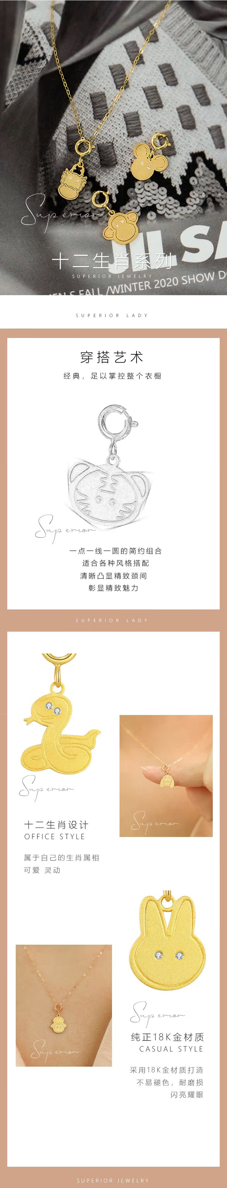 Puli superior jewelry 18k gold necklace women's 12 zodiac year of the ox pendant diamond zodiac year clavicle chain zodiac year of the ox diamond necklace