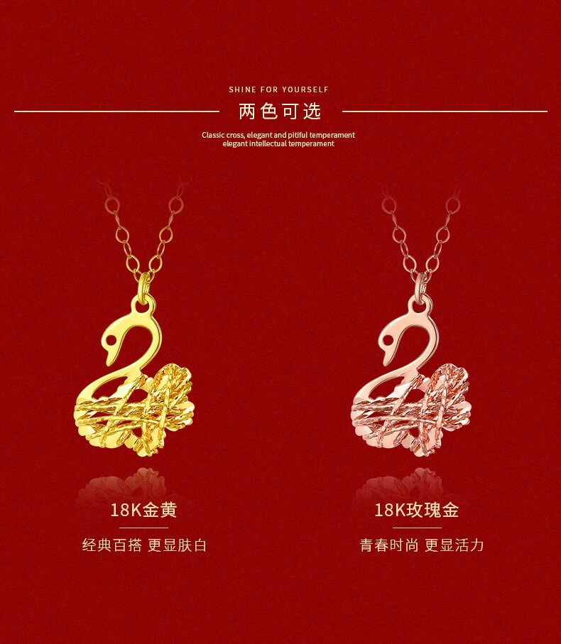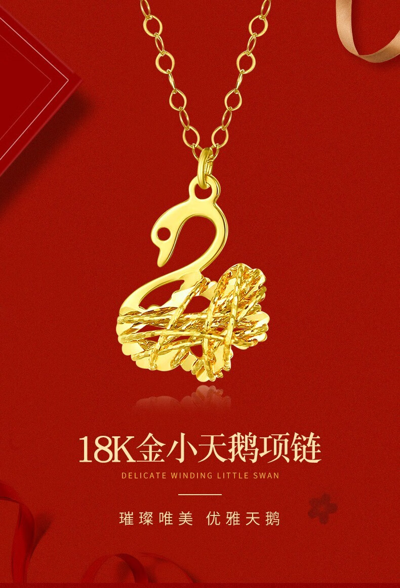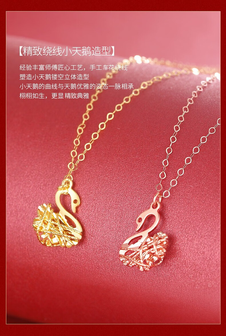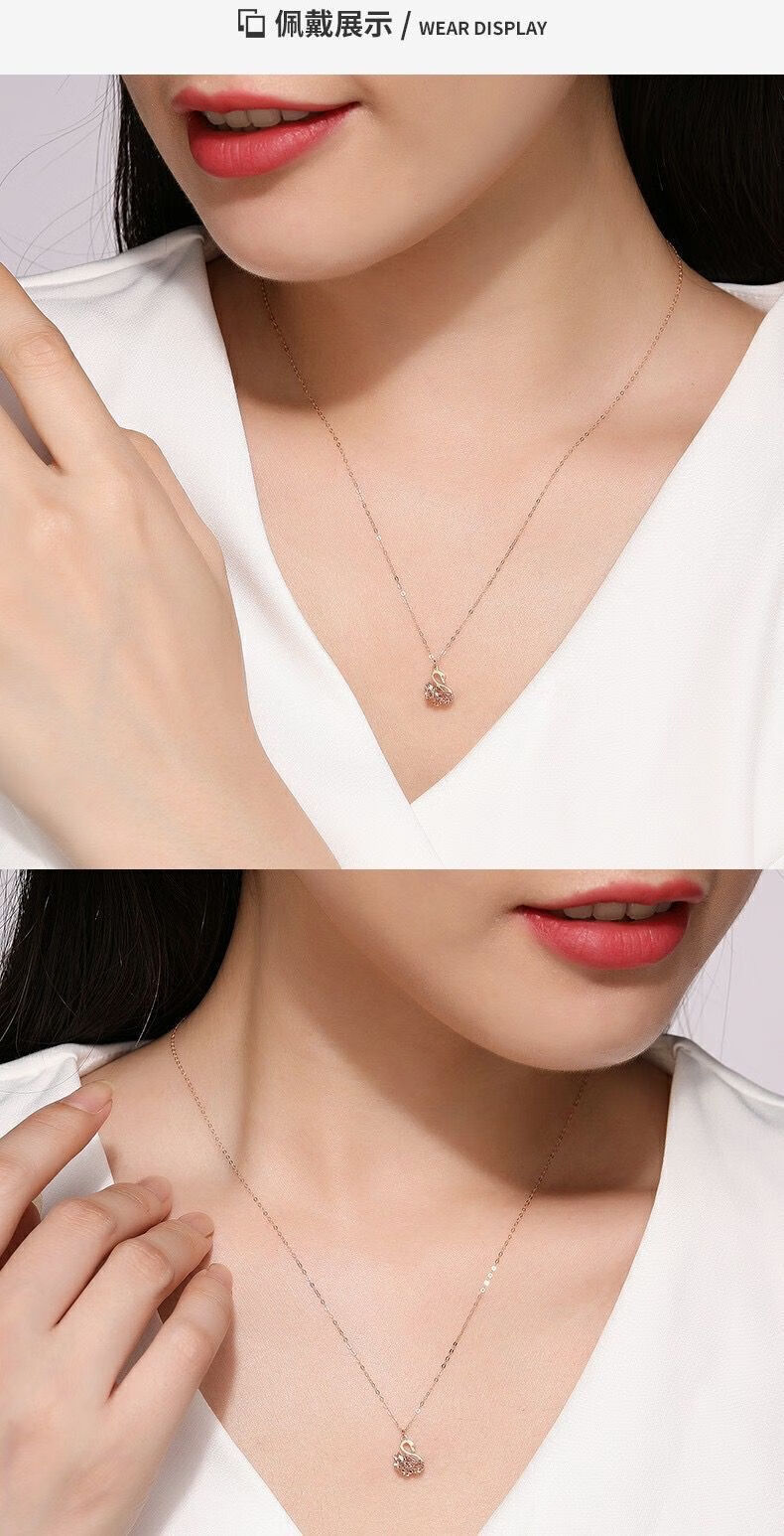 Puli 18K gold pendant rose gold hollow swan clavicle chain 18K gold yellow color gold necklace set chain necklace for girlfriend 18K yellow swan set chain