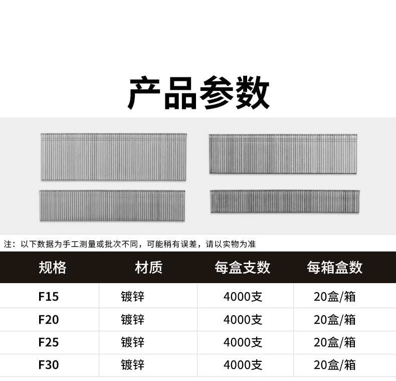 Huxin F30 straight nails 4000 pcs/box gun nails row nails decoration furniture woodworking decoration nails F10F15F20F25T38T50 air row nails T50 (1326 pcs/box)