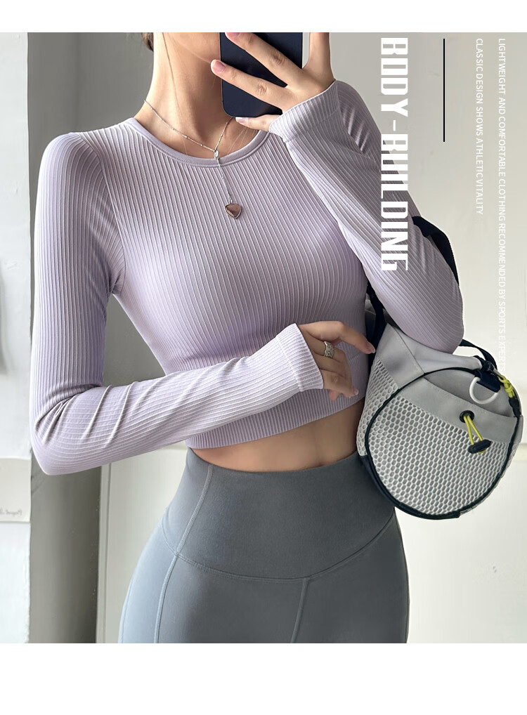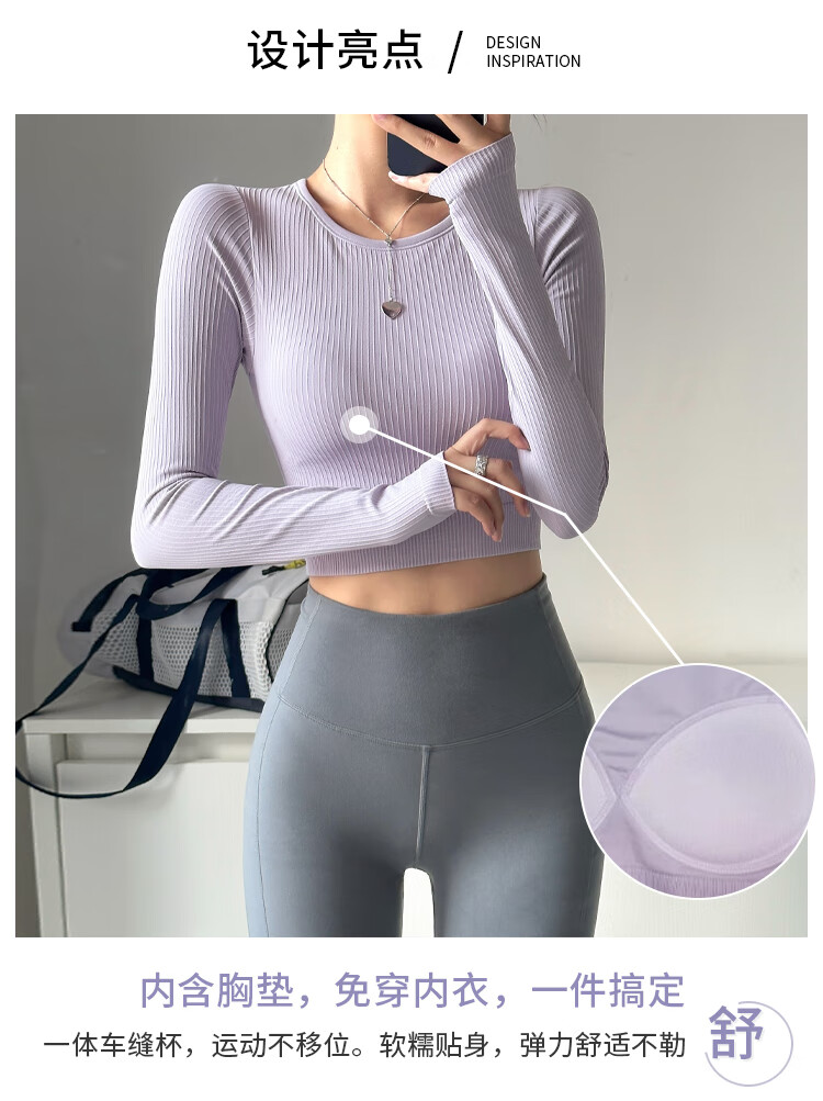 Jincheng all-in-one cup yoga wear with chest pad spring and autumn running fitness long-sleeved Pilates top for women purple one-in-one cup T2165W S 100Jin Jin equals within 0.5kg