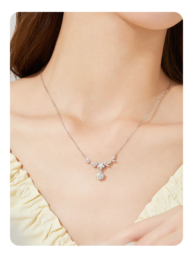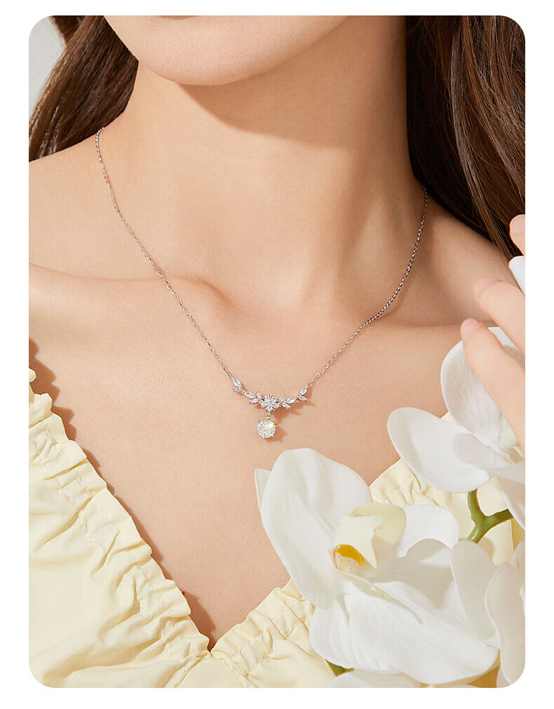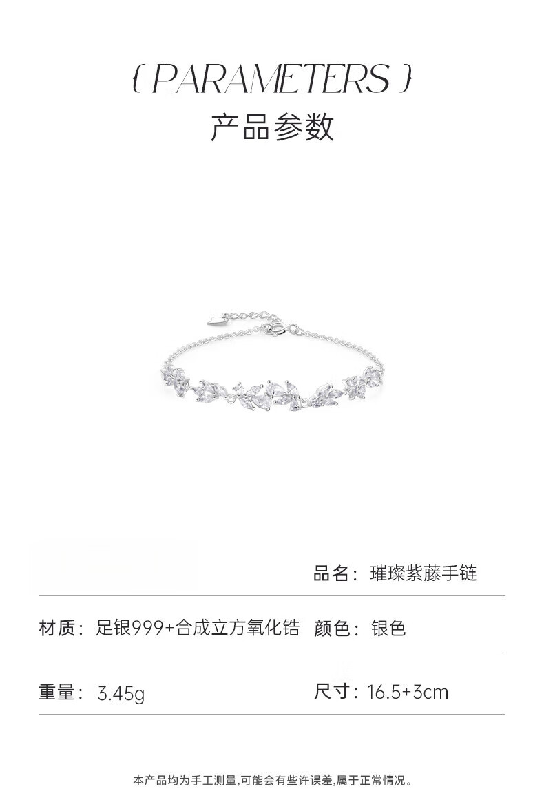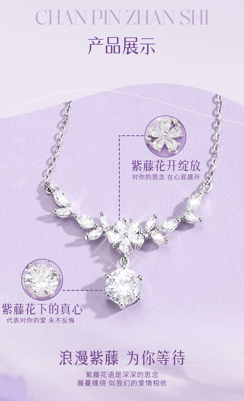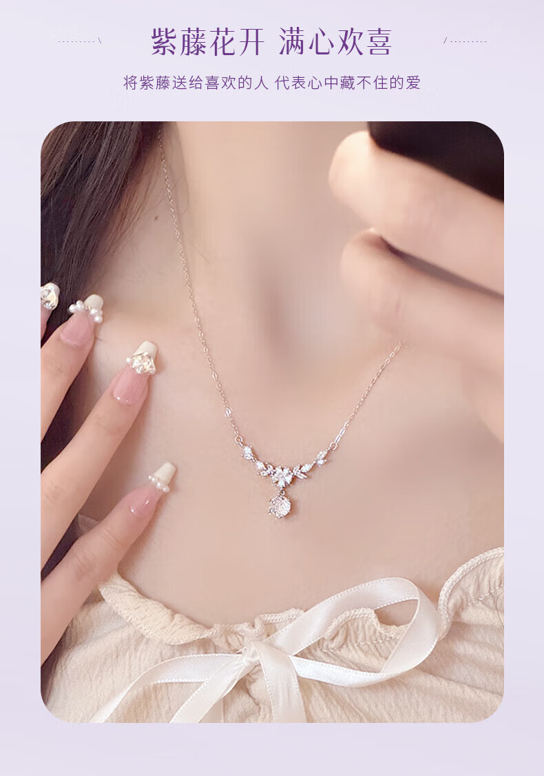 Ji Sifan Light Luxury Wisteria Flower Necklace Women's High-end Bracelet Valentine's Day Anniversary Birthday Gift for Wife and Girlfriend Wisteria Blossom Necklace - White Gold