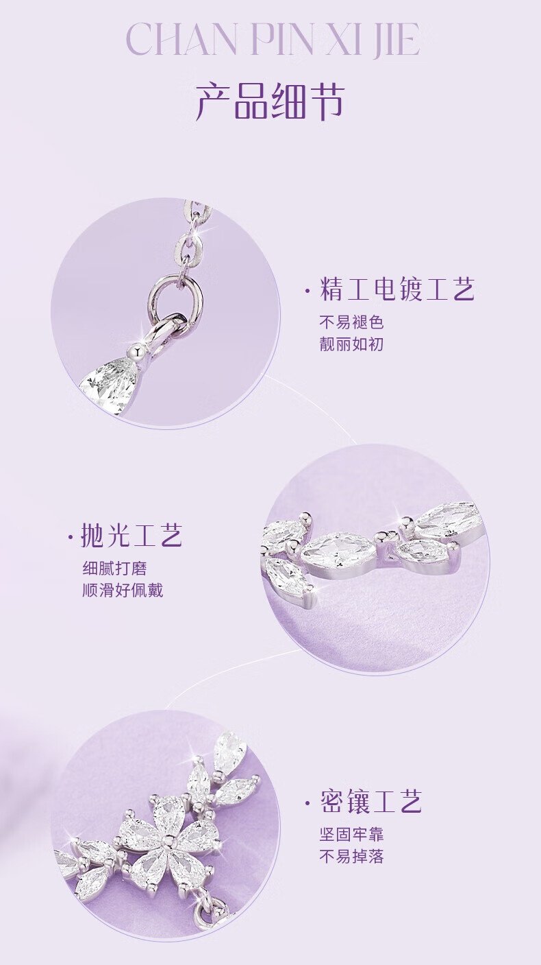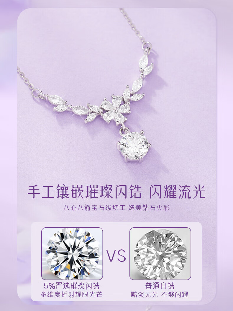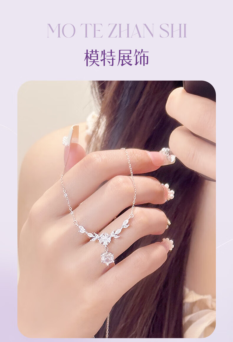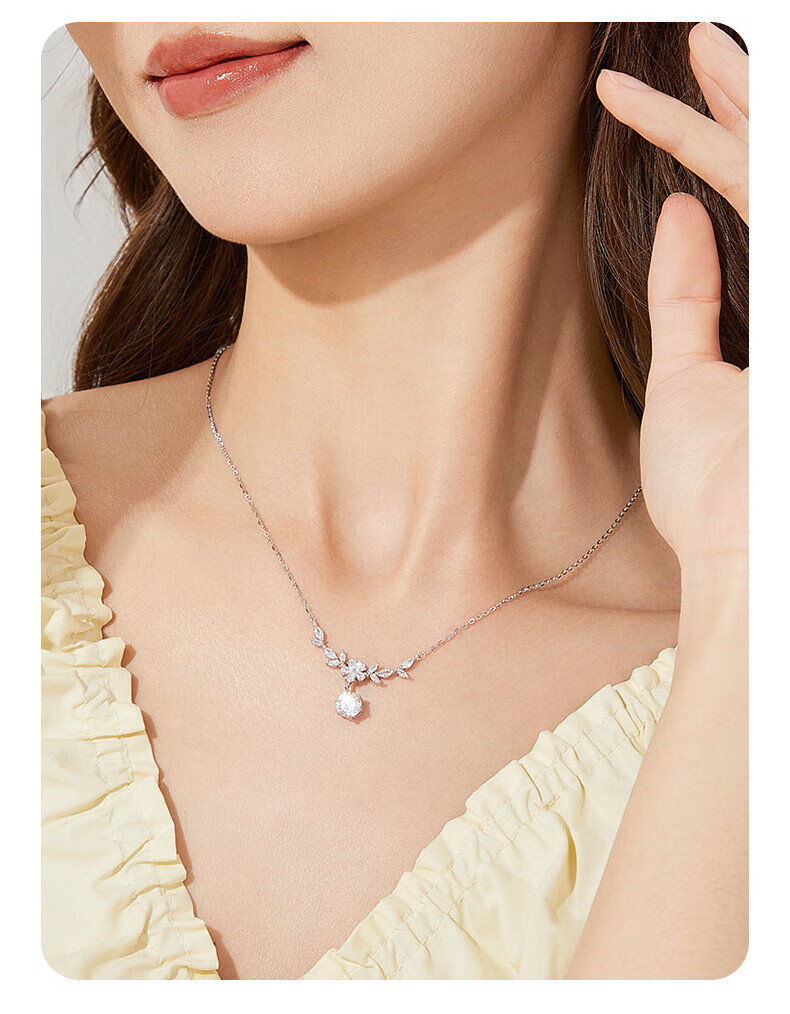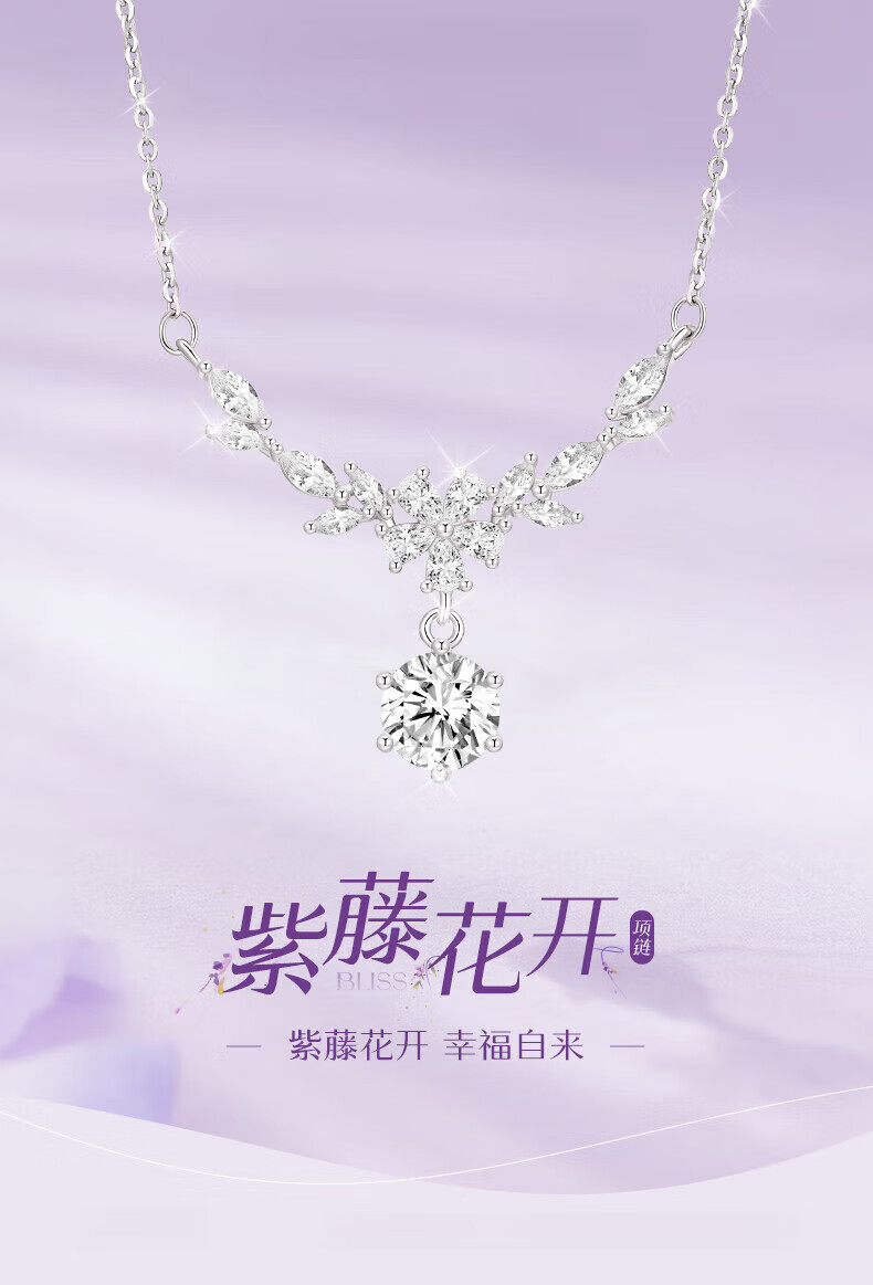 Ji Sifan Light Luxury Wisteria Flower Necklace Women's High-end Bracelet Valentine's Day Anniversary Birthday Gift for Wife and Girlfriend Wisteria Blossom Necklace - White Gold