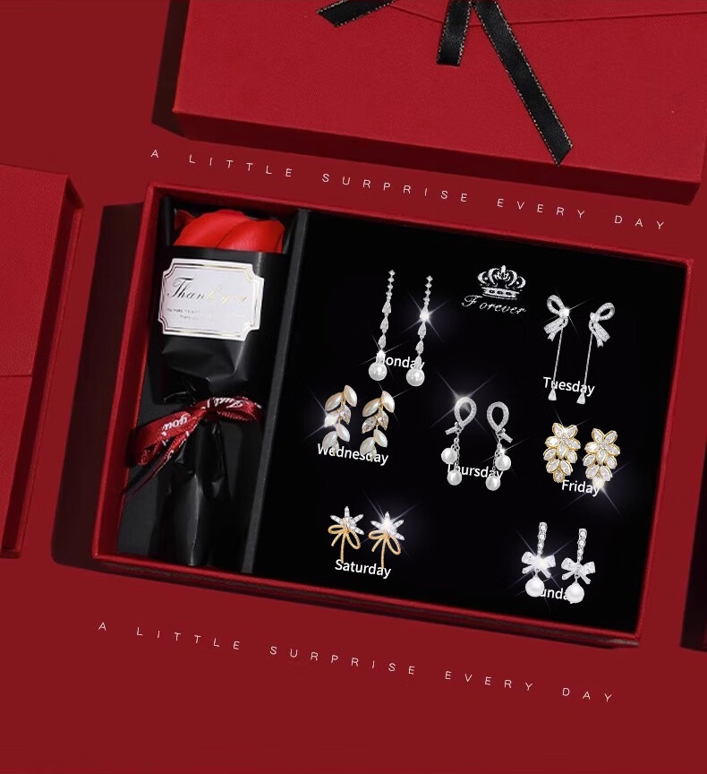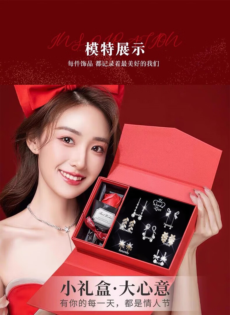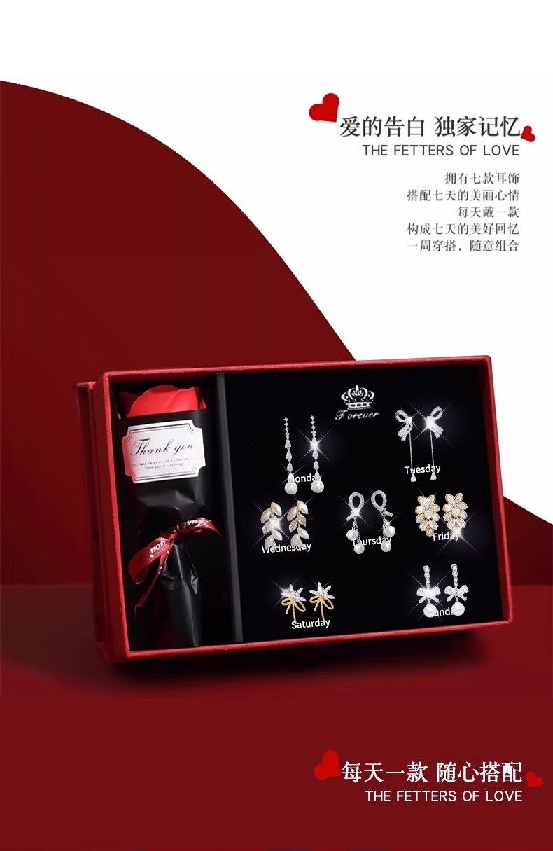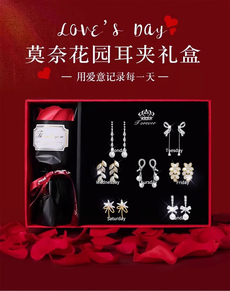 Jingli Jingda pierced ear clips for women without piercing for one week, ear bone clips, birthday gifts for women, exquisite, high-end and practical, lovers week ear clip set, rose gift box