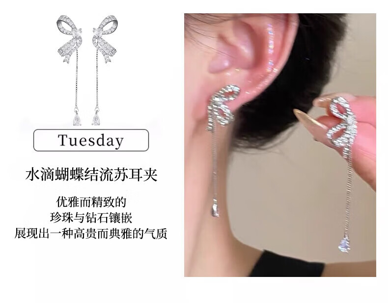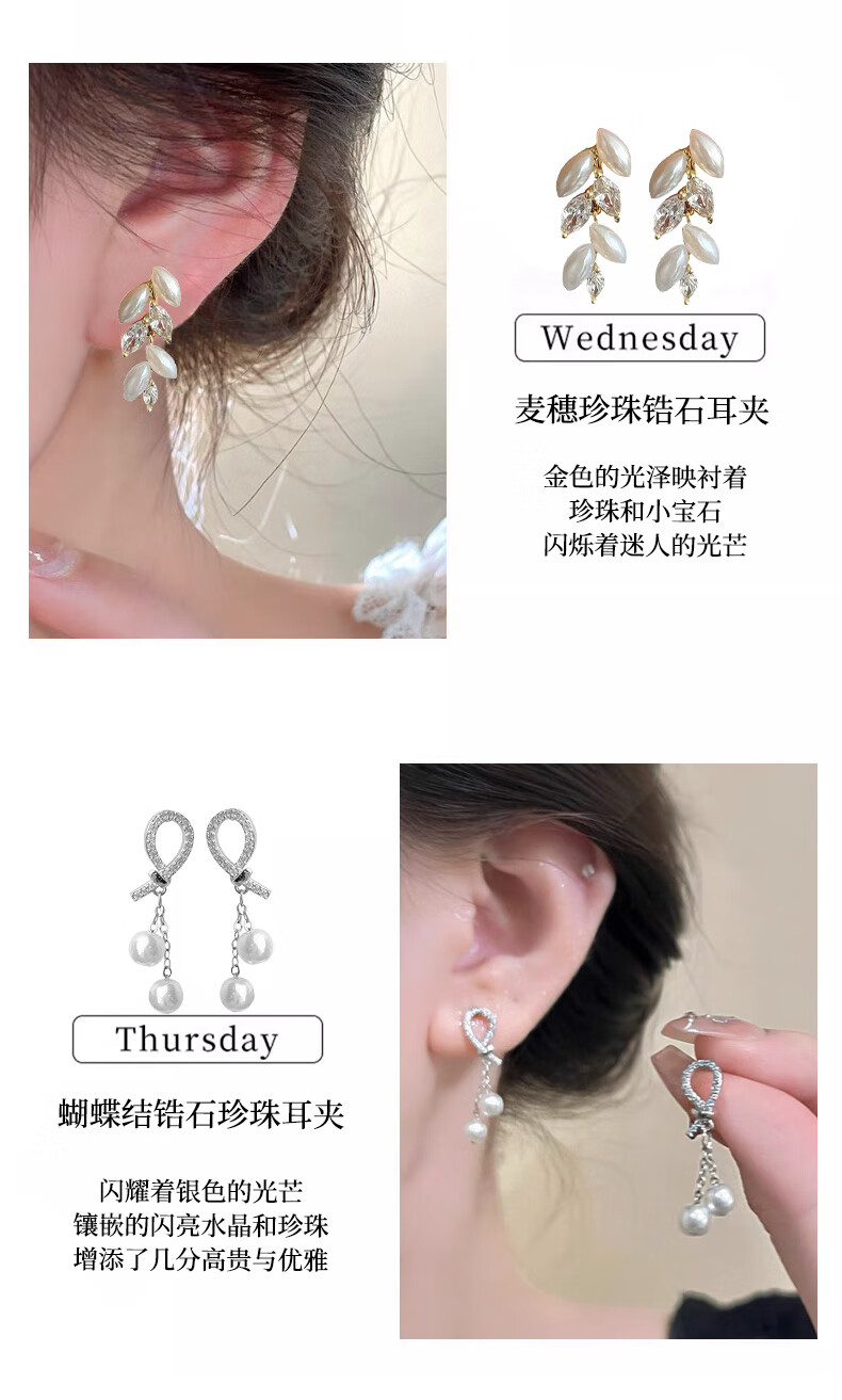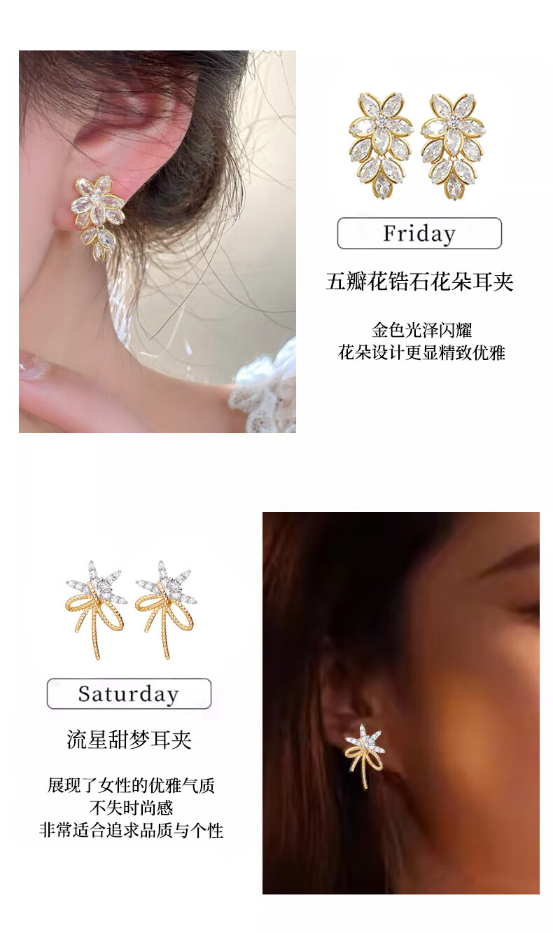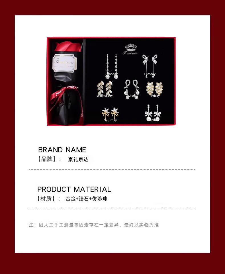 Jingli Jingda pierced ear clips for women without piercing for one week, ear bone clips, birthday gifts for women, exquisite, high-end and practical, lovers week ear clip set, rose gift box
