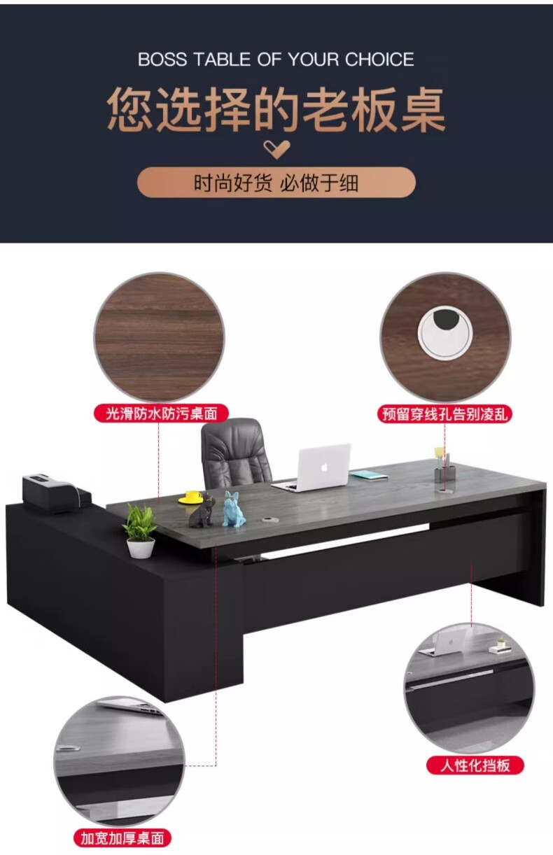 Tsukumachi desk boss desk simple modern manager desk and chair combination advanced single office executive desk with cabinet furniture 160*80cm+side cabinet gray oak