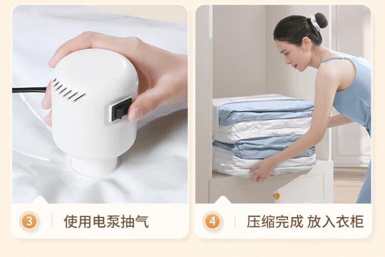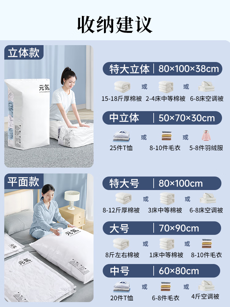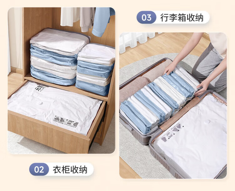 WCZ German vacuum compression bag storage bag, air-free clothes and quilts, special cotton quilts, down jackets, three-dimensional thickening, vitality style (extra thick style), 2 extra large three-dimensional + upgraded electric pump