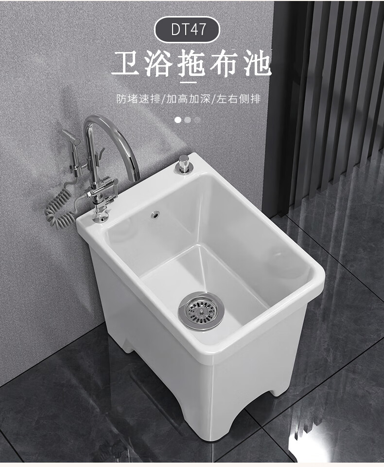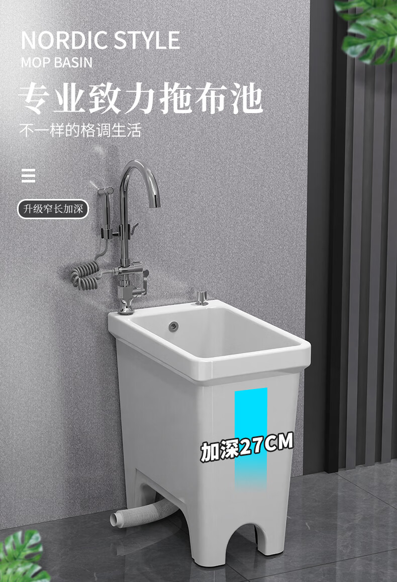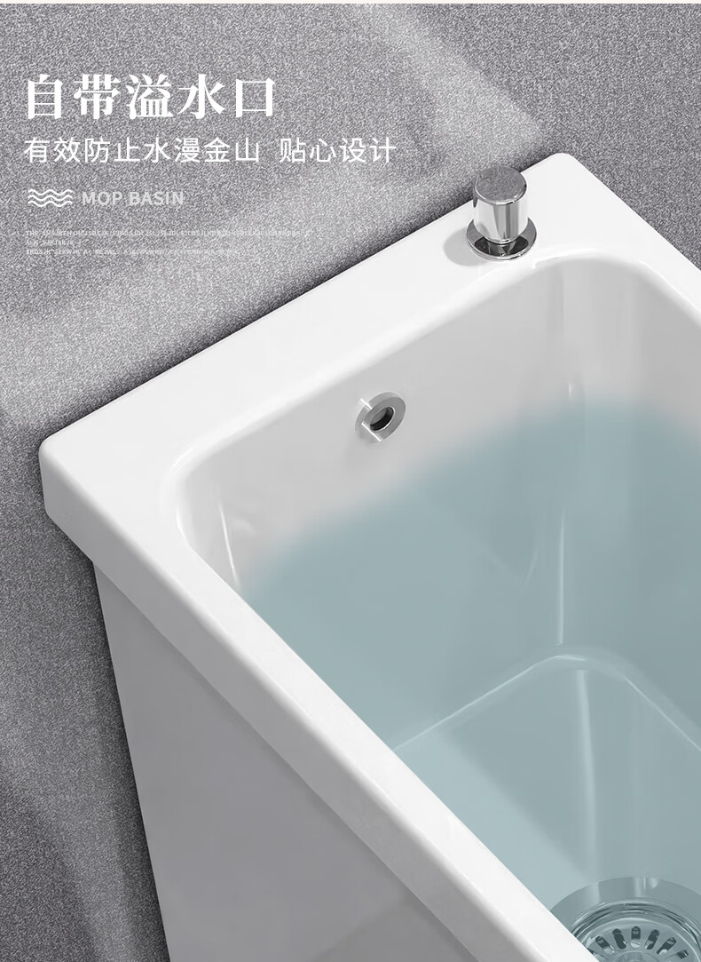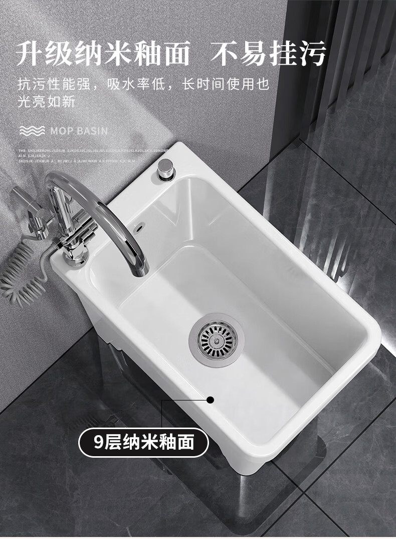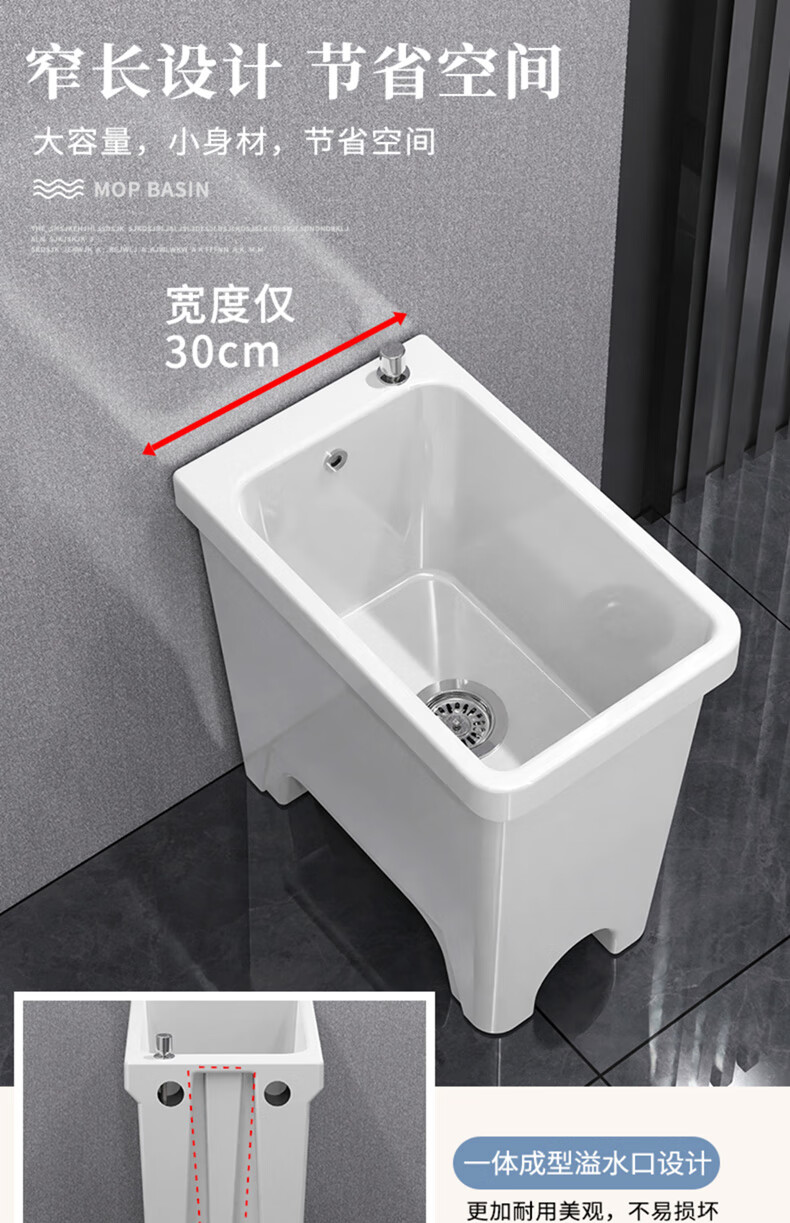 Yuruo DG FLIPS balcony mop pool narrow long bathroom wash mop pool heightened rectangular household deepening mop 30*50*46CM with hole model + sitting spray gun faucet