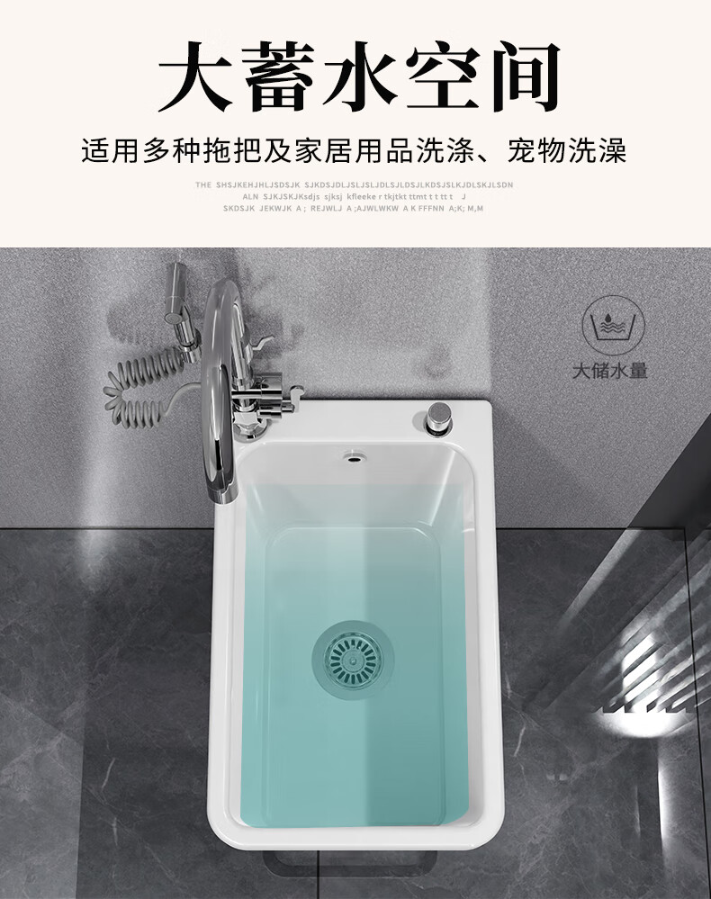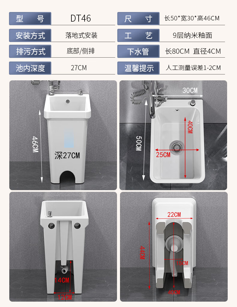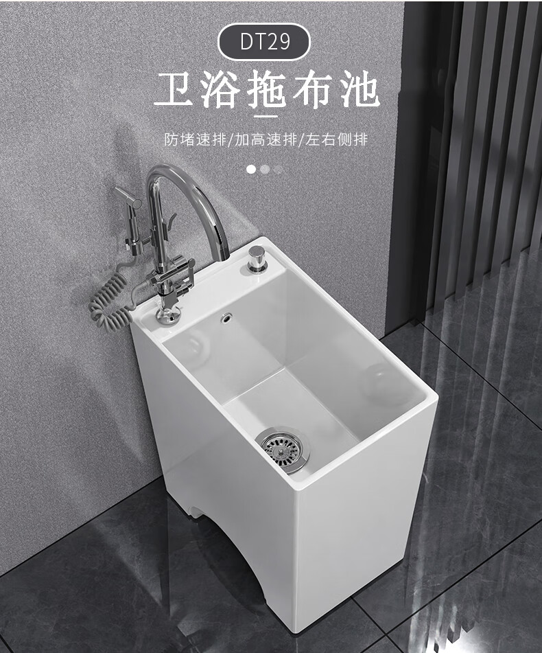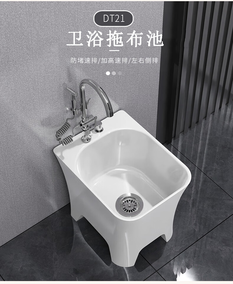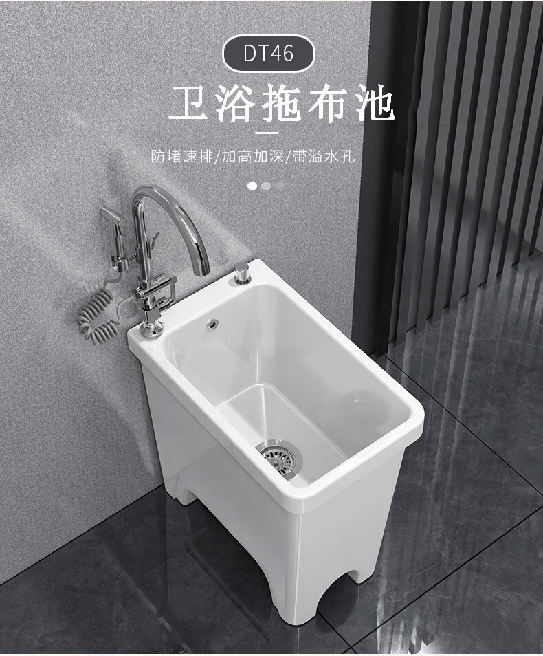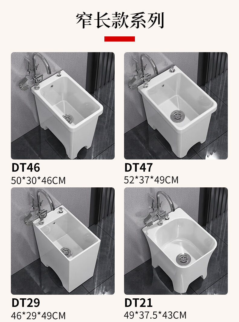 Yuruo DG FLIPS balcony mop pool narrow long bathroom wash mop pool heightened rectangular household deepening mop 30*50*46CM with hole model + sitting spray gun faucet