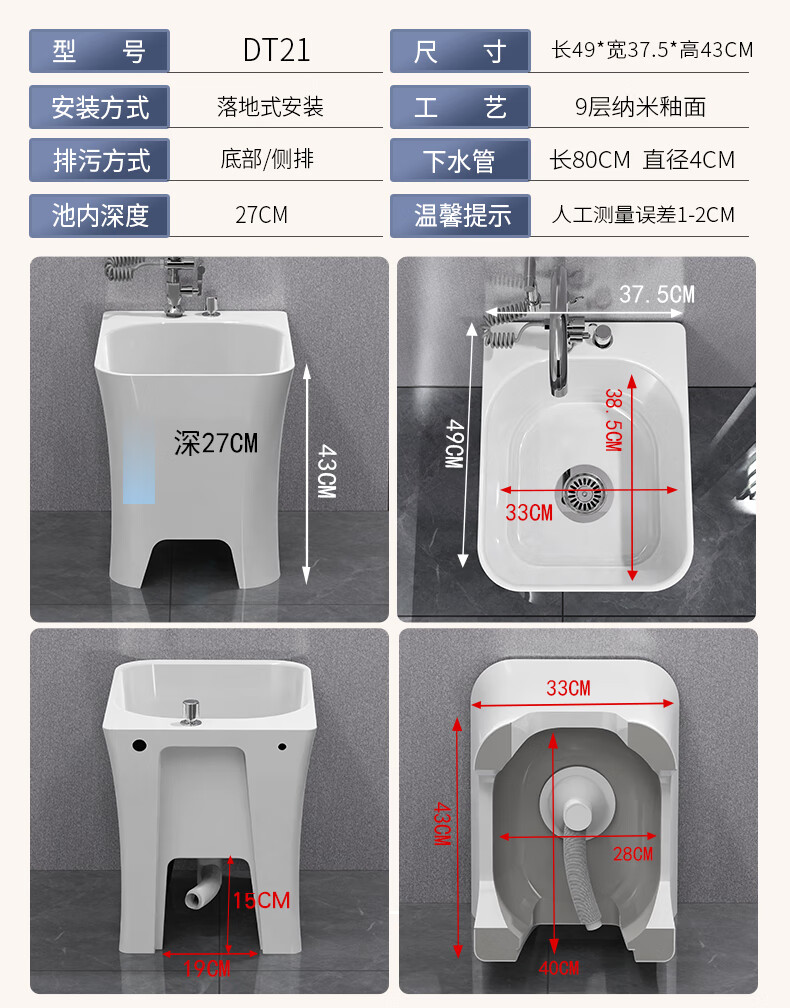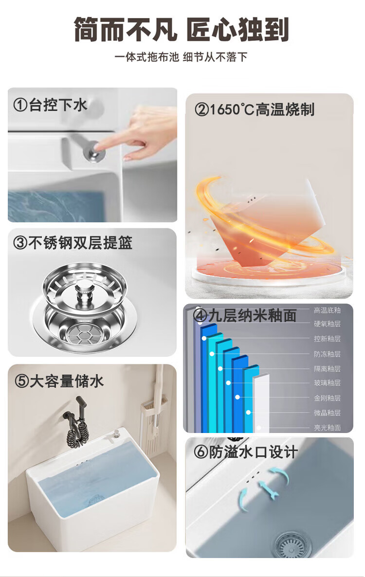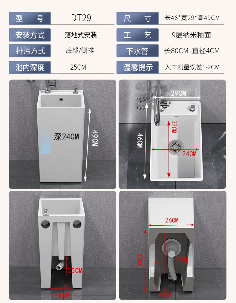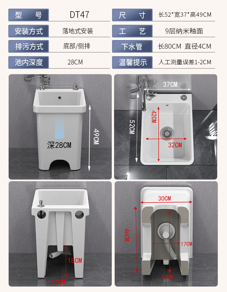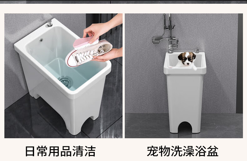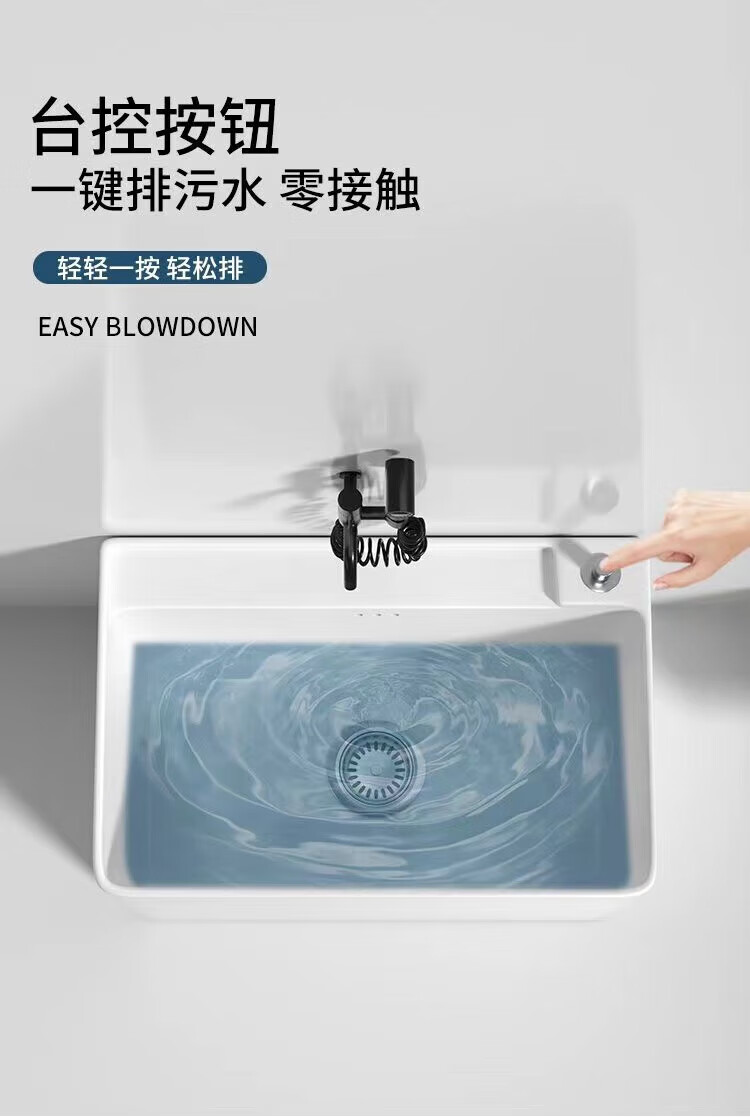 Yuruo DG FLIPS balcony mop pool narrow long bathroom wash mop pool heightened rectangular household deepening mop 30*50*46CM with hole model + sitting spray gun faucet