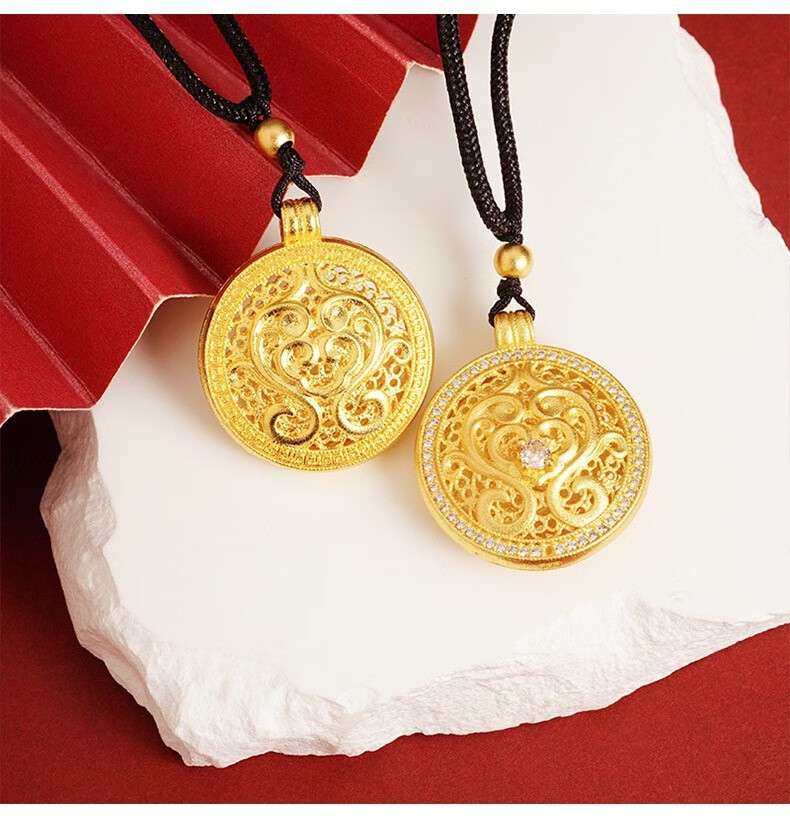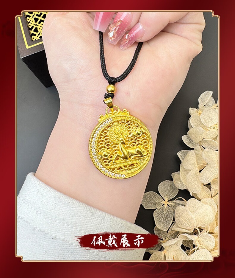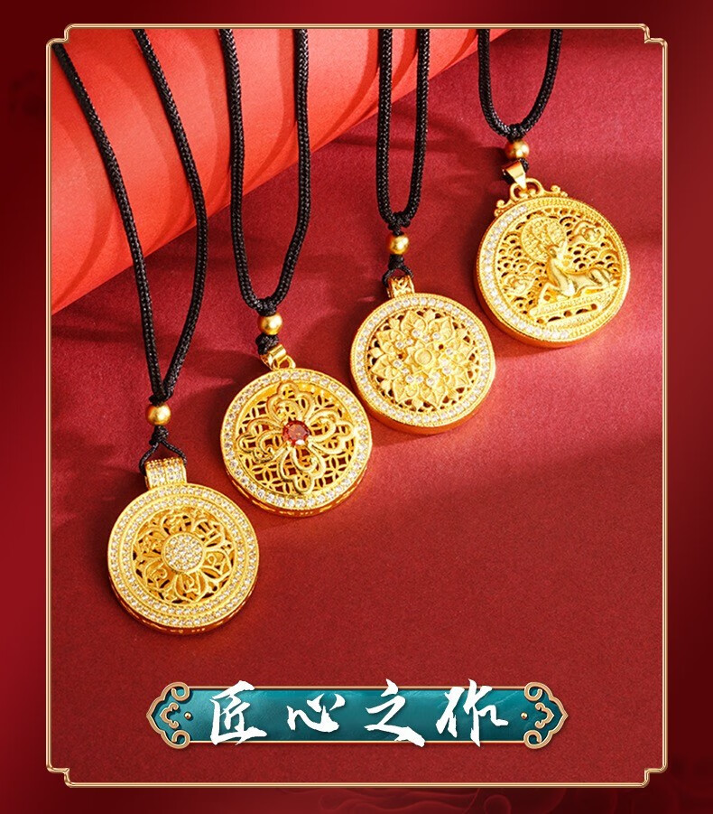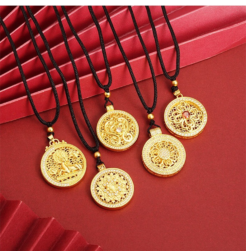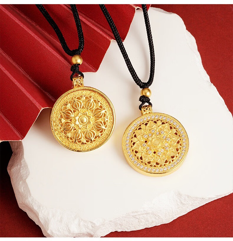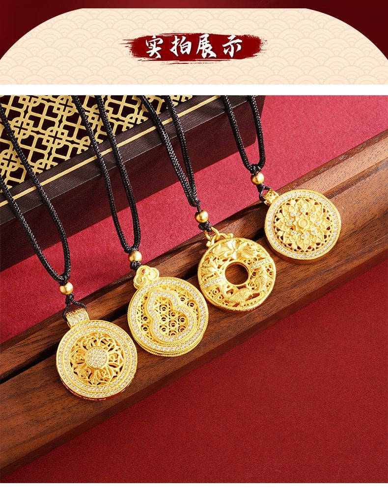 Ya Ge Vietnam Sand Gold Eight Treasures Compass Pendant Imitation Gold Women's Hollow Carved Round Necklace Will Not Fade for a Long Time No. 1 Hollow Luxurious Inlaid Necklace