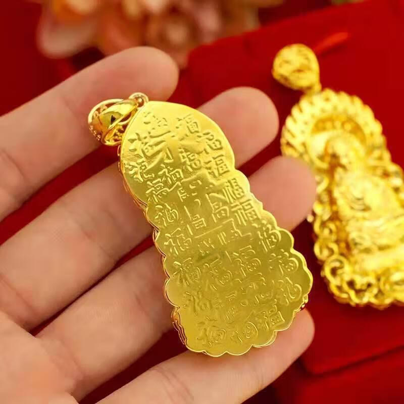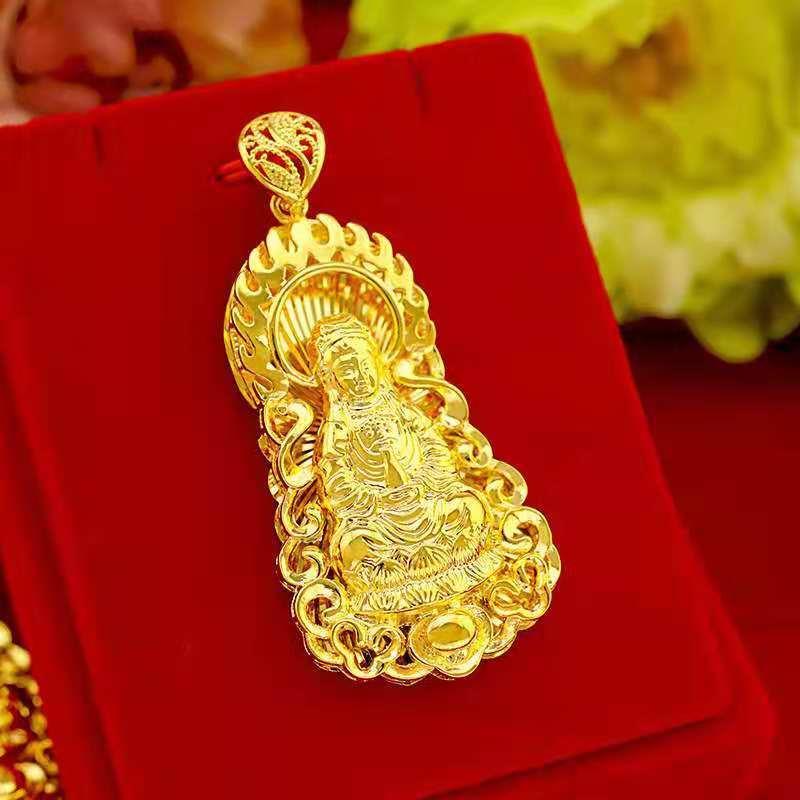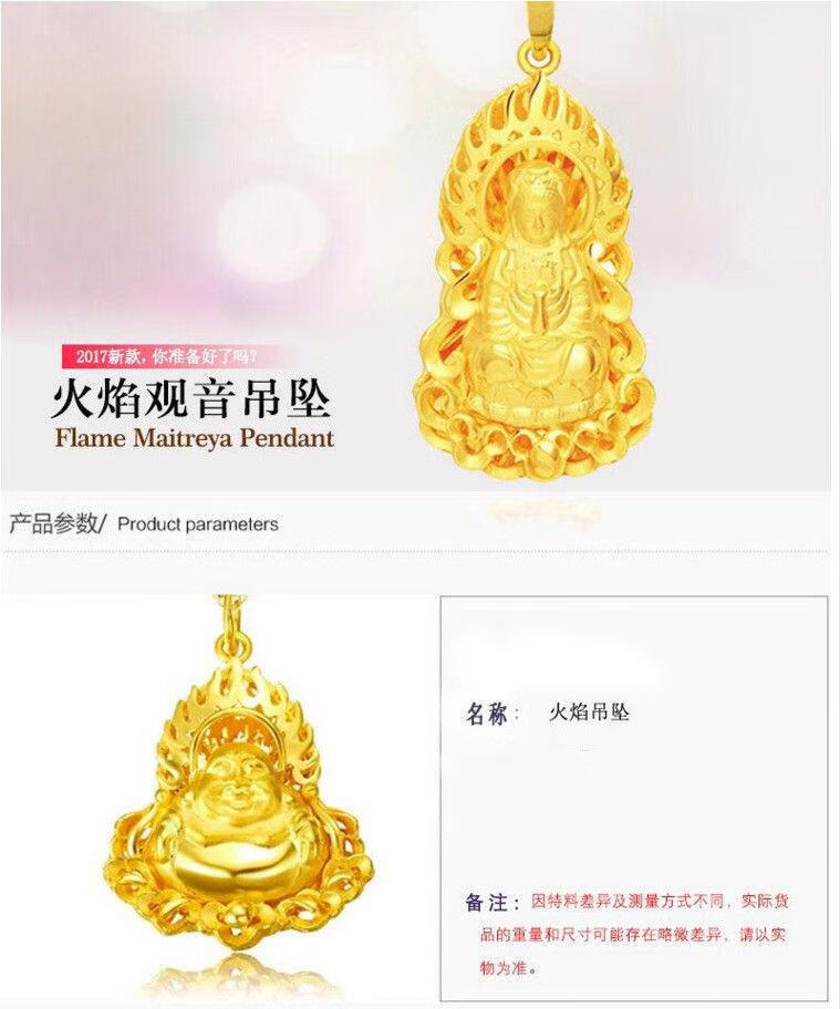 Yage Sand Gold Hollow Fire Maitreya Buddha Guanyin Pendant Real Men's Gold-plated Yellow Buddha Pendant Pure Vietnamese Sand Gold Pendant Small Guanyin Pendant About 7 Grams