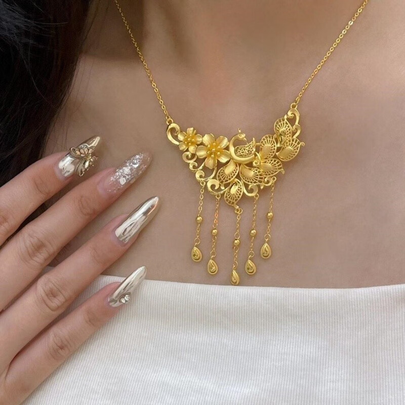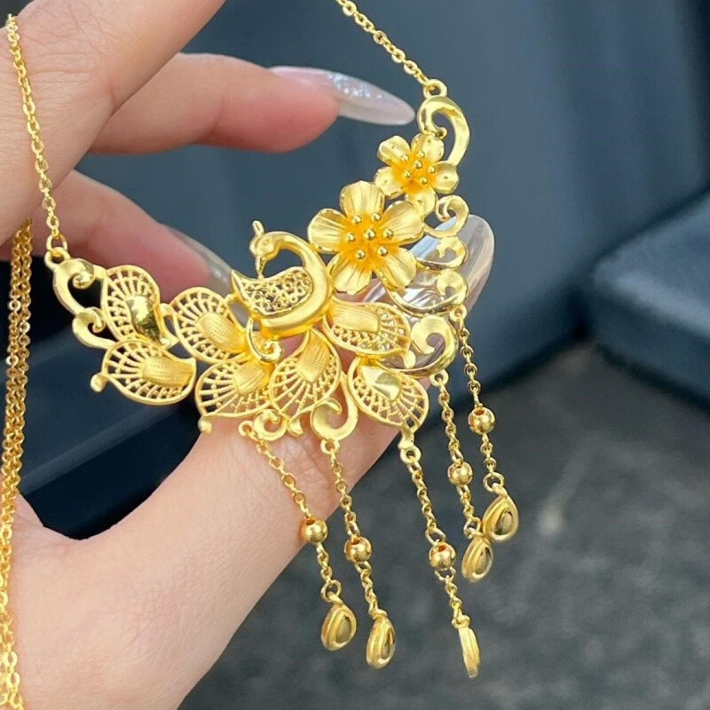 Feiyu Youfenglaiyi necklace 18k gold plated tassel pendant high-end light luxury wedding gift for women stunning peacock clavicle chain peacock necklace