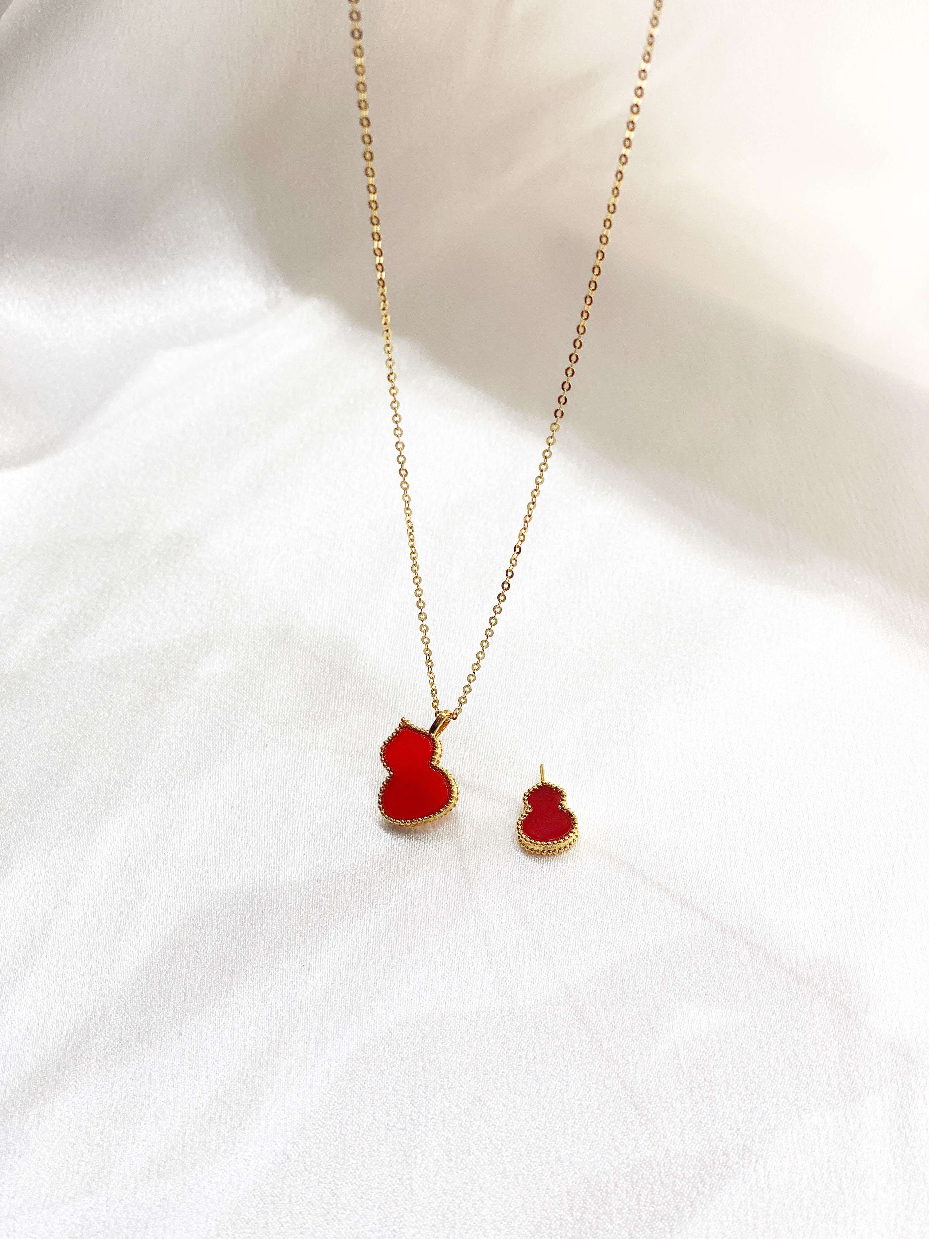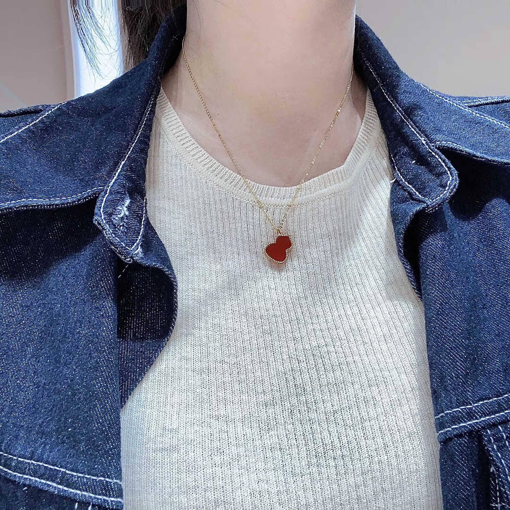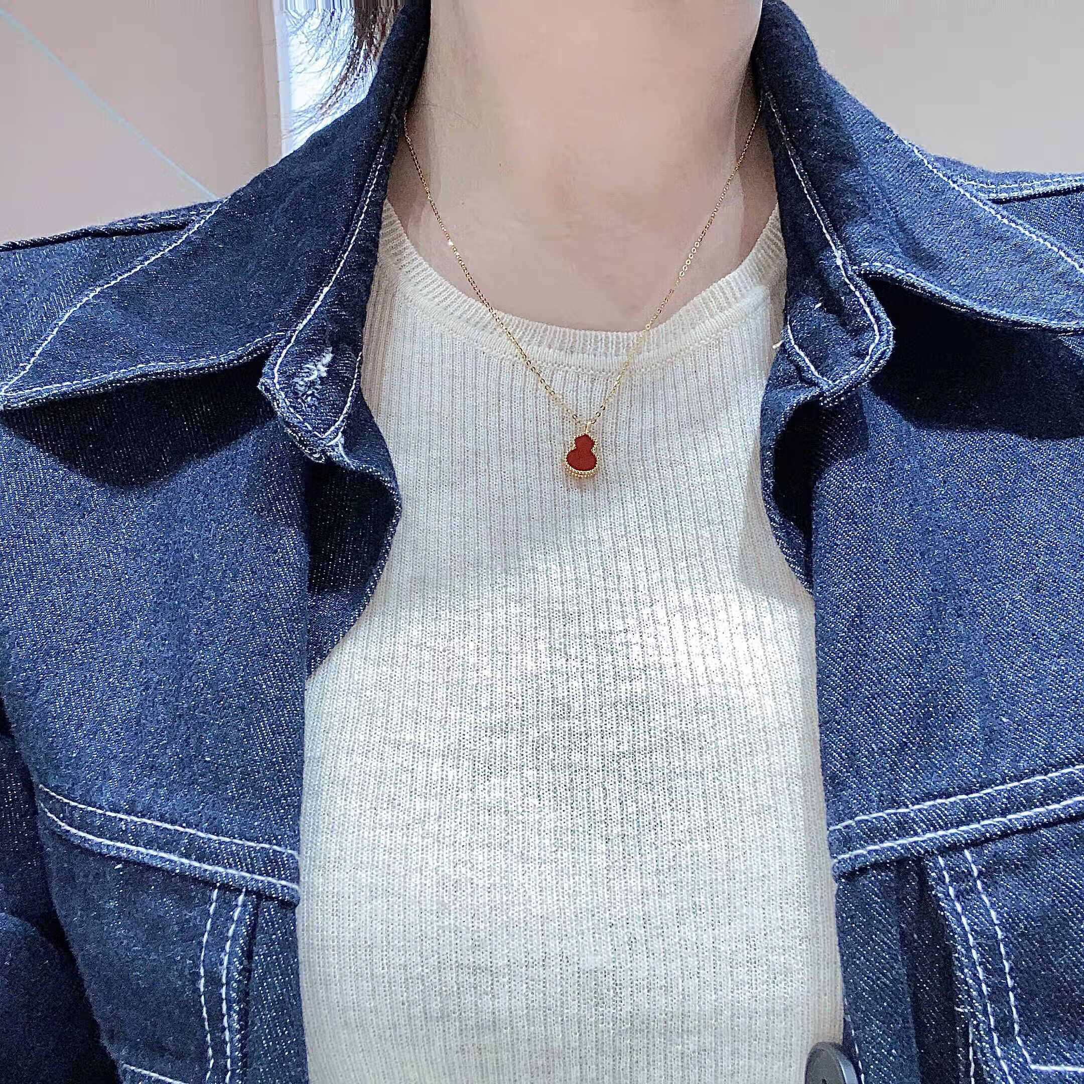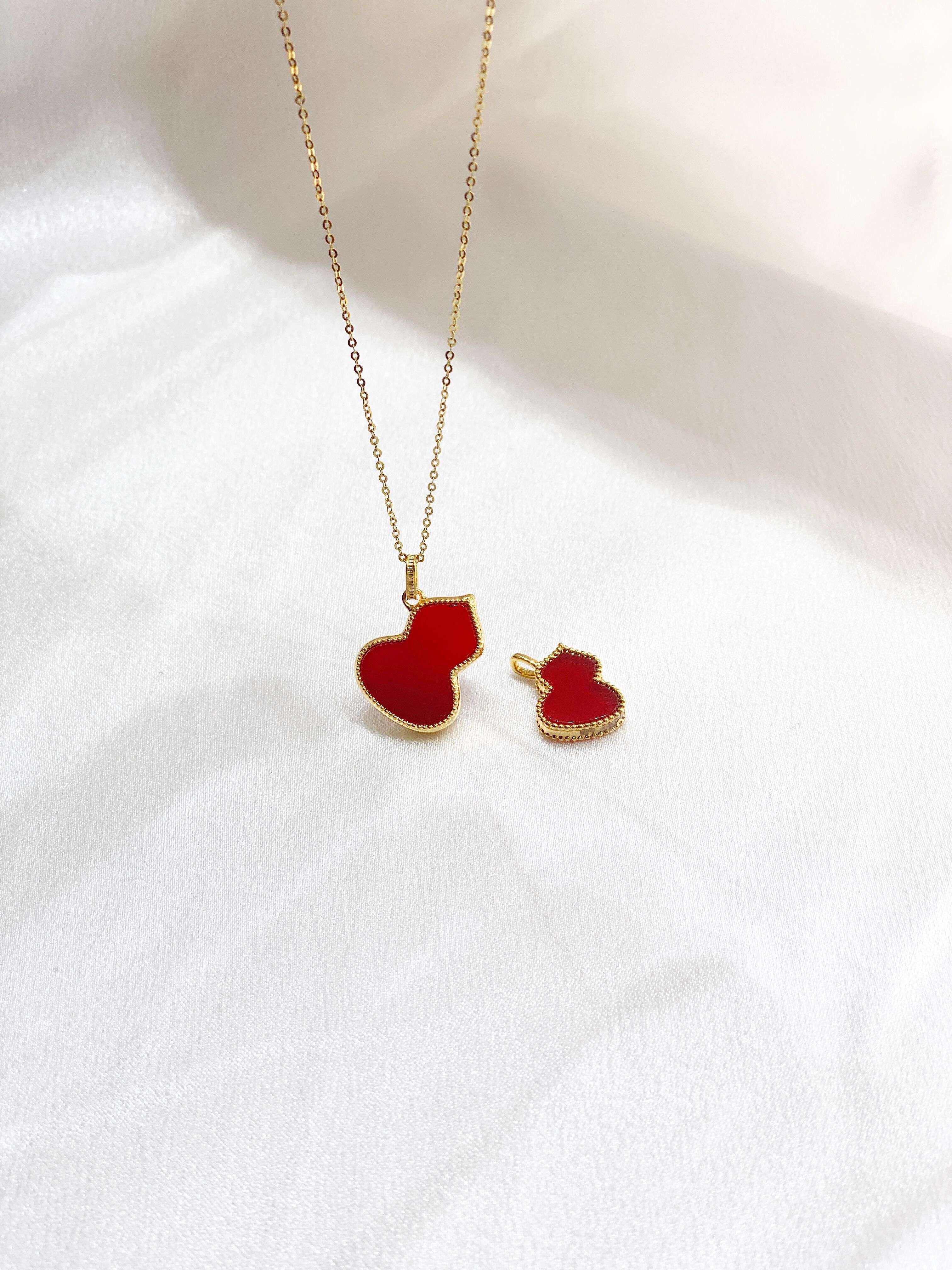 Feiyu 18K gold gourd pendant rose gold gold pendant au750 red agate clavicle chain set chain for women gift 18K rose gold (single pendant) small red agate