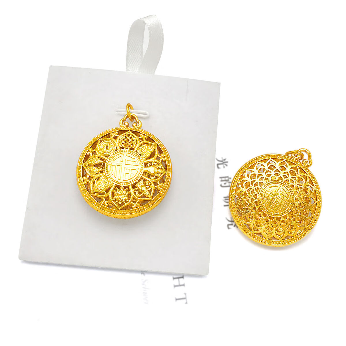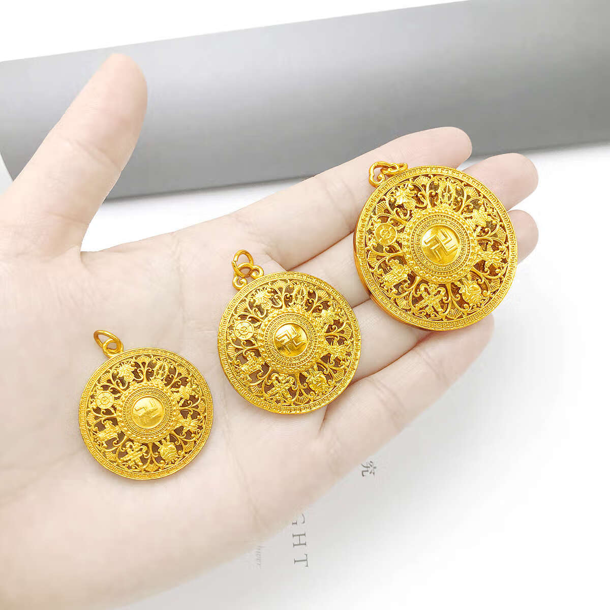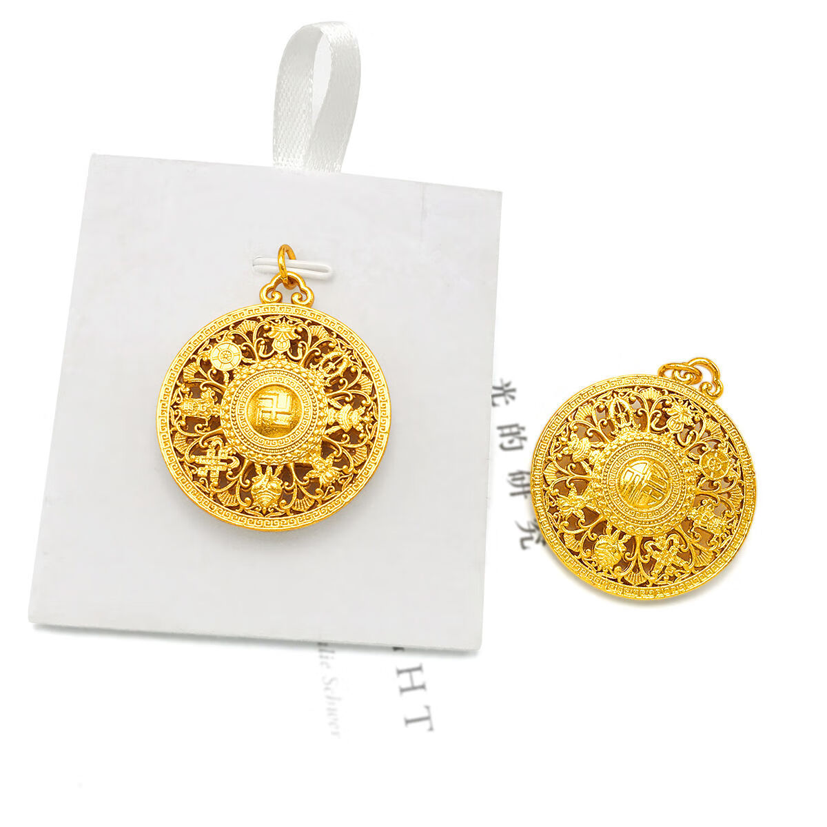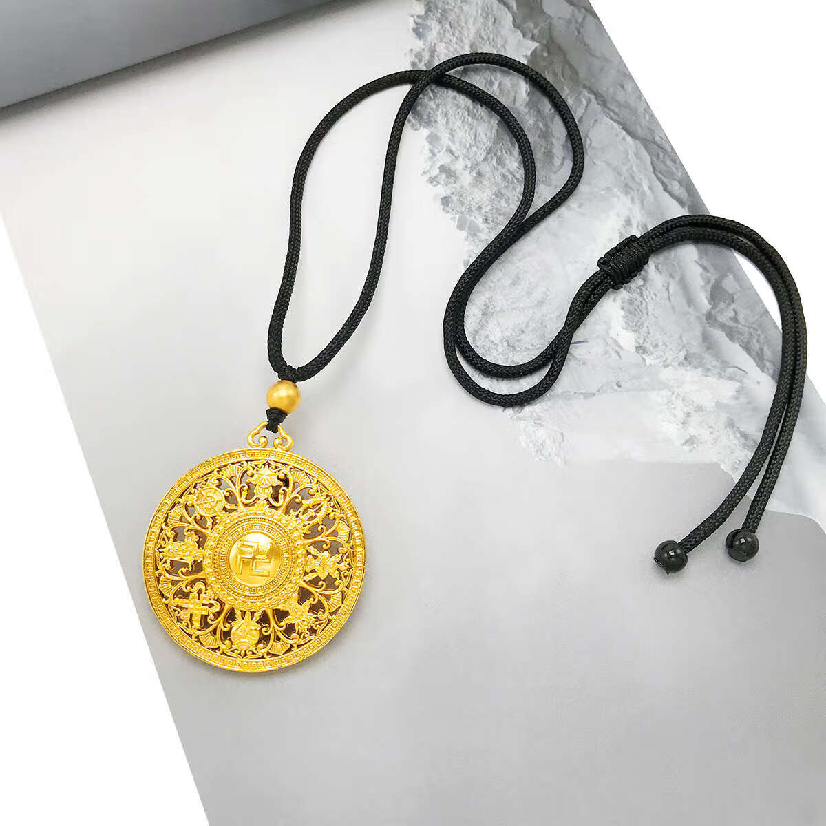 Ya Ge Vietnam Sand Gold Round Pendant Women's Gold-plated Eight Treasures Blessing Necklace Sweater Chain Pendant Men's Gold-Plated Compass Peace Buckle Small Round Head Ten Thousand Words Eight Treasures Blessings Approximately 2.97cm8g