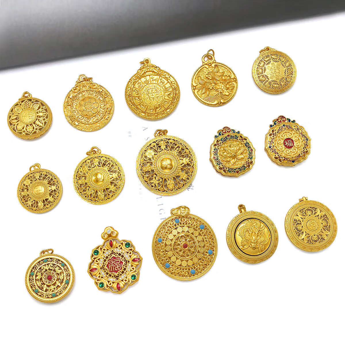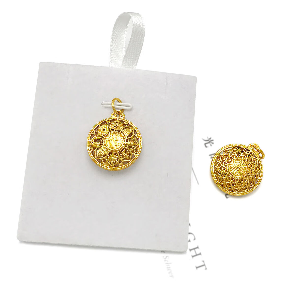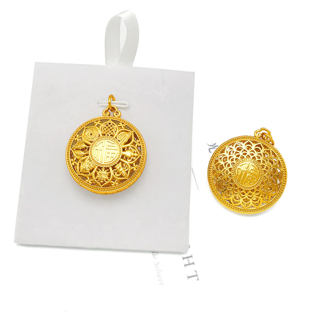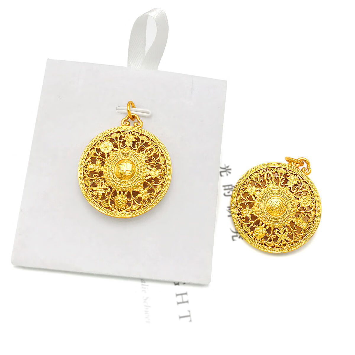 Ya Ge Vietnam Sand Gold Round Pendant Women's Gold-plated Eight Treasures Blessing Necklace Sweater Chain Pendant Men's Gold-Plated Compass Peace Buckle Small Round Head Ten Thousand Words Eight Treasures Blessings Approximately 2.97cm8g