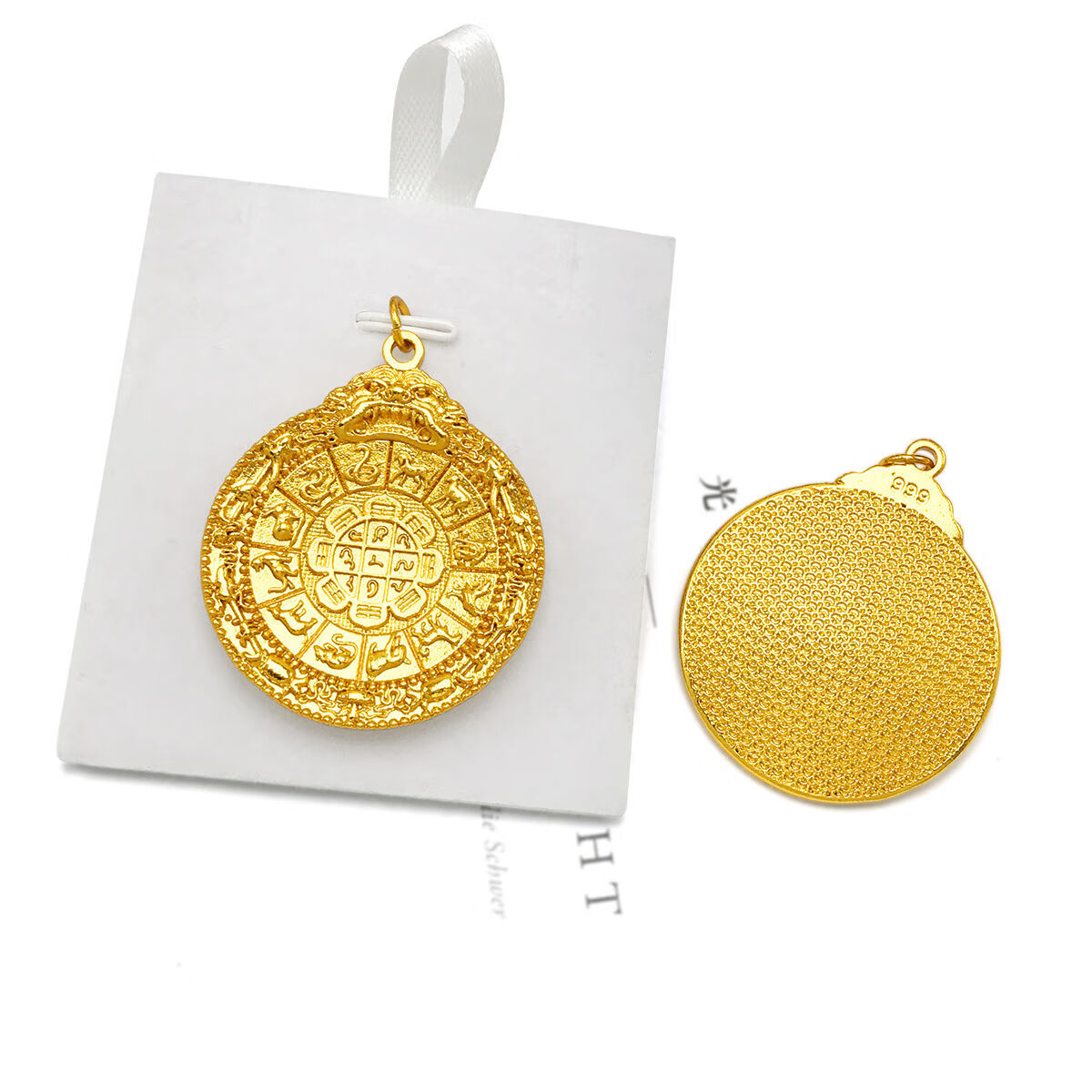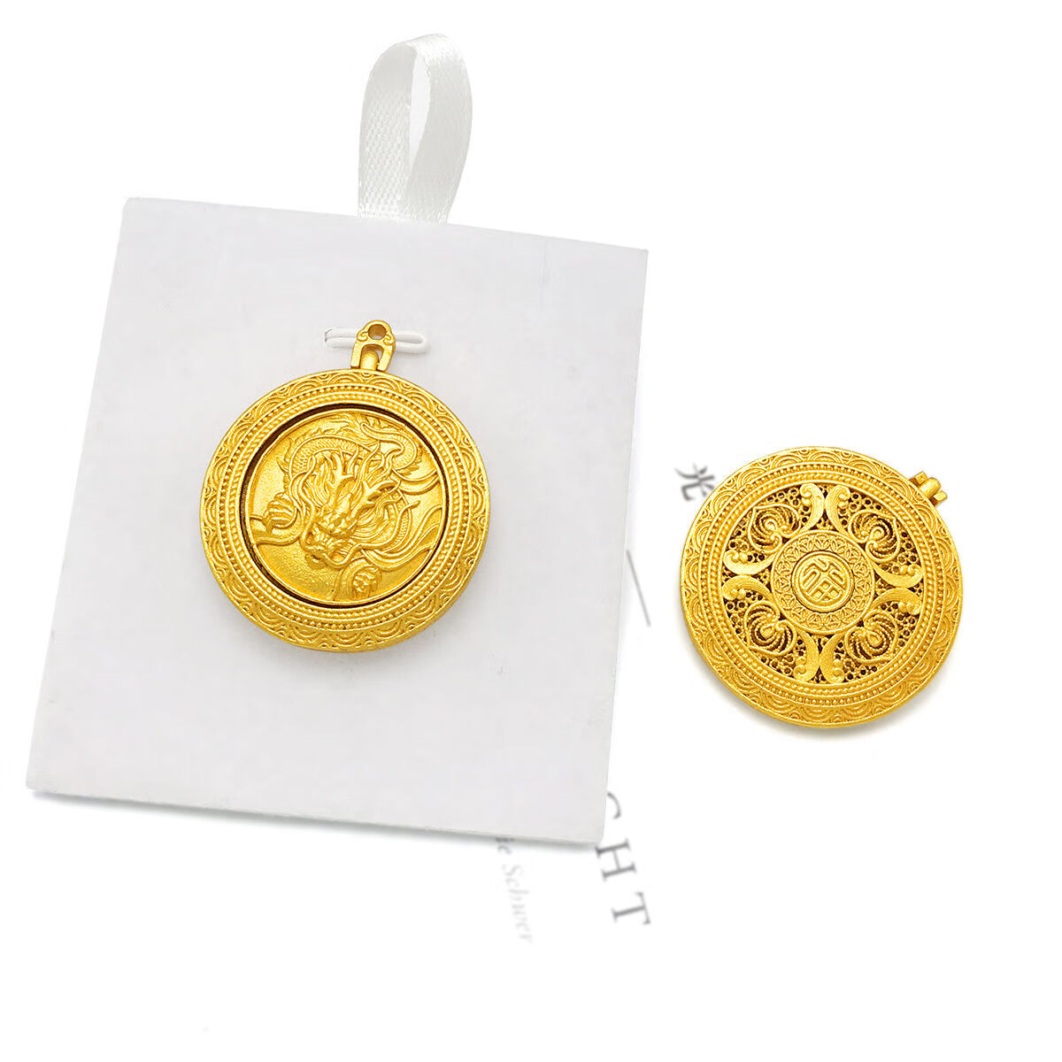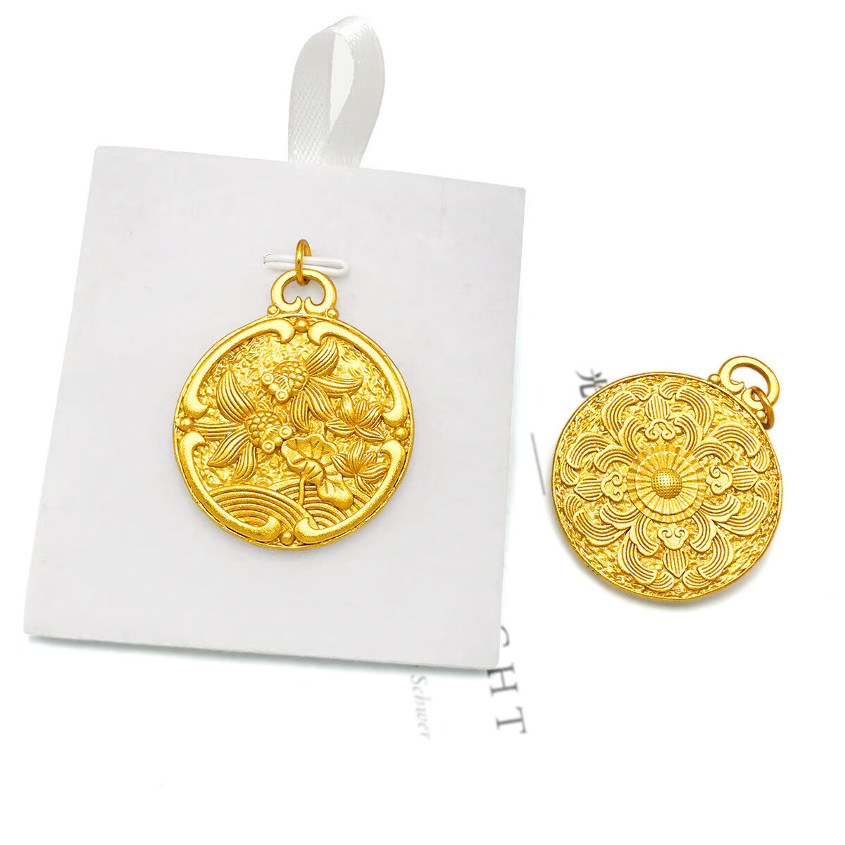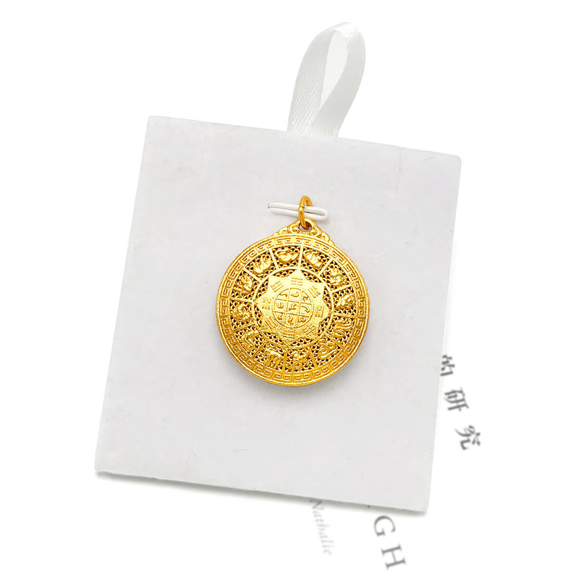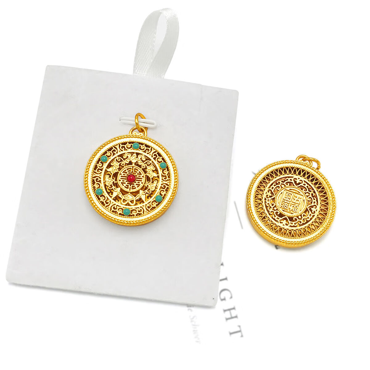 Ya Ge Vietnam Sand Gold Round Pendant Women's Gold-plated Eight Treasures Blessing Necklace Sweater Chain Pendant Men's Gold-Plated Compass Peace Buckle Small Round Head Ten Thousand Words Eight Treasures Blessings Approximately 2.97cm8g