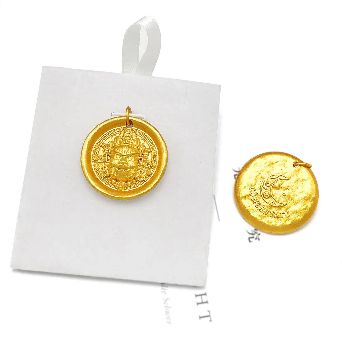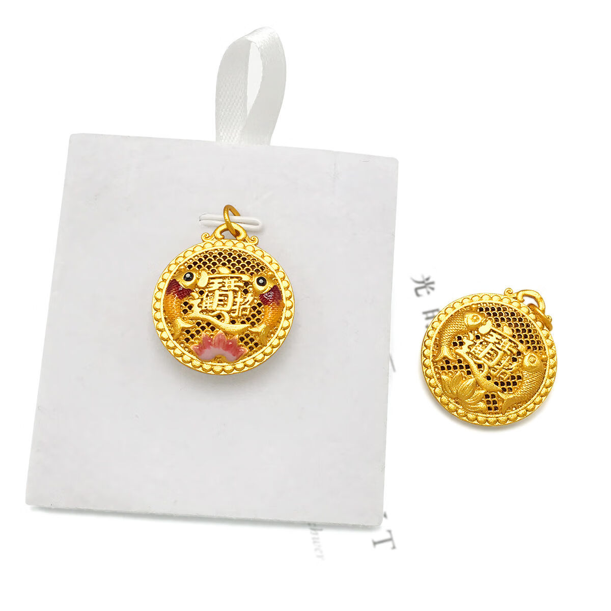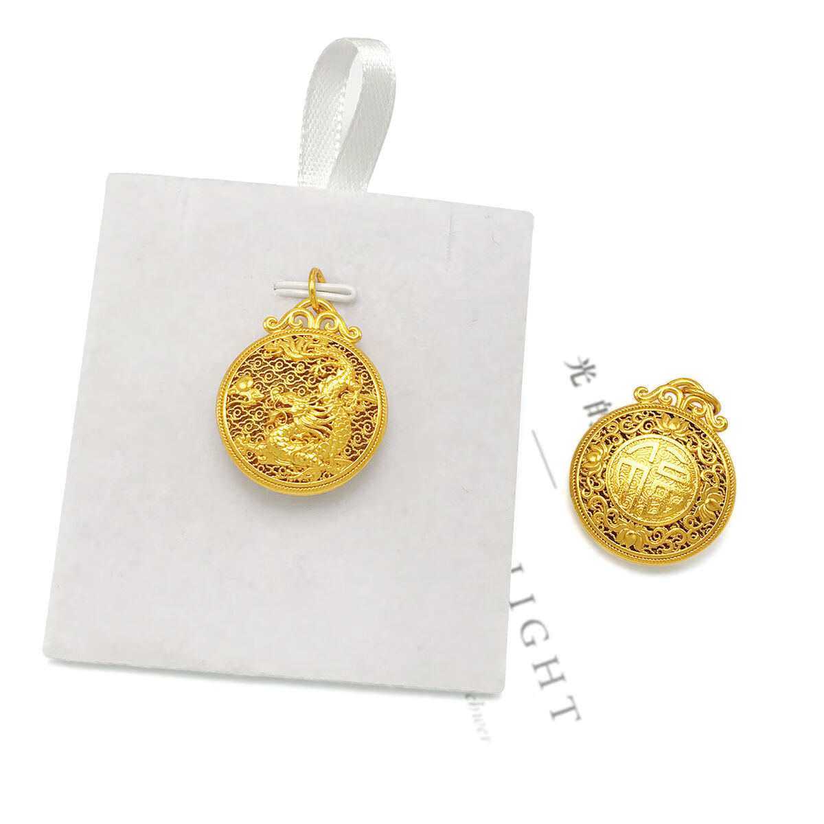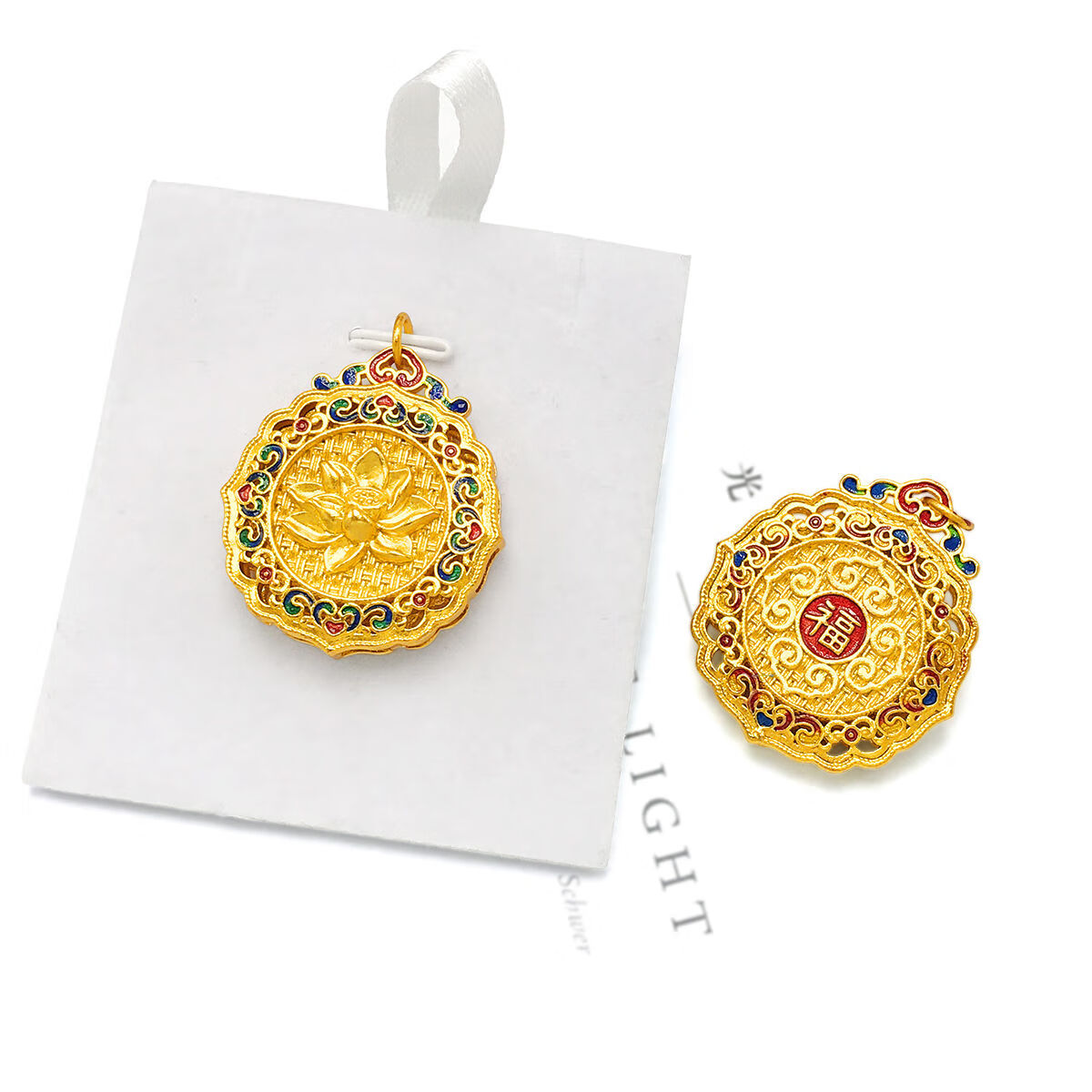 Ya Ge Vietnam Sand Gold Round Pendant Women's Gold-plated Eight Treasures Blessing Necklace Sweater Chain Pendant Men's Gold-Plated Compass Peace Buckle Small Round Head Ten Thousand Words Eight Treasures Blessings Approximately 2.97cm8g