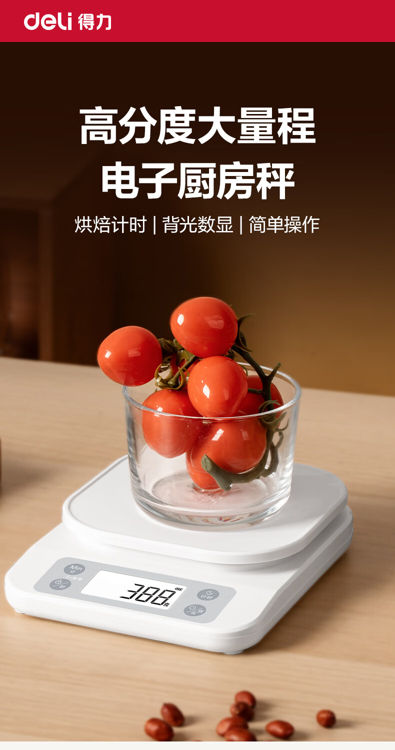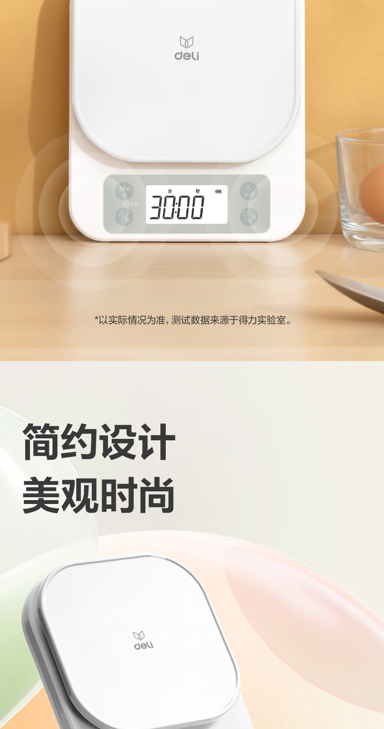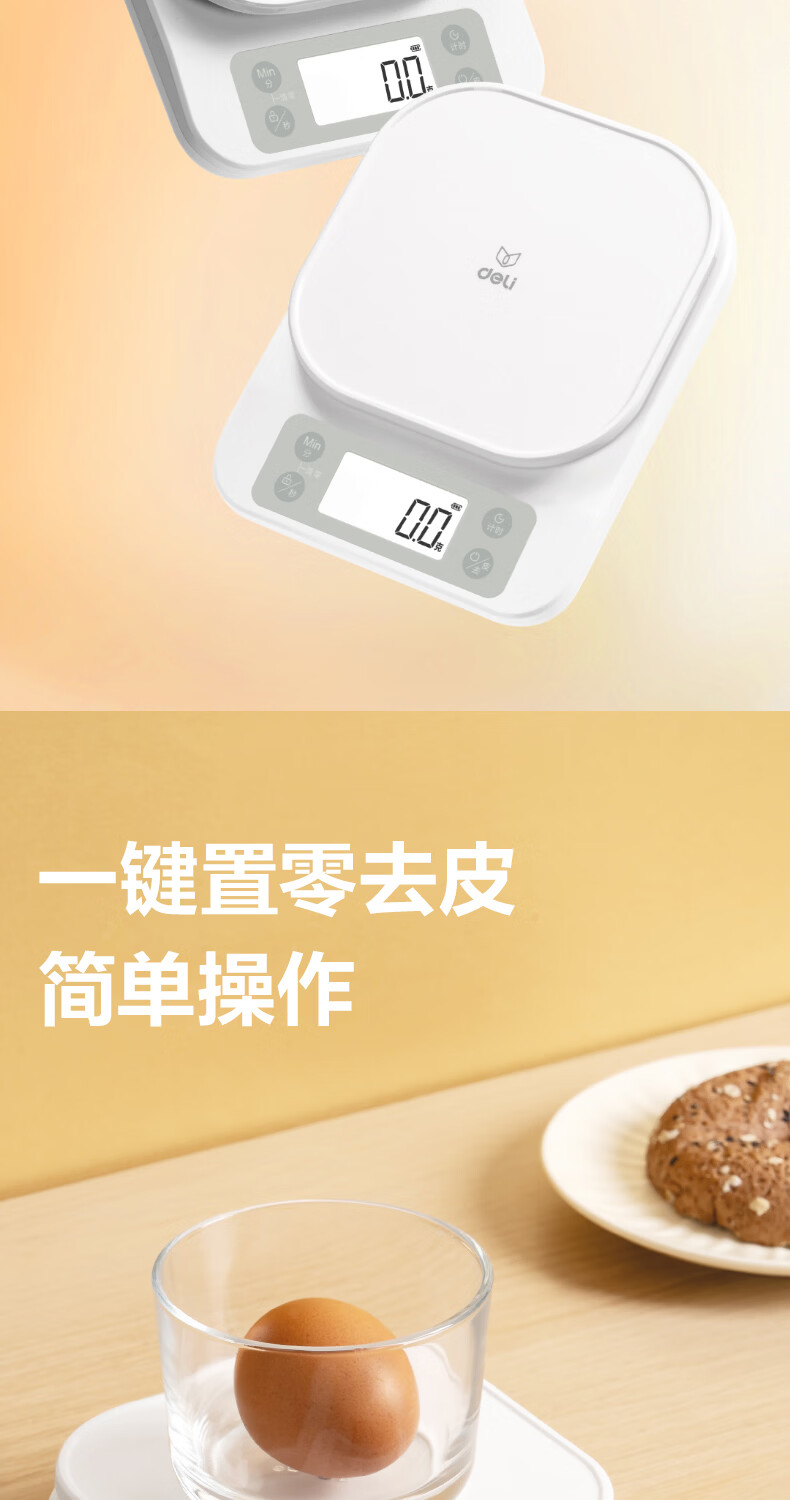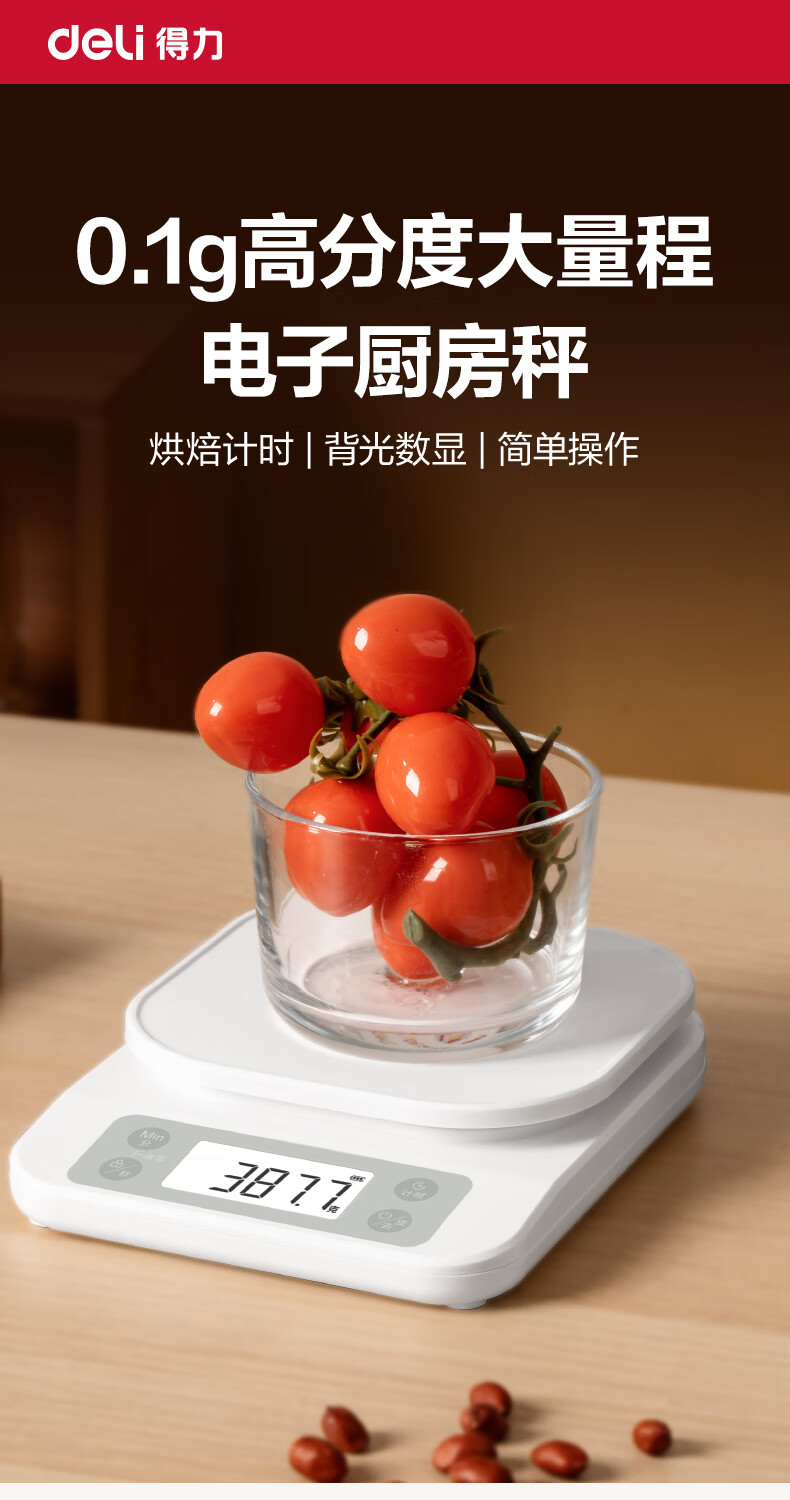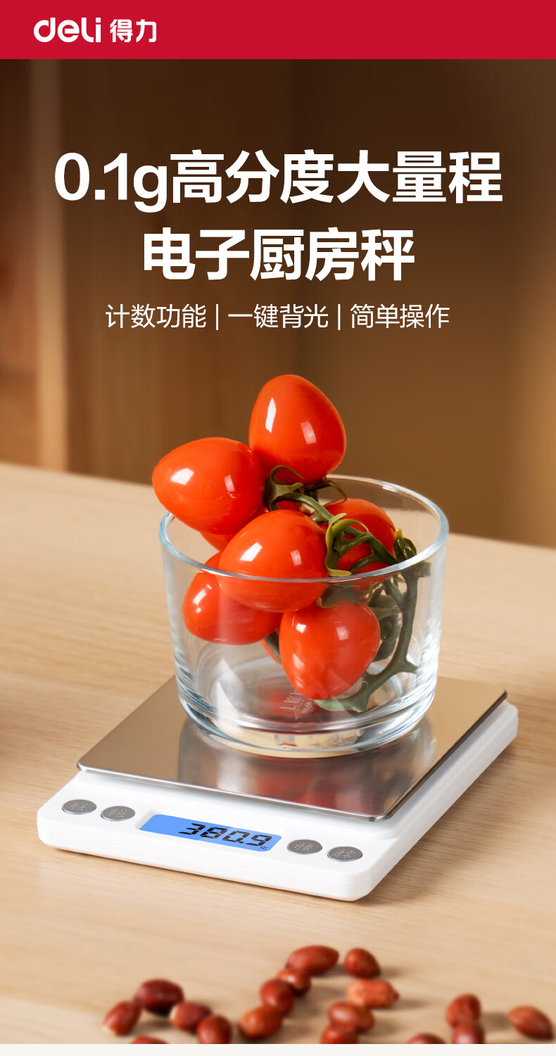 Deli high-precision electronic scale kitchen scale baking scale household scale precision weighing tool food scale new model high-precision white 3kg 0.1g metal scale surface