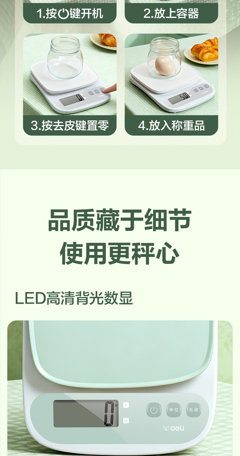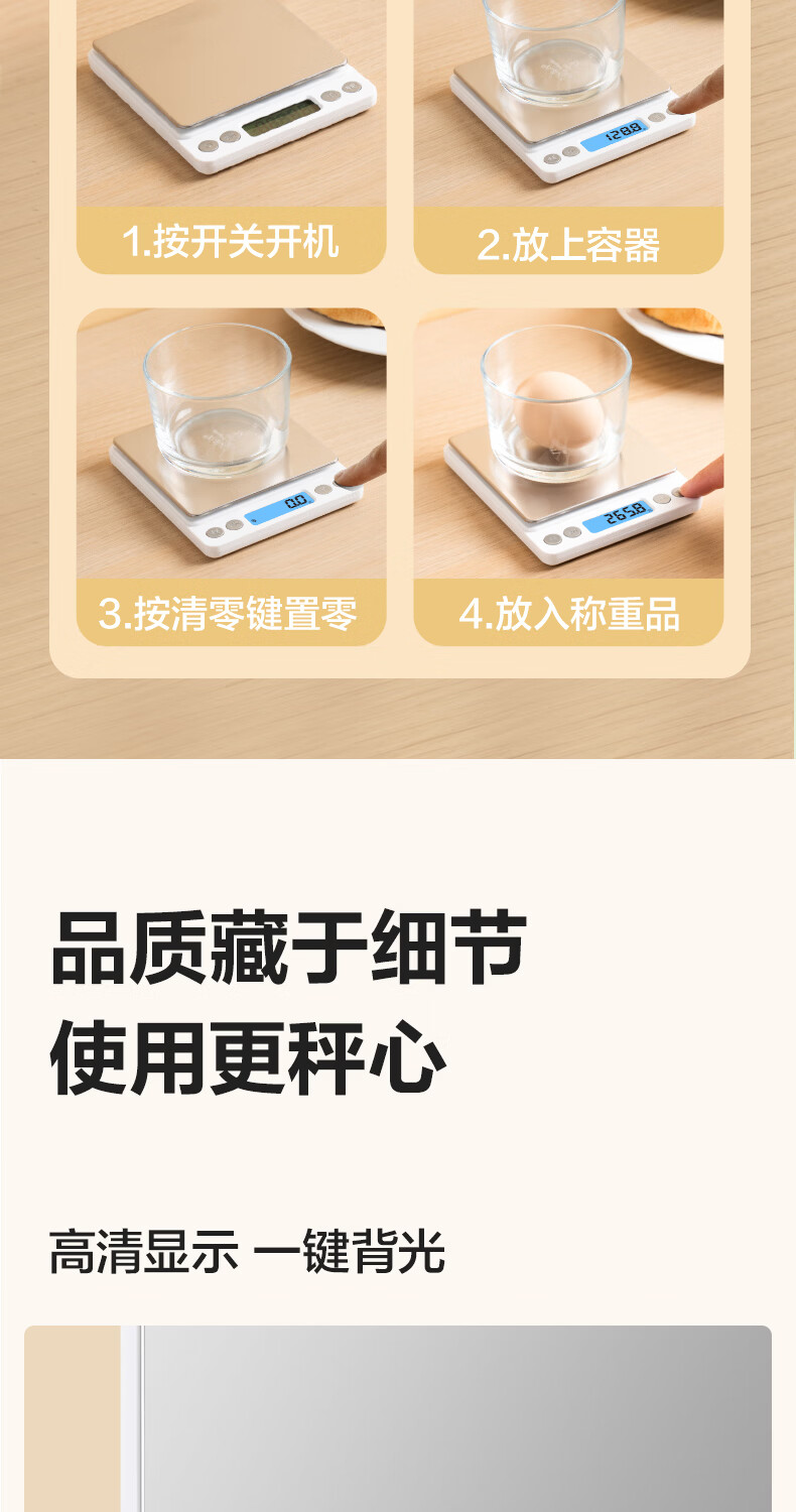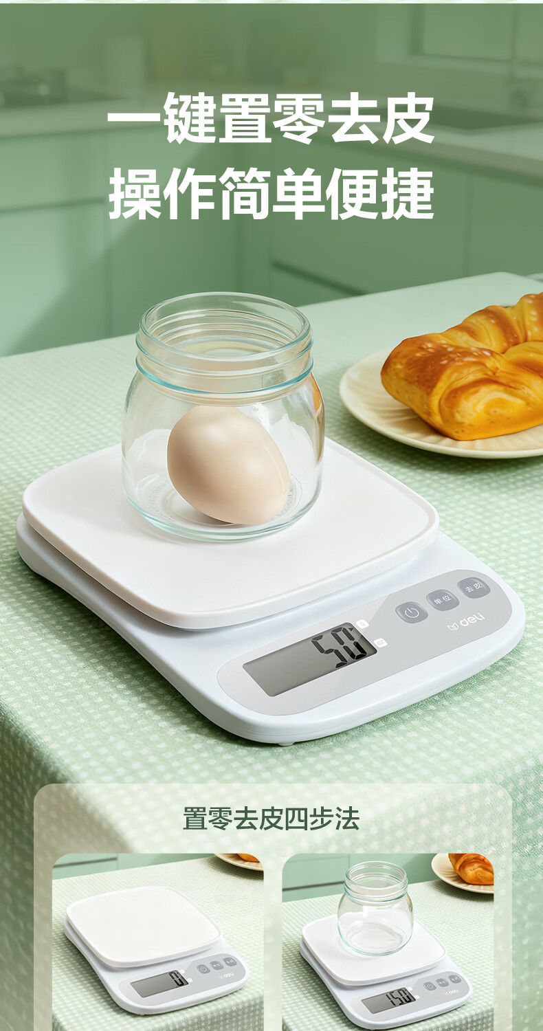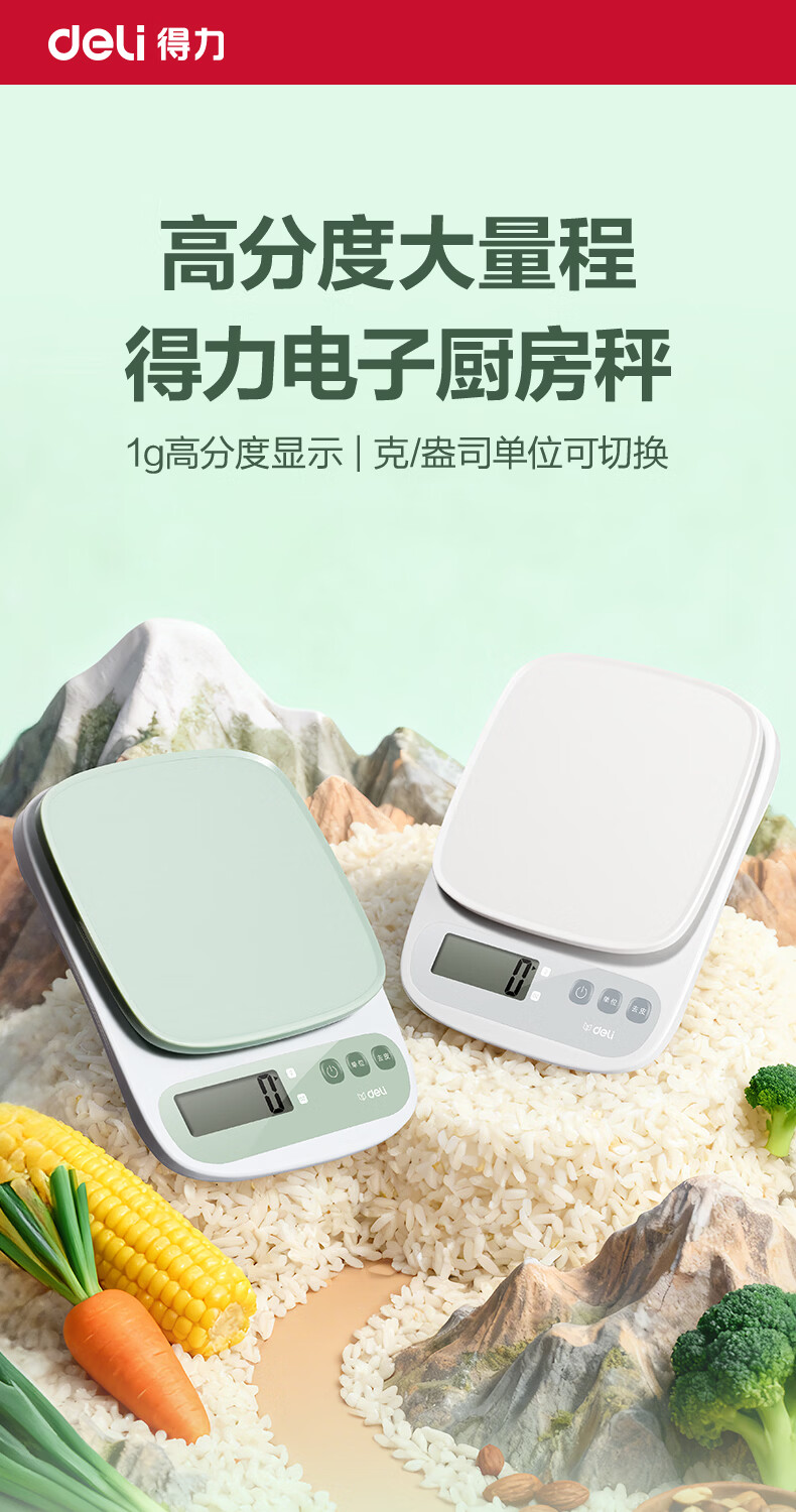Deli high-precision electronic scale kitchen scale baking scale household scale precision weighing tool food scale new model high-precision white 3kg 0.1g metal scale surface