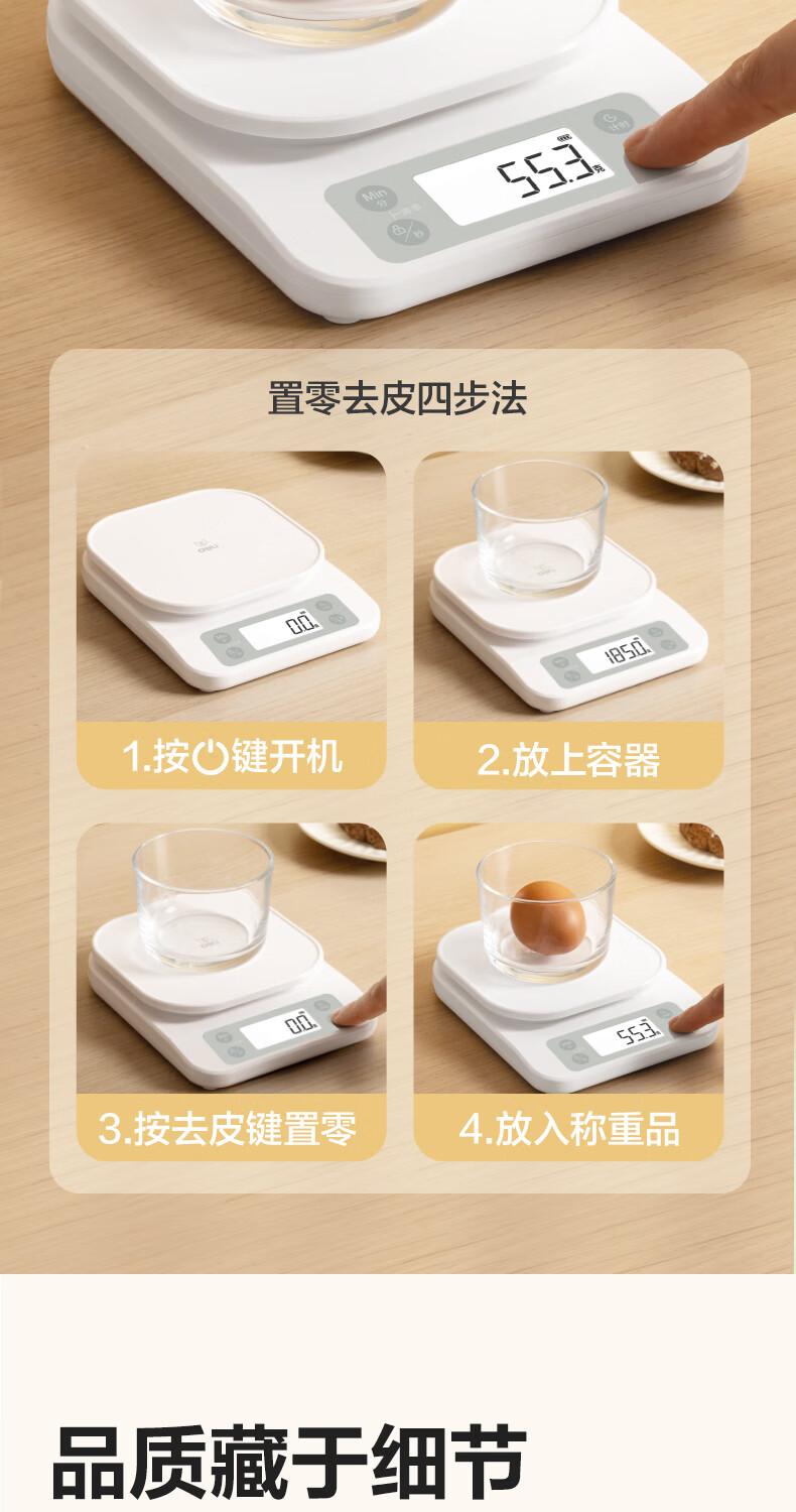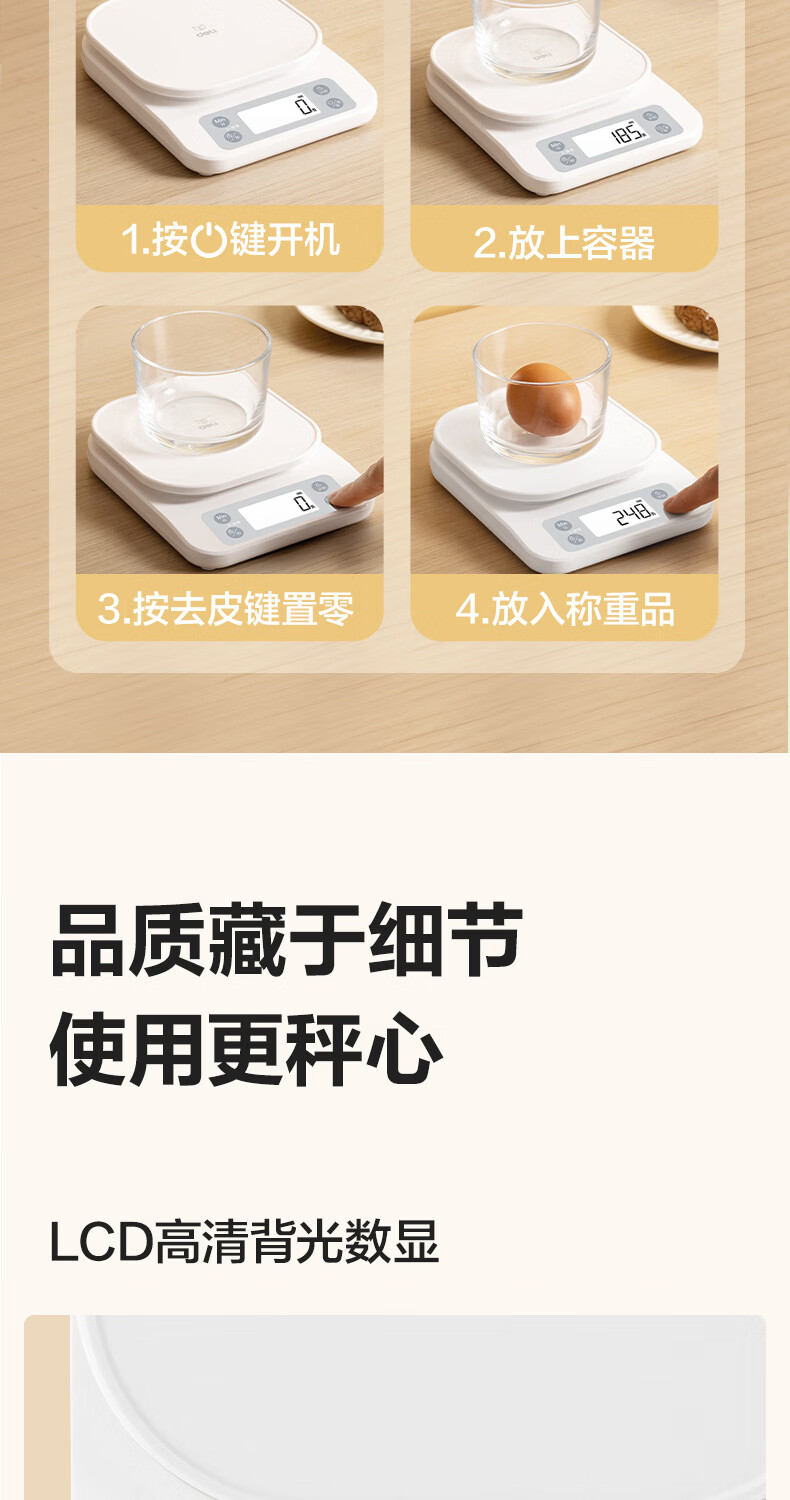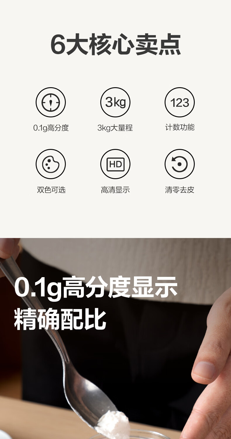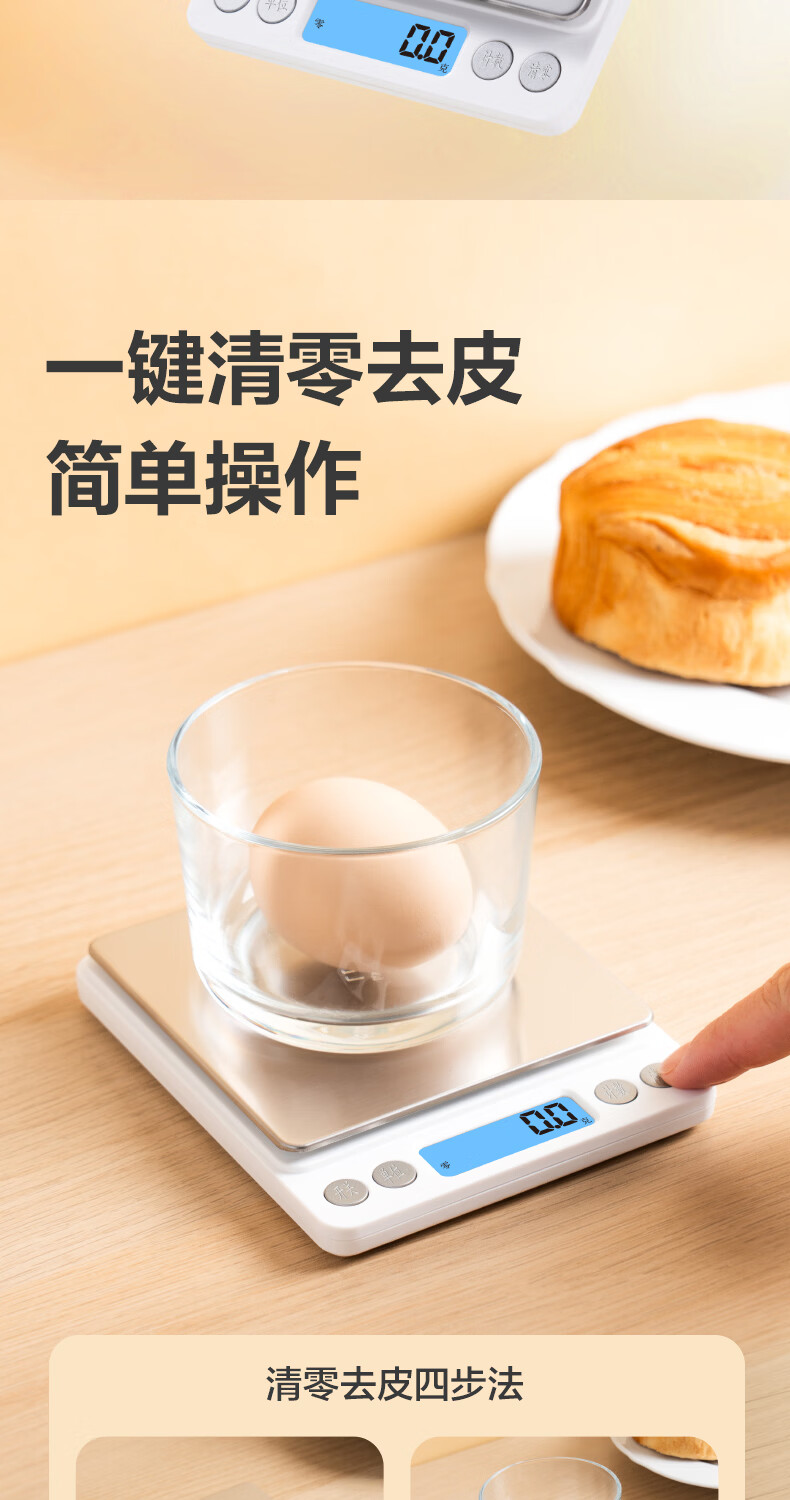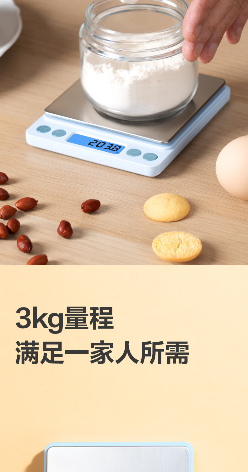 Deli high-precision electronic scale kitchen scale baking scale household scale precision weighing tool food scale new model high-precision white 3kg 0.1g metal scale surface