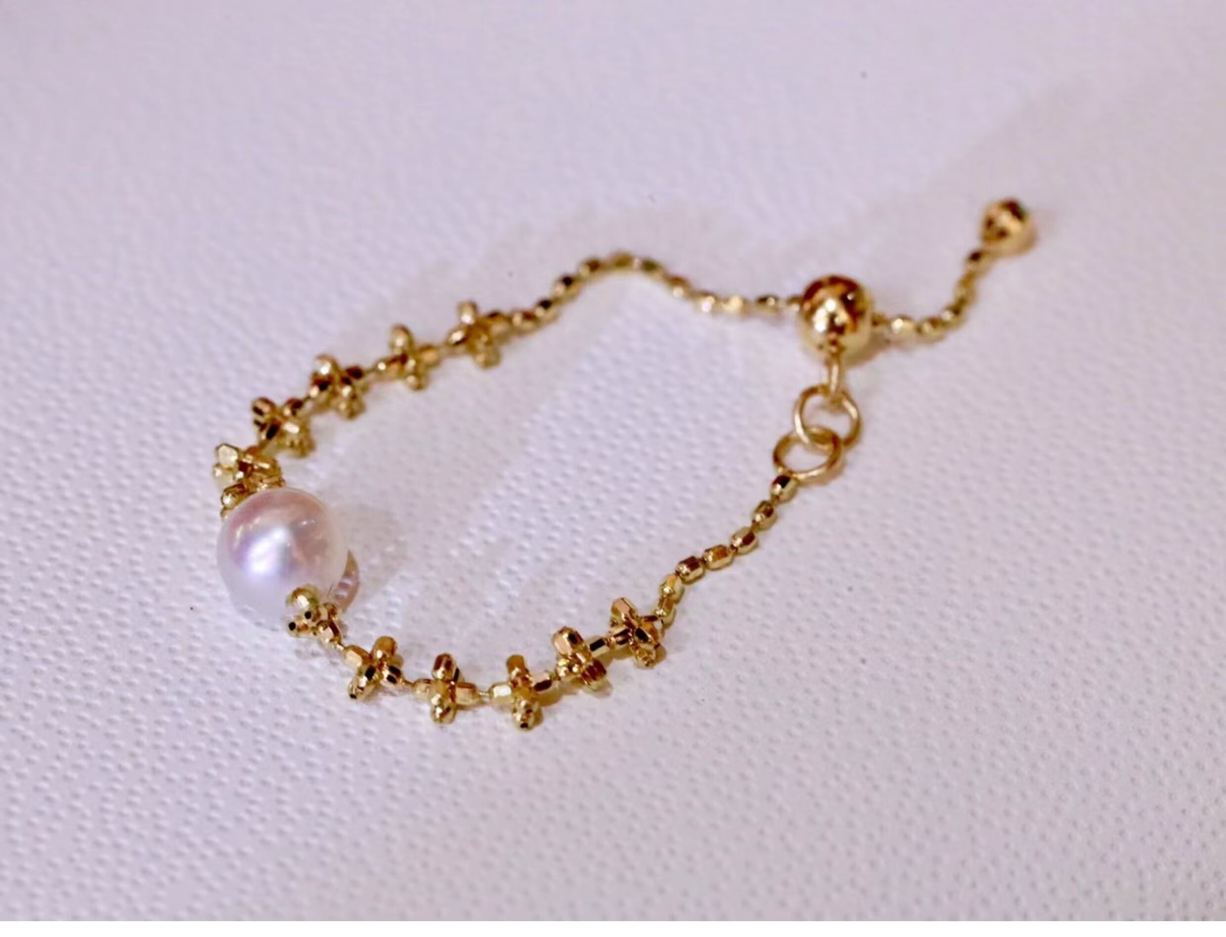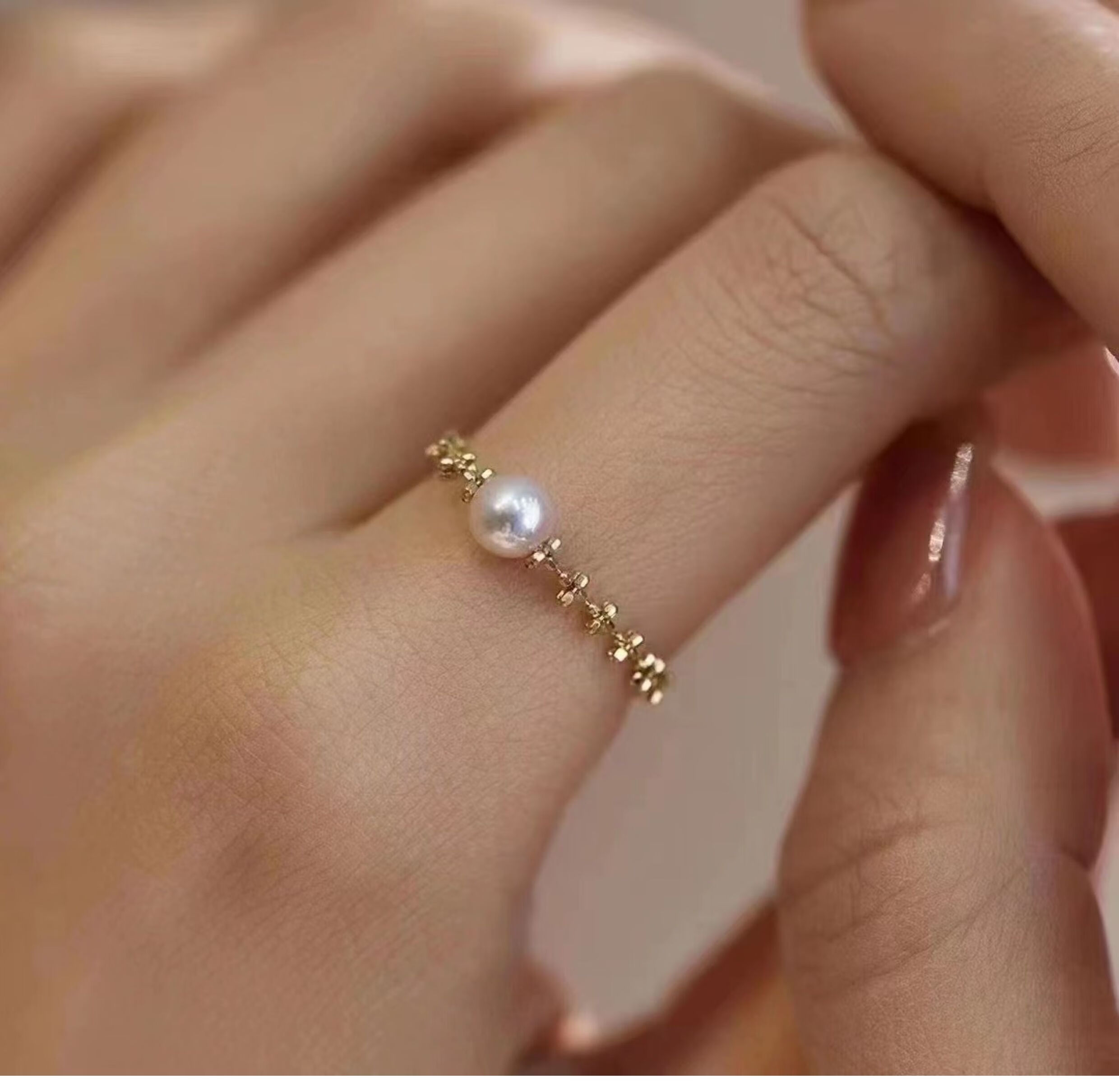 ZHIO Japanese seawater akoya 18k gold lace pearl ring is perfectly round and can be pulled and adjusted to adjust the ring circumference. 18k gold lace ring imported from Japan 4-5mm